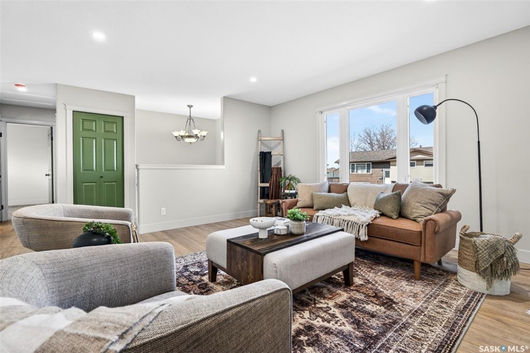 BEAUTIFULLY RENOVATED and TURNKEY. Exceptional 4-BEDROOM, 2-BATHROOM BILEVEL offers stylish updates, modern comfort, and an unbeatable family-friendly location, just MOMENTS from the BRAND NEW Joint-Use Elementary School. Stunning CURB APPEAL with brand new LP SMART SIDING wrapping around the entire exterior, with striking front metal accents (Gentek Moderno vertical siding). Property offers a large concrete DRIVEWAY with plenty of space on the west side to construct a double detached garage. Make sure to explore the FULLY-FENCED backyard – an ENORMOUS CORNER LOT – that will surprise you with the amount of space it offers. Exterior also features new metal GATES, new raised DECK, new SHINGLES, stylish new black SOFFIT/FASCIA, and new EXTERIOR DOORS! And the updates don't stop there! Enter into the front entrance to discover a FULLY RENOVATED INTERIOR – A GORGEOUS PROPERTY to WALK THROUGH! New FLOORS, upgraded KITCHEN, renovated BATHROOMS, textured CEILINGS, and every little detail in between! Fully upgraded electrical throughout, including new 100amp service and panel. Brand new High-Eff FURNACE. New CENTRAL AIR CONDITIONING. Modern VINYL WINDOWS. New BLOW-IN INSULATION. All plumbing up to code, with new WATER LINES throughout home. The home has a fantastic layout – 2 bedrooms UP and 2 bedrooms DOWN – and all bedrooms are a GREAT SIZE! Spacious family room with luxury vinyl plank flooring flowing through the main floor. Formal dining space. Absolutely GORGEOUS main floor bath, with bonus LAUNDRY CHUTE tucked behind the bathroom door! The lower level is filled with large, bright windows, offering a roomy family/recreation space, ANOTHER fully-renovated bathroom, and a massive laundry/storage/utility room, complete with BONUS laundry sink/work station! INCREDIBLE VALUE in a fully complete package. *SELLER WILLING TO INCLUDE APPLIANCE PACKAGE, INCLUDING FRIDGE, STOVE, WASHER, & DRYER. To be negotiated at time of offer.*