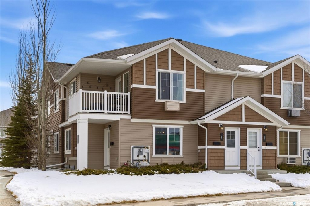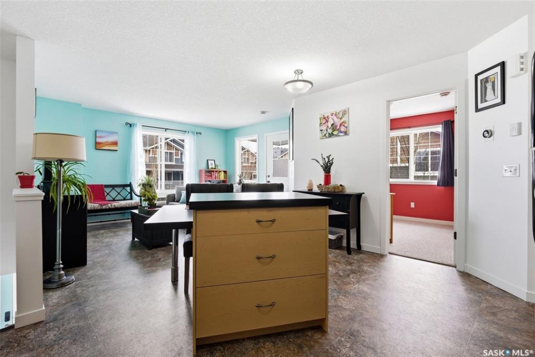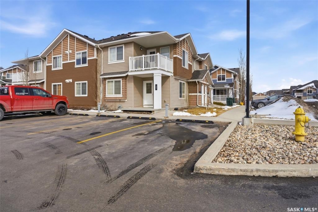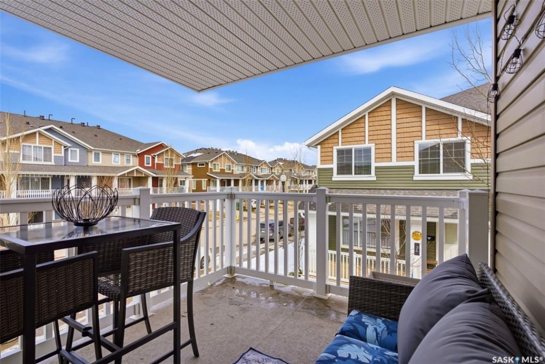 Located in desirable Harbour Landing, this 2nd floor garden-style condo is packed with extras that take it from move-in to live-in ready. Ample street parking is available right outside the front door, along with two exclusive use parking stalls (one is titled). The condo's charming and functional design starts in the entry way with hand-crafted custom wood shelving, bench and a pull-out boot drawer. Up the stairs is a cook's dream kitchen with classic black fridge, dishwasher and stainless steel Samsung range with a hood fan. With lots of cupboard space, drawers big enough to fit all your appliances, built-in electrified island/table combo, and upleveled with a new backsplash and matte black faucet (2021), it's sure to meet all your entertaining needs. The bright, open living room gets plenty of natural light with large north and east-facing windows, and includes a large storage room, as well as the door to the covered balcony. The 2nd bedroom offers the ultimate flex space, with custom-built wooden murphy bed/bookcase combo, ample closet space and a huge window that gives a tree-house feel thanks to the trembling aspens right outside. This room currently does quadruple duty as an office, guest bedroom, library, and exercise room! The primary bedroom is a bright, restful oasis that includes a double closet. Right outside in the hallway is a spacious linen closet with ample storage. The bathroom features a deep soaker tub, new sink (2022) and an adjacent utility/laundry room with stackable washer/dryer, HRV system and tankless on-demand water heater that feeds the in-floor heat throughout the unit. Located within walking distance of École Harbour Landing Elementary School & St. Kateri Tekakwitha School, the shops and amenities on Gordon Road, this charming condo is ready for a new homeowner just starting out, or someone looking to downsize in a space that is practical and cozy. Please note there is a separate tax amount for the titled parking stall of $71.70/year.