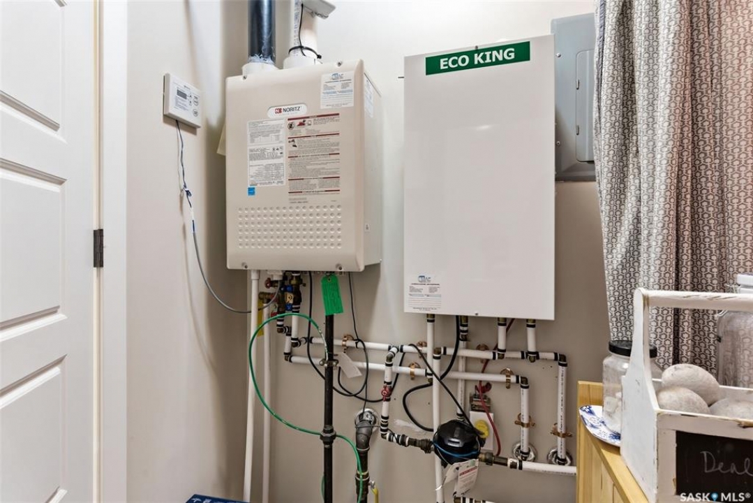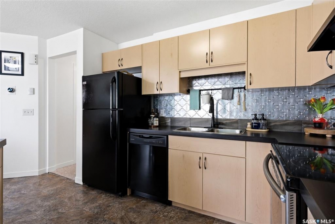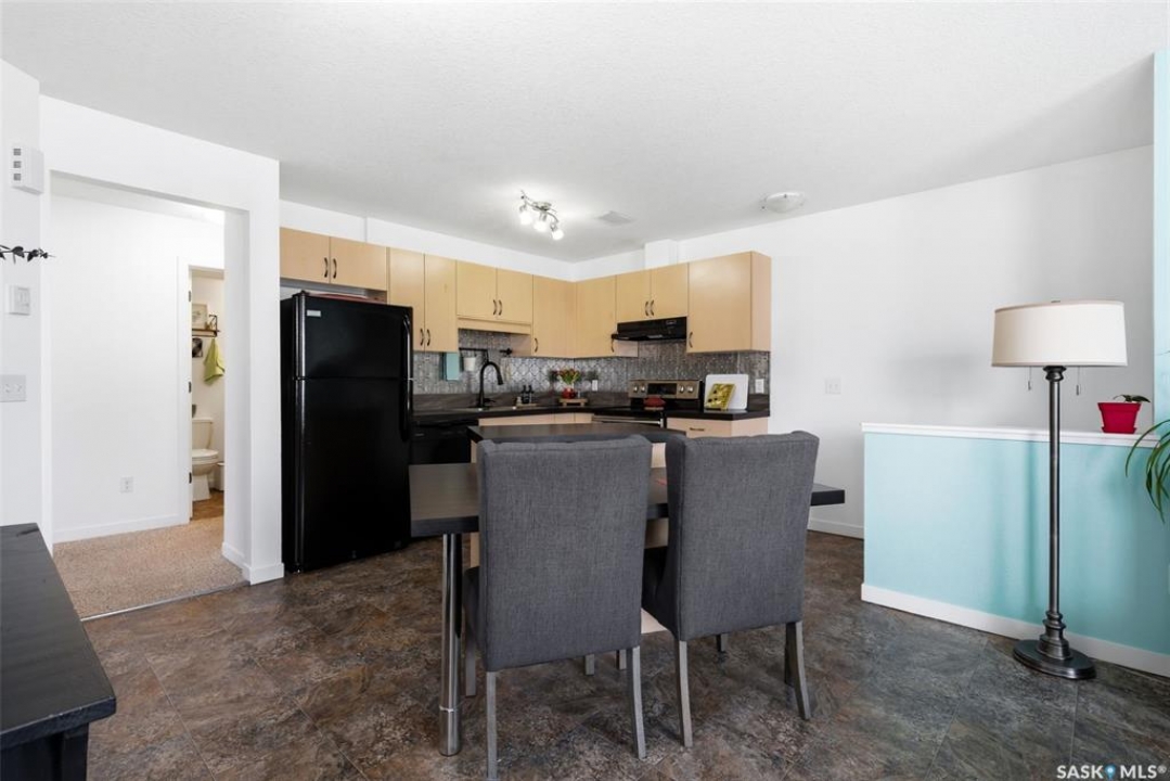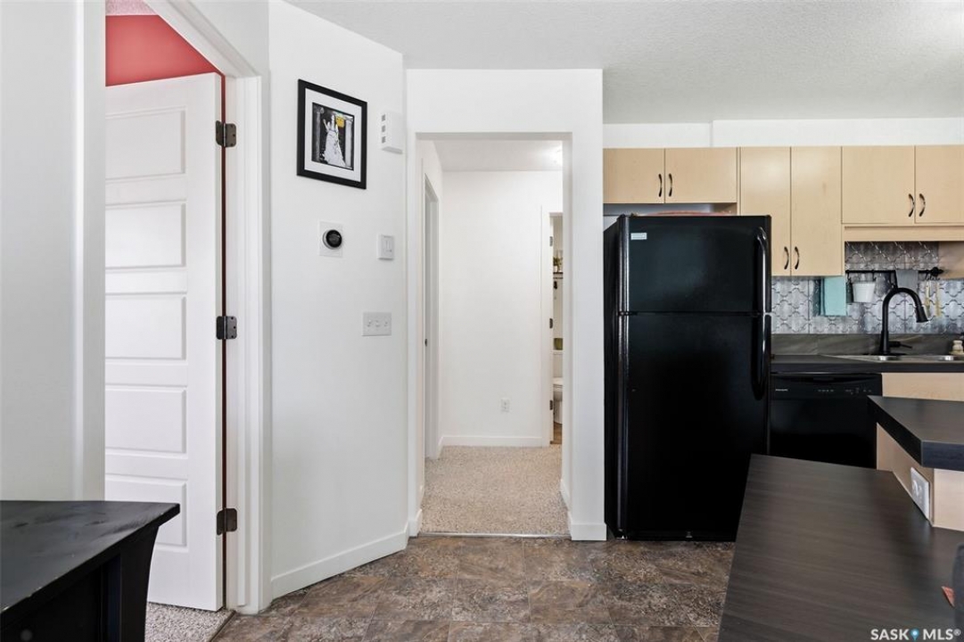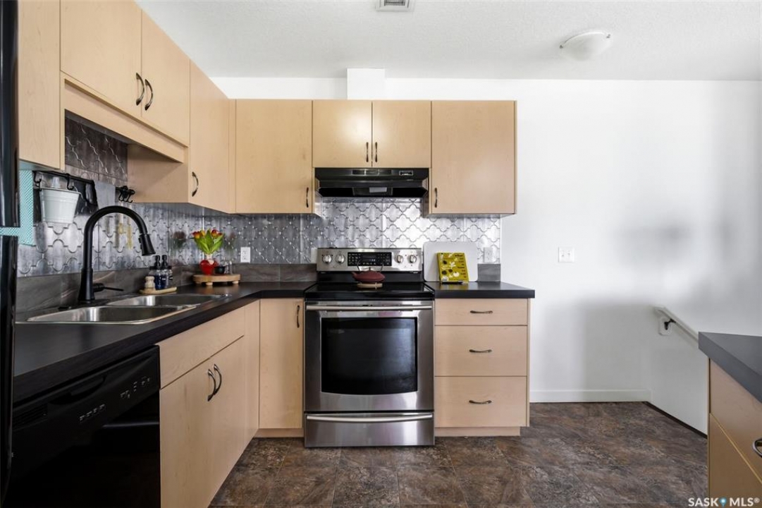 Located in desirable Harbour Landing, this 2nd floor garden-style condo is packed with extras that take it from move-in to live-in ready. Ample street parking is available right outside the front door, along with two exclusive use parking stalls (one is titled). The condo's charming and functional design starts in the entry way with hand-crafted custom wood shelving, bench and a pull-out boot drawer. Up the stairs is a cook's dream kitchen with classic black fridge, dishwasher and stainless steel Samsung range with a hood fan. With lots of cupboard space, drawers big enough to fit all your appliances, built-in electrified island/table combo, and upleveled with a new backsplash and matte black faucet (2021), it's sure to meet all your entertaining needs. The bright, open living room gets plenty of natural light with large north and east-facing windows, and includes a large storage room, as well as the door to the covered balcony. The 2nd bedroom offers the ultimate flex space, with custom-built wooden murphy bed/bookcase combo, ample closet space and a huge window that gives a tree-house feel thanks to the trembling aspens right outside. This room currently does quadruple duty as an office, guest bedroom, library, and exercise room! The primary bedroom is a bright, restful oasis that includes a double closet. Right outside in the hallway is a spacious linen closet with ample storage. The bathroom features a deep soaker tub, new sink (2022) and an adjacent utility/laundry room with stackable washer/dryer, HRV system and tankless on-demand water heater that feeds the in-floor heat throughout the unit. Located within walking distance of École Harbour Landing Elementary School & St. Kateri Tekakwitha School, the shops and amenities on Gordon Road, this charming condo is ready for a new homeowner just starting out, or someone looking to downsize in a space that is practical and cozy. Please note there is a separate tax amount for the titled parking stall of $71.70/year.