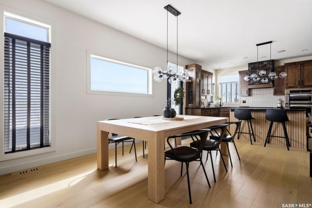 Welcome to 2722 Alfred Crescent in the sought-after Windsor Park neighborhood. This beautifully designed home blends warmth, functionality, and modern style. The open-concept main floor features 9-foot ceilings, abundant natural light, and updated wide-plank white oak flooring in soft, neutral tones. The family room is a standout with a floor-to-ceiling stone fireplace, accent lighting, and a built-in media wall with ample storage. The chef's kitchen impresses with rich wood cabinetry, stone accents, a modern tile backsplash, high-end stainless steel appliances, and a large island with seating. Patio doors lead to an expansive deck, perfect for entertaining, complete with a built-in BBQ kitchen, outdoor fireplace, and elegant lighting for evening gatherings.Upstairs offers a convenient laundry room and three spacious bedrooms, including a primary retreat with a walk-in closet and a five-piece ensuite with a soaker tub. A full family bath with dual sinks completes the level. The fully finished basement provides a cozy, upscale space ideal for relaxing or hosting, featuring a torch-style fireplace, sleek wet bar, two additional bedrooms, a three-piece bath, and a utility room. The double attached garage boasts durable, easy-to-clean epoxy-coated floors with a floor drain—perfect for Saskatchewan winters. This exceptional home is a must-see—schedule your showing today.