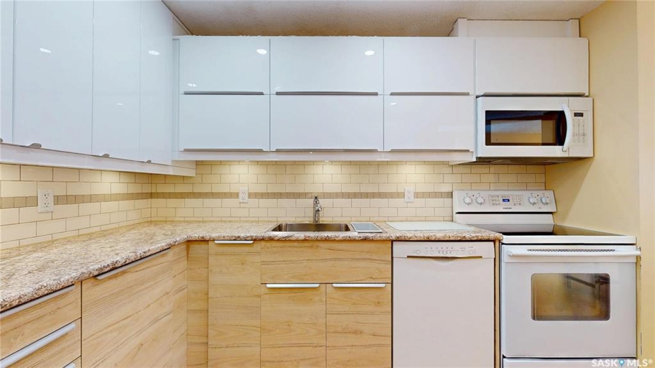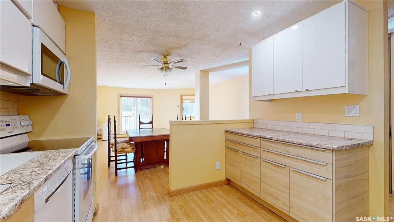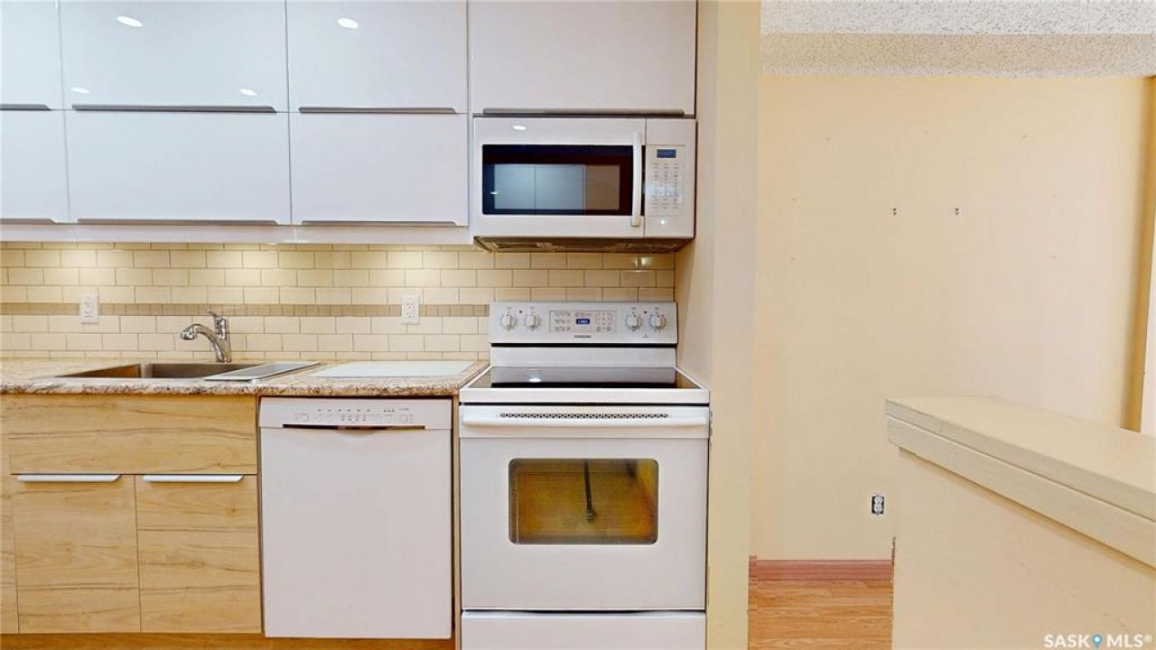 What a great find in Cathedral! This is a bright south facing large one bedroom one bathroom condo with an extra flexible space. The gorgeous updated IKEA kitchen is a - Wow - an eye catcher! Featuring attractive counter tops, under cabinet lighting, and amazing back splash; it is a winner as far as kitchens go. Open to the dining and living room, you immediately feel right at home. Off of the living room is a good sized balcony – a great place to relax and enjoy the world from. Also off the living room is nice bright office; which you can use how you wish – work, exercise, crafts, or whatever your lifestyle needs. This room opens into the primary bedroom which is also a great size. Then there is the nicely updated 4 pce bath. Finishing off the home, is the laundry and storage room. The extra storage is wonderful to have. Plus there is more storage in the parkade. The complex also includes an amenities room conveniently located just down the hall from this unit – ideal for gatherings and extra space. Also included is a parking stall right outside the home as well as visitor parking for guests. This is a sweet home in a great location – walkable to so many conveniences. Totally worth your while to take a look.