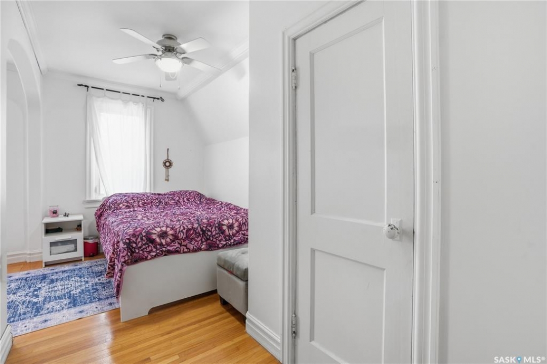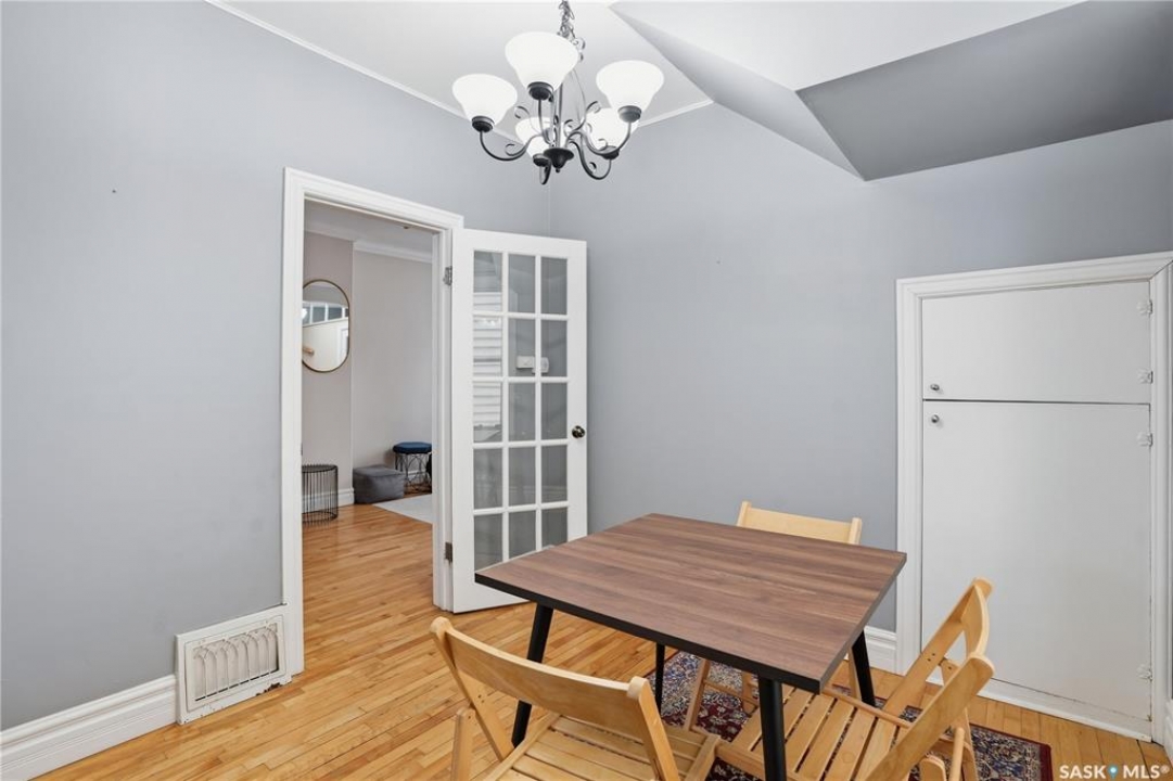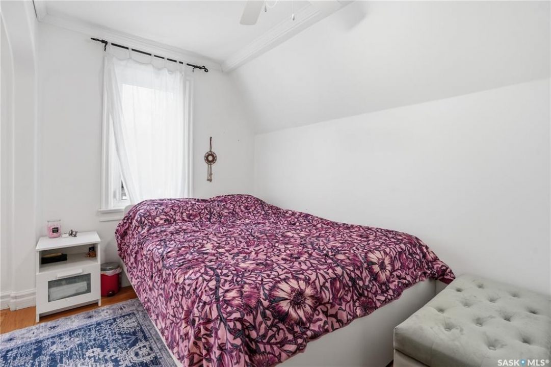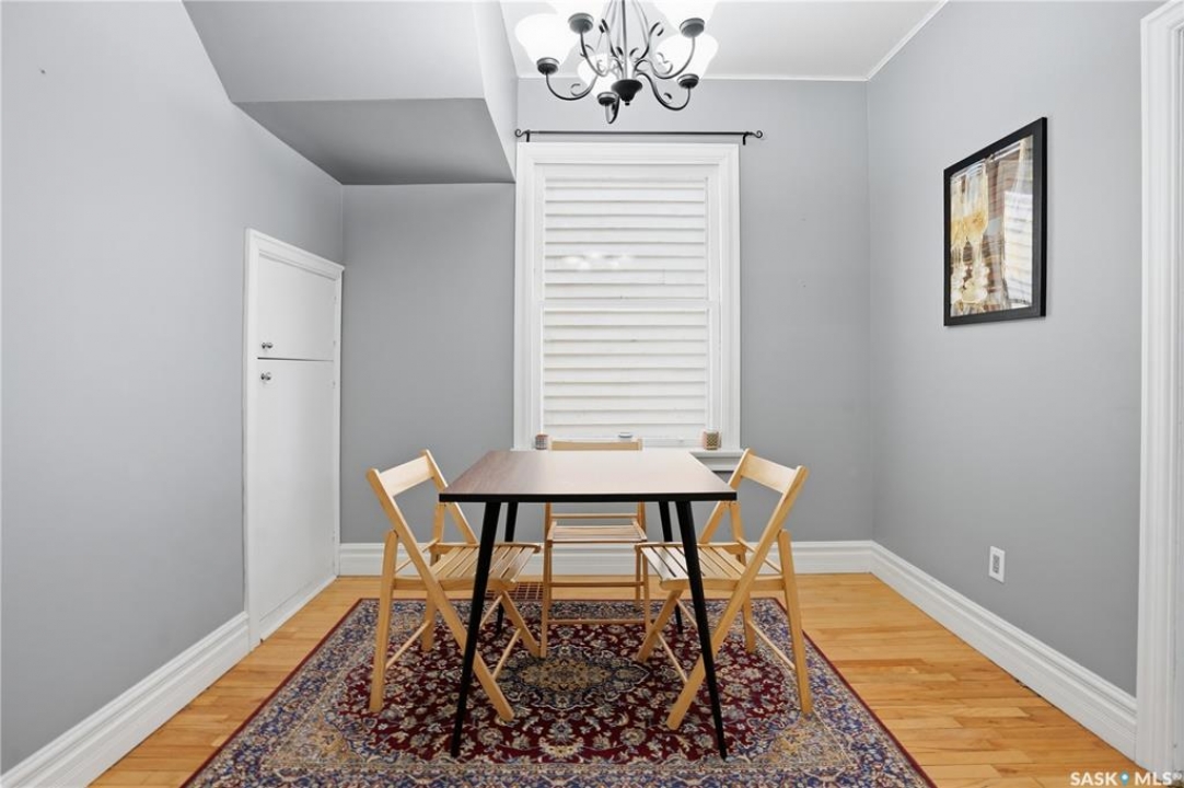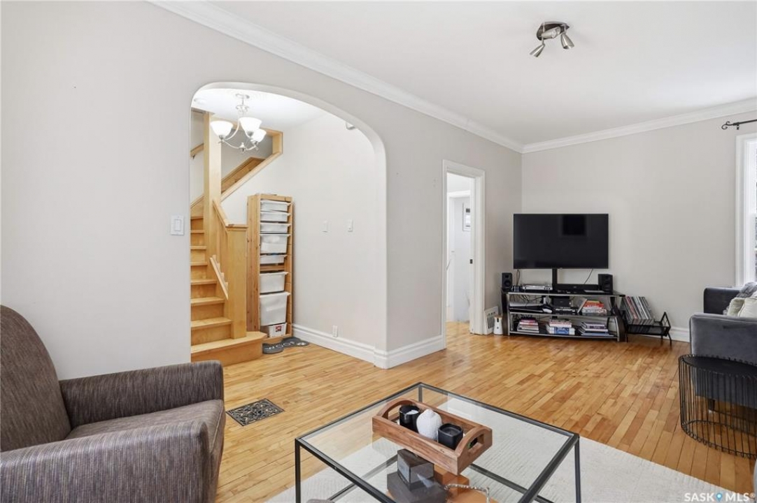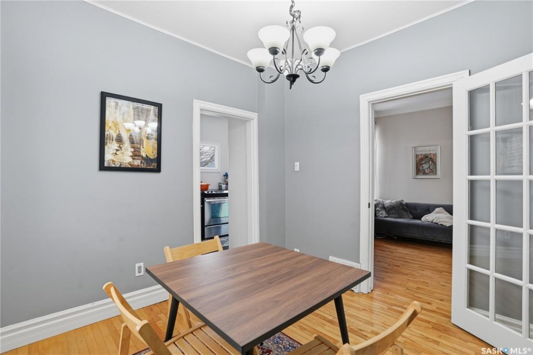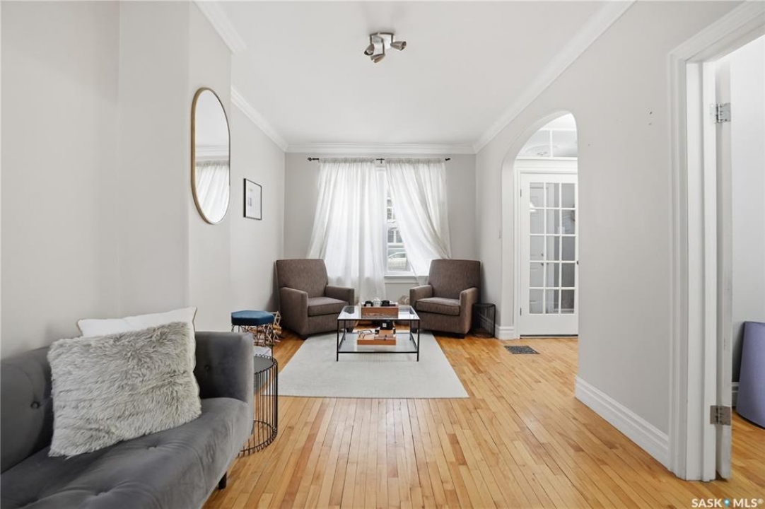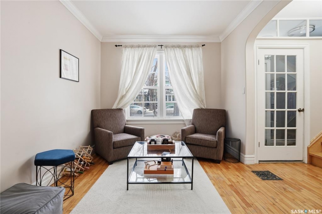 Welcome to this charming one-and-three-quarter storey home nestled in the heart of the Cathedral neighbourhood. Step inside to discover a bright and inviting main living space, where an abundance of windows fills the home with natural light, beautifully highlighting the hardwood flooring throughout. An arched entryway into the living room adds a touch of character, creating a warm and welcoming atmosphere. The separate dining area is perfectly suited for entertaining and flows seamlessly into the kitchen, which offers ample counter space and plenty of cabinetry complete with all appliances included. Upstairs, you'll find two comfortable bedrooms and a well-appointed 4-piece bathroom. The unfinished basement provides a blank canvas for future development, with laundry conveniently located with washer and dryer included. Outside, the property continues to impress with excellent curb appeal, a large front yard, and a spacious xeriscaped backyard designed for low-maintenance living. A double detached garage with convenient lane access adds to the home's functionality. The exterior was freshly painted in summer 2025, further enhancing its charm. Ideally located close to downtown Regina, nearby schools, Wascana Park, the Royal Saskatchewan Museum, and all central and south-end amenities. This home offers the perfect blend of convenience and character. Don't miss your opportunity to own in one of Regina's most vibrant and sought-after neighbourhoods!
