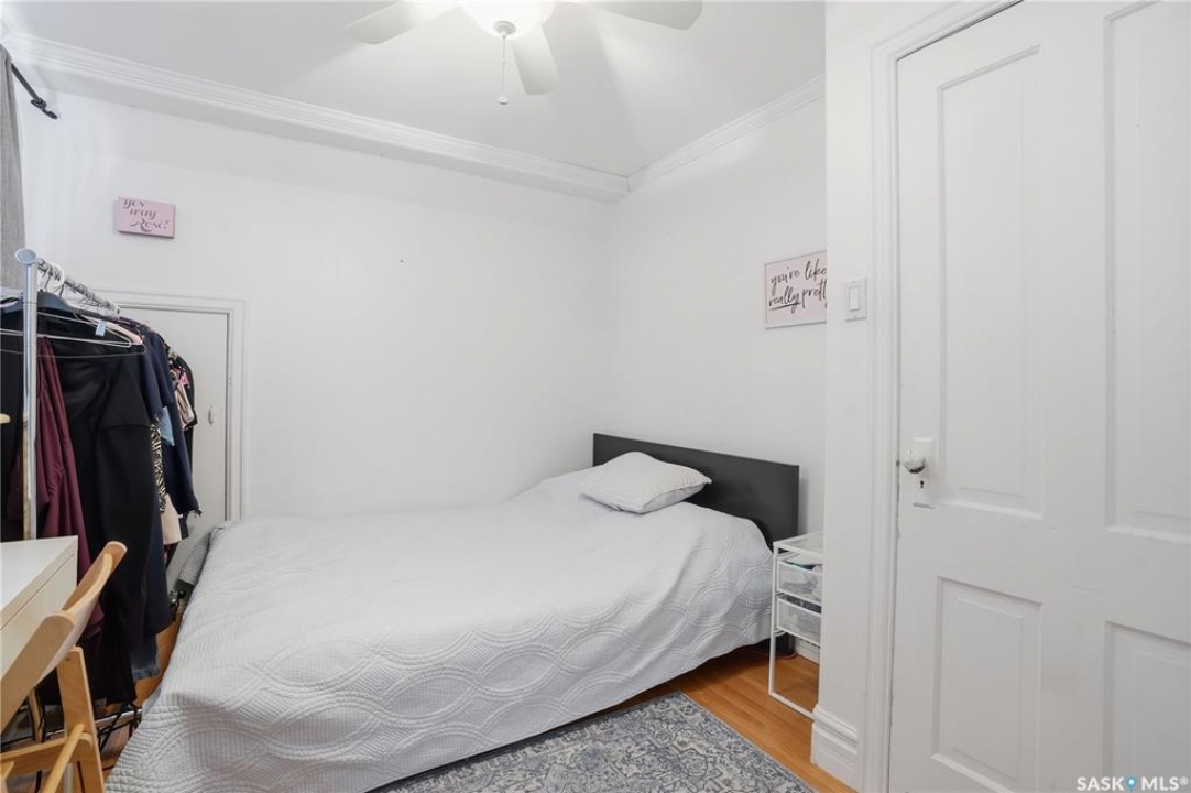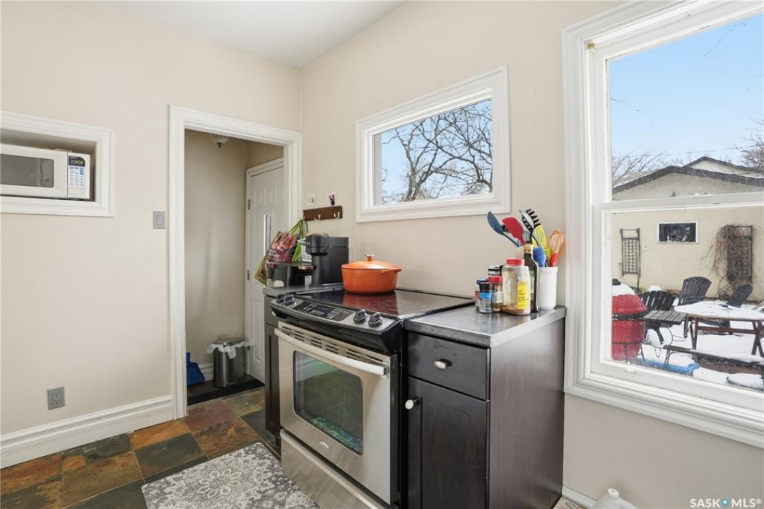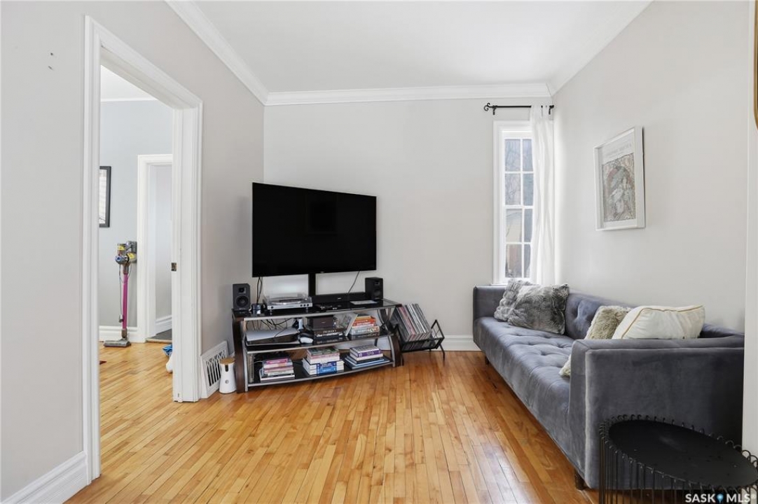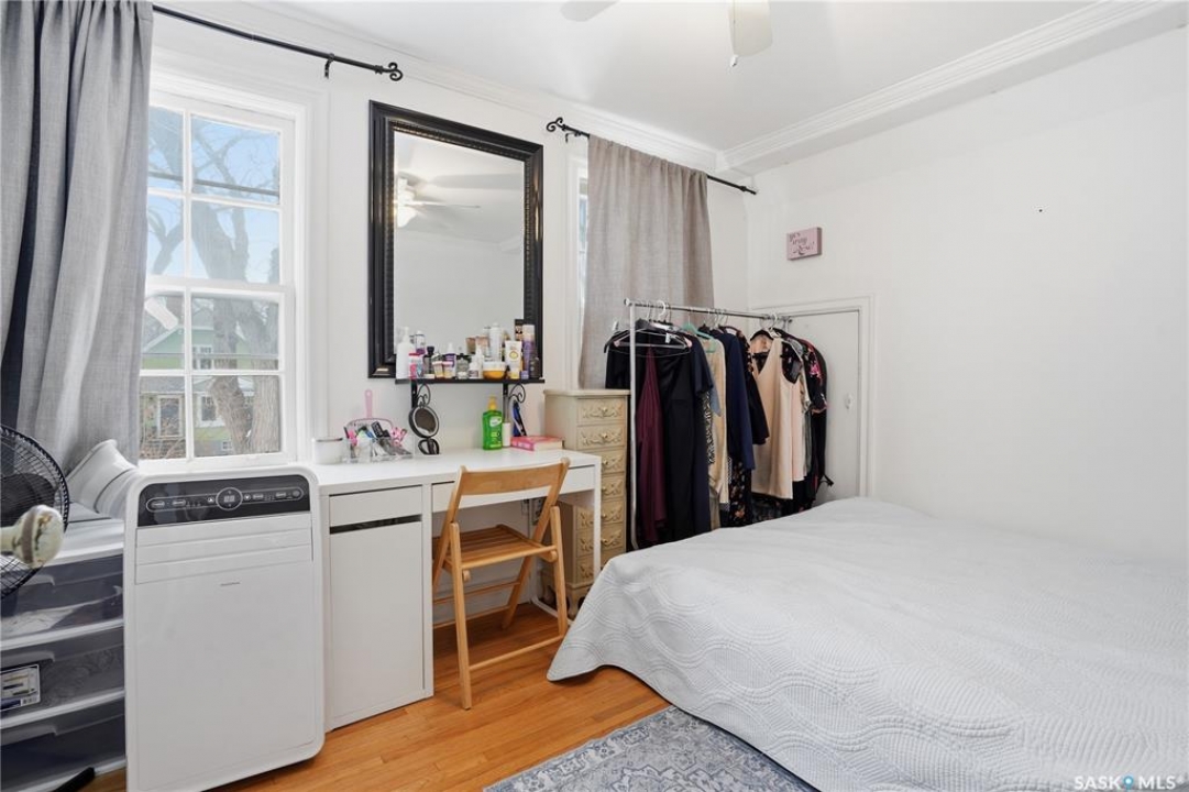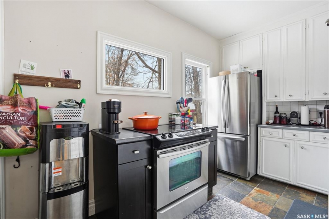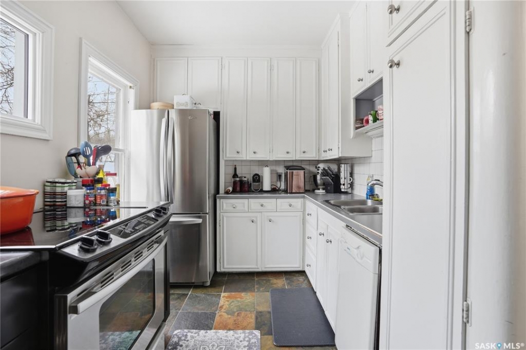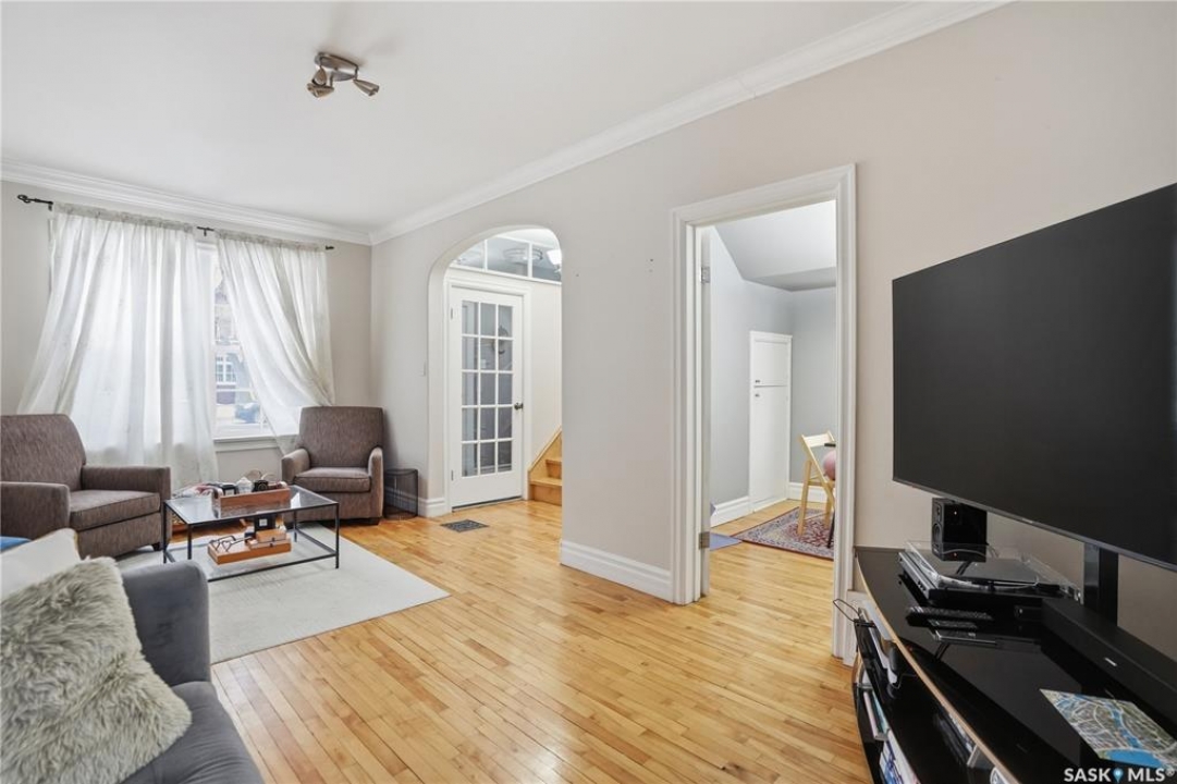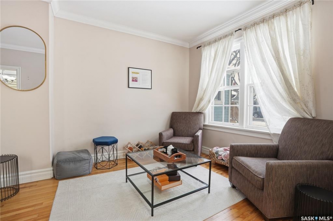 Welcome to this charming one-and-three-quarter storey home nestled in the heart of the Cathedral neighbourhood. Step inside to discover a bright and inviting main living space, where an abundance of windows fills the home with natural light, beautifully highlighting the hardwood flooring throughout. An arched entryway into the living room adds a touch of character, creating a warm and welcoming atmosphere. The separate dining area is perfectly suited for entertaining and flows seamlessly into the kitchen, which offers ample counter space and plenty of cabinetry complete with all appliances included. Upstairs, you'll find two comfortable bedrooms and a well-appointed 4-piece bathroom. The unfinished basement provides a blank canvas for future development, with laundry conveniently located with washer and dryer included. Outside, the property continues to impress with excellent curb appeal, a large front yard, and a spacious xeriscaped backyard designed for low-maintenance living. A double detached garage with convenient lane access adds to the home's functionality. The exterior was freshly painted in summer 2025, further enhancing its charm. Ideally located close to downtown Regina, nearby schools, Wascana Park, the Royal Saskatchewan Museum, and all central and south-end amenities. This home offers the perfect blend of convenience and character. Don't miss your opportunity to own in one of Regina's most vibrant and sought-after neighbourhoods!