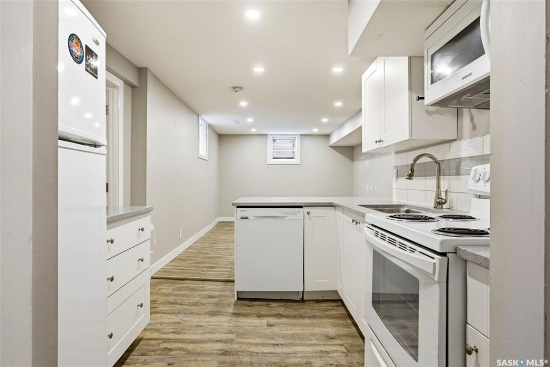Welcome to sought-after Lakeview—where style, flexibility, and income potential come together. This beautifully updated home offers a rare opportunity with two fully self-contained living spaces, each featuring its own furnace, electrical panel, and water meter—perfect for homeowners, investors, or multi-generational living. Step into the bright main floor, where modern finishes and pot lighting create a warm, inviting atmosphere. The updated kitchen impresses with sleek cabinetry, stainless steel appliances, and contemporary backsplash and countertops, flowing into a sunlit dining area. Two spacious bedrooms and a refreshed bathroom complete this level. Downstairs, a private side entrance leads to a stylish, open-concept suite designed for comfort and functionality. Featuring quartz countertops, white cabinetry, vinyl plank flooring, and a beautifully finished bathroom with a soaker tub, this space is ideal for tenants or extended family. Outside, enjoy a low-maintenance front yard and a fully fenced backyard with a gas BBQ hookup, storage shed, and parking. Whether you're looking to live in one unit and rent the other or expand your investment portfolio, this Lakeview gem delivers exceptional value and flexibility.