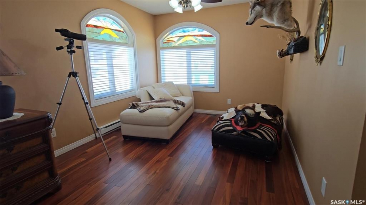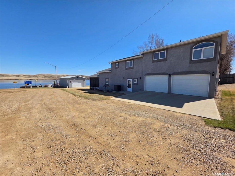 Nestled on the serene shores of pristine Reid Lake, just northwest of Simmie, SK, this stunning year-round waterfront home at 47 Ferguson Bay Resort offers comfort, style, and outdoor adventure. Boasting breathtaking views and direct lake access, this property is a dream for nature lovers and boaters alike. The beautifully updated kitchen features sleek granite countertops, an island with seating, and ample cabinetry for storage. Adjacent, the dining area provides a scenic spot to enjoy meals with a view. The expansive living room is a true showstopper, featuring a cozy wood-burning stove that creates the perfect ambiance for chilly evenings. Large windows let in an abundance of natural light while offering stunning lakefront views. A convenient 2-piece bathroom completes the main floor layout. Upstairs, the two spacious bedrooms offer plenty of comfort and privacy. The impressive main bedroom includes a separate seating area, tiger hardwood floors, a walk-in closet, and a stunning 4-piece ensuite that was once featured in a magazine. The second bedroom is bright and spacious, ideal for guests or family. A combination laundry/3-piece bathroom on this level adds extra convenience with same-floor laundry facilities. Aside from the attached 24x26 heated garage, the 18x48 boat house provides ample storage, keeping watercraft and gear secure and ready for adventure. A private dock extends into the water, offering easy access for boating, swimming, and fishing. The screened-in deck is perfect for relaxing, providing a bug-free, wind-protected retreat to soak in the sights and sounds of lake life. Designed for year-round enjoyment, this home includes all-season utilities, efficient heating for winter comfort, and central air conditioning for hot summer days. With an unbeatable waterfront location, a thoughtfully designed interior, and exceptional outdoor features, this home is the ultimate lakeside escape. Don't miss your chance to own this incredible piece of paradise!