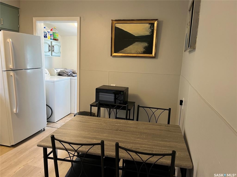 Put this storey and a half on your viewing list, situated right across the street from the school it has a lot of appeal. The home has had new flooring added to the main floor, fresh paint throughout the house, new baseboards, shingles that are not that old and a nice sized garage add to the property value. Gravelbourg has all services like a Hospital, schools, grocery store, restaurants, retail stores, gas station, pharmacy, curling and skating rink and much more. Hurry to book your private viewing today!!