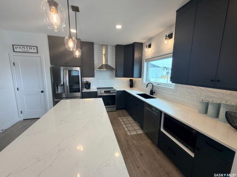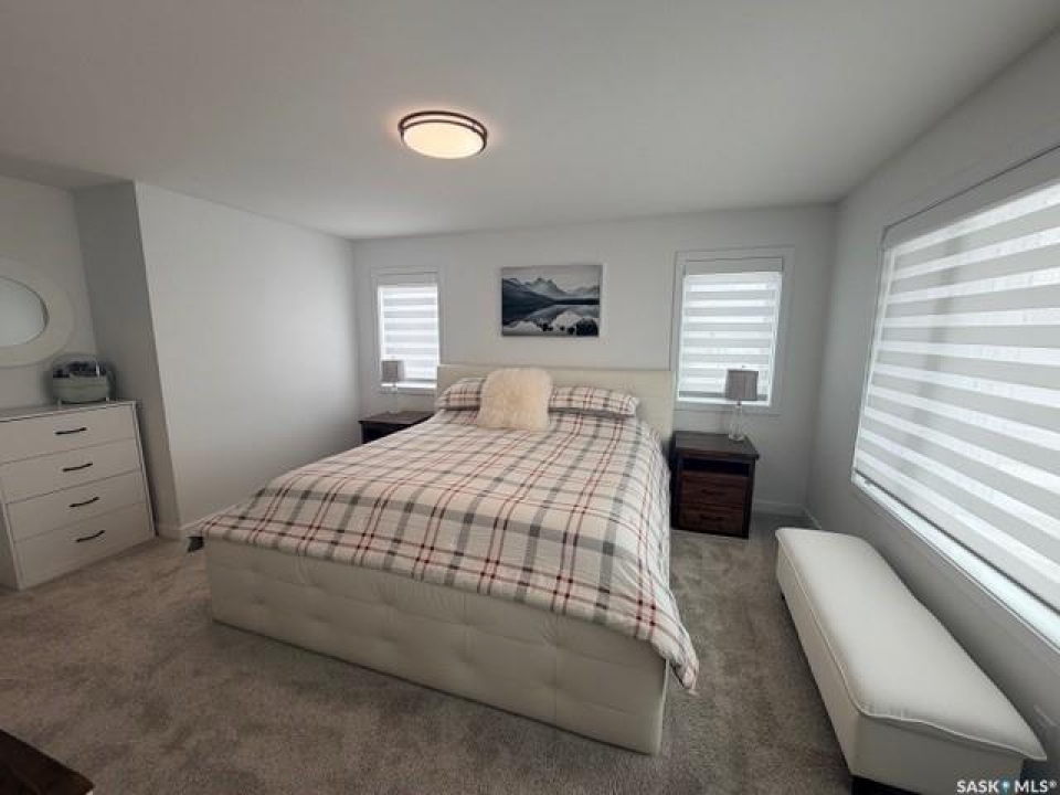 Great views of Brighton's core park & future school grounds from this beautiful fully developed open concept 2 story! The Great room features arched beverage bar w bev fridge, custom brick wall w floating wood shelves & black shiplap electric fireplace w wood mantel. The kitchen has large picture window overlooking Brighton Park & adjacent to walking park. Upgraded cabinetry to 9' ceiling w quartz countertops, spacious island & adjacent DR. Main floor has added walk-in pantry plus mudroom storage w black shiplap feature wall. Main � bath w pedestal sink & white shiplap. Wide staircase to upper floor - enter your bonus room w vaulted ceiling, custom wood beam, shiplap feature wall & 5 built in surround sound speakers. Master ensuite w dual-sink vanity, curved tub, large shower, private toilet room & walk-through closet. 2 more bedrooms boast large walk-in closets. The upper floor complete w 2nd 4-piece bath plus Laundry Room. Fully developed basement w 4th bed, 4th bath, multiple storage spaces & 3rd family room w built in speakers & exercise area. Front, Back & Side Landscaping featuring a large custom stamped concrete patio, Fully Fenced w/ upgraded ornamental fencing & white vinyl fencing, skirted deck w privacy screen, gas bbq line, ug sprinklers front & back, added cement walkway alongside of property. Gemstone Programmable Lighting around complete exterior! Video Doorbell, Smart Thermostat, Heated Garage, AC, Upgraded Interior Doors, Custom Blinds, NOTHING WAS MISSED! Everything is done & move in ready!