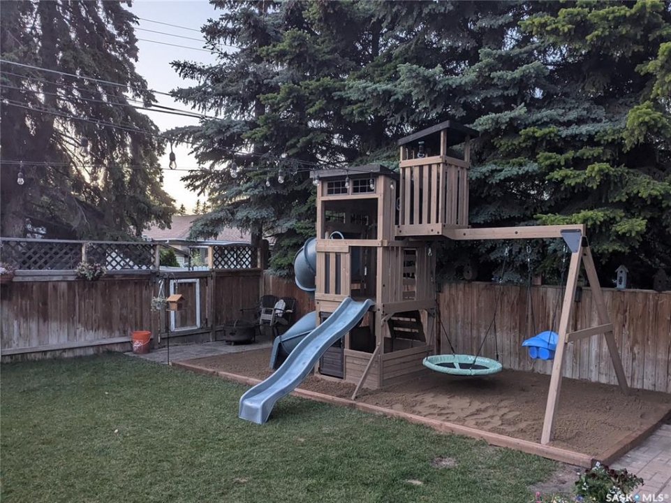 Situated on a quiet crescent in the highly desirable Avalon neighbourhood, this extensively upgraded 1010sqft. bungalow offers an ideal blend of comfort, style, and functionality with true move-in-ready appeal. The main floor welcomes you with a bright and inviting atmosphere, featuring three well-sized bedrooms, a beautifully renovated full bathroom, and a modern kitchen complete with stainless steel appliances, an eat-up bar, and plenty of workspace. The kitchen flows seamlessly into the dining area and sun-filled living room, creating a warm and functional space perfect for both everyday living and entertaining. The basement, thoughtfully developed in 2016 with both suite potential and family use in mind, expands your living space significantly. It includes a large second kitchen, a versatile dining or play area, a spacious family room, two additional bedrooms, and a stylish 3-piece bathroom with a tiled shower—ideal for guests, extended family, or future revenue opportunities. Extensive upgrades throughout the years provide peace of mind and modern appeal, including a furnace and water heater (2016), full kitchen renovation, lighting, and baseboards (2016), main floor bathroom renovation and updated flooring (2024), yard fence (2017), central air conditioning (2017), 100-amp electrical panel (2016), soffit, fascia, and eaves (2021), shingles (2022), composite siding (2024), updated windows throughout (2024), and fresh interior paint (2026). Outside, the landscaped yard is perfect for relaxing or entertaining, featuring a play center, patio space, and a long concrete driveway leading to the oversized 24' x 28' detached double garage. Ideally located close to schools, parks, shopping, groceries, and downtown, this home offers the perfect balance of convenience, space, and modern updates in a family-friendly setting.