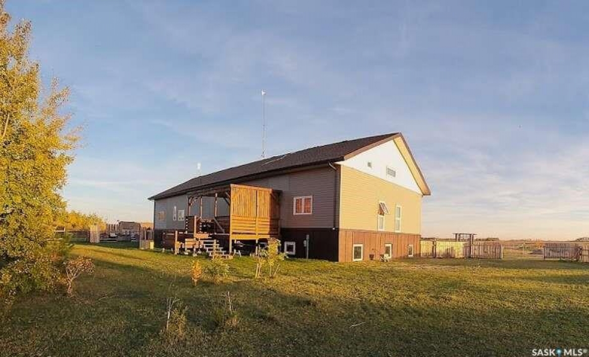 For more information, please click the "More Information" button. Spacious and unique Barndominium located 15 minutes west of Yorkton near Casino, situated on 20 acres. With over 7,000 sq. ft. of developed living space, this custom-built home is ideal for multigenerational families, home-based businesses, or those seeking space and serenity. The main floor offers 2,880 sq. ft. with cathedral ceilings in the 1,470 sq. ft. great room, a large kitchen with custom cabinetry and pantry, a breakfast bar, mudroom, laundry room, and two bedrooms including a 14' x 20' primary suite with a walk-through closet and 4-piece ensuite. A third bedroom/flex room functions well as an office or guest room, along with another full bathroom. Upstairs, the two large loft bedrooms each feature ensuite bathrooms and walk-in closets. The fully developed basement (2,880 sq. ft.) includes 9' ceilings, large windows, a full kitchen, 2–3 bedrooms, full bathroom, living room, workshop, and utility rooms—ideal for a separate living area or rental suite. Outdoors, enjoy a large deck, firepit, and views over a 3-acre private lake—perfect for skating in winter or kayaking in summer. Features include a horse shelter, toy barn, round pen, and outbuildings. Built with ICF foundation and 8” framed walls for efficiency. Includes a cistern and a new shallow well. Move-in ready country living at its best. Don't miss this rare opportunity to own a truly one-of-a-kind rural property that blends comfort, space, and natural beauty.