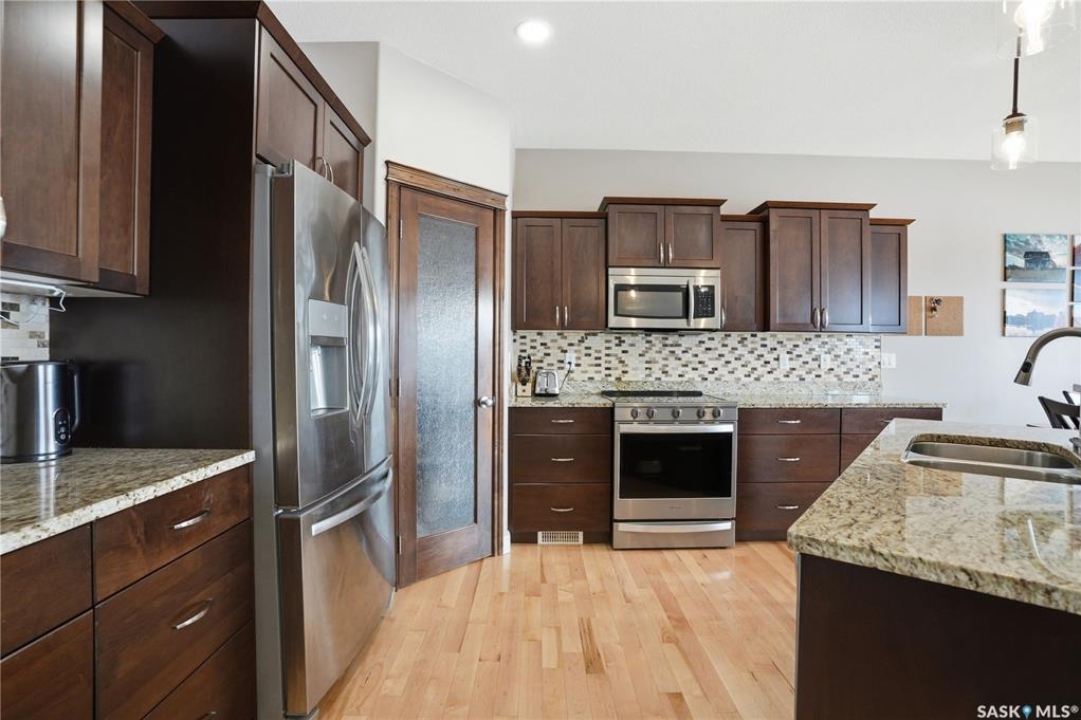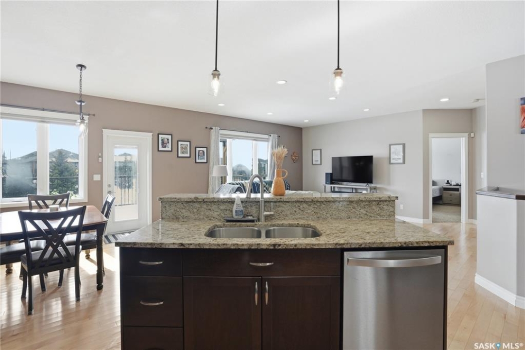Welcome to 234 Greenfield Crescent — a rare walkout bungalow backing beautiful green space in the heart of Hampton Village. Offering privacy, wide open lay out and great views. The main floor features a bright, open-concept design with large windows that frame the natural setting behind the home. The kitchen offers generous cabinetry, ample counter space, and a functional layout that flows seamlessly into the dining and living areas — ideal for both everyday living and hosting guests. The primary bedroom provides a comfortable retreat with ensuite access, while additional main floor bedroom space offers flexibility for family or a home office. The fully developed walkout basement is a standout feature, offering expansive additional living space filled with natural light and direct access to the backyard and green space. This level is perfect for entertaining, relaxing, or accommodating guests with additional bedroom and bathroom space. Enjoy peaceful views from the upper deck or step out from the lower patio into the open green space just beyond your yard — a rare and highly desirable feature in this neighbourhood. Located in the family-friendly community of Hampton Village, you are close to parks, schools, walking paths, shopping amenities, and convenient access to Circle Drive. This is a unique opportunity to own a walkout bungalow backing green space in one of Saskatoon's most popular west-side neighbourhoods.