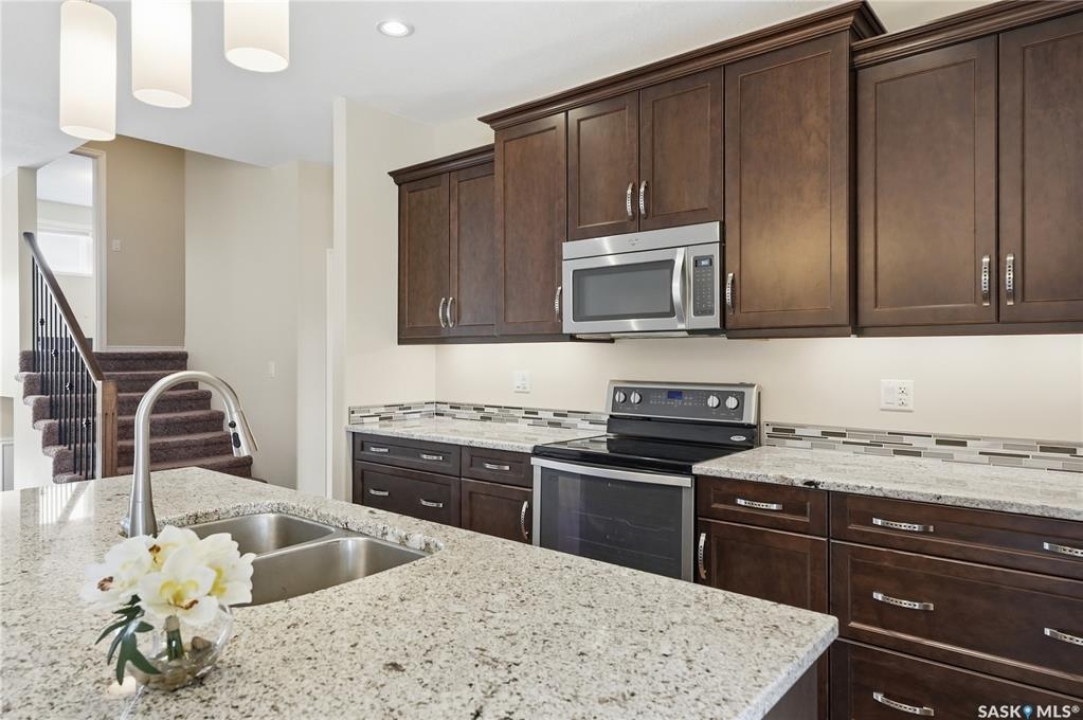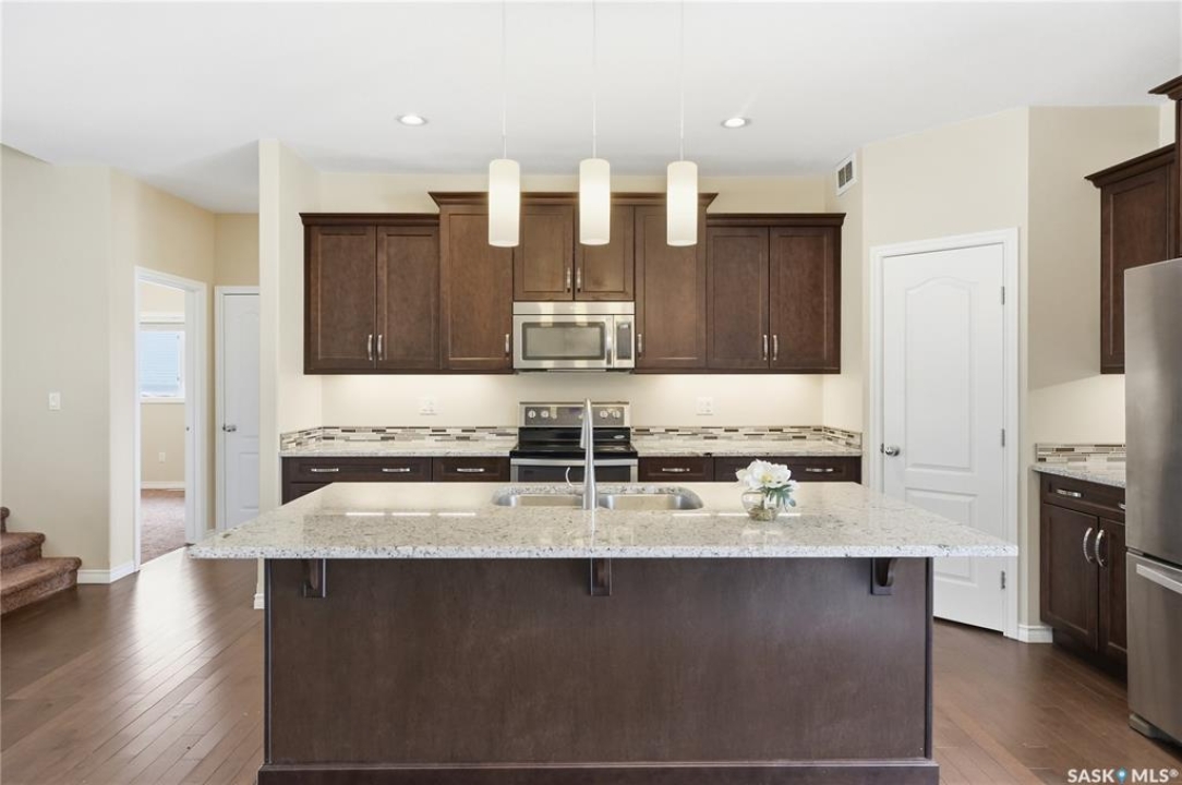 Motified Bi-Level – Perfect for Families. Soaring arched ceilings (LV/DI/KI finishes) – add elegance and a sense of openness / Chef-inspired kitchen – features a massive island with sink, plus premium KitchenCraft cabinetry / Luxury finishes – granite countertops and ceramic tile in both bathrooms and on the spacious deck. Levolor blinds included / Master retreat – huge walk-in closet just outside the bedroom, plus a spa-like 4-piece ensuite with a separate soaking tub / Fully finished basement – 2 bedrooms, 1 living room, and 1 bathroom – move-in ready for guests, rental, or extended family / Garage with electric heating rough-in – stay comfortable year-round........Everything is ready for you to just unpack and enjoy!