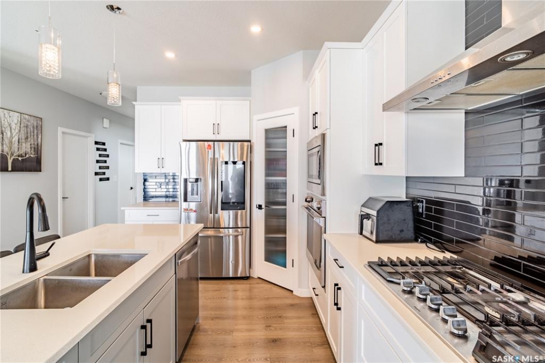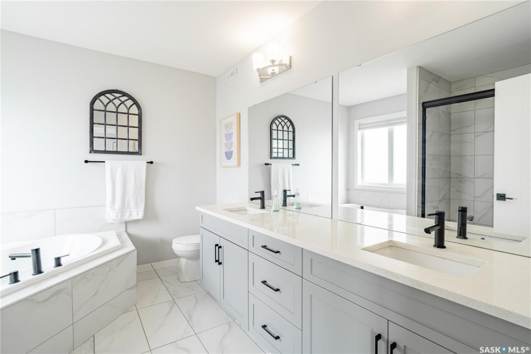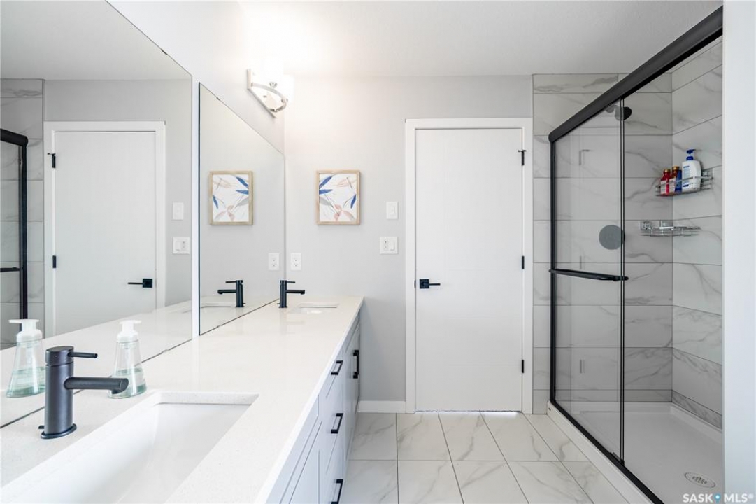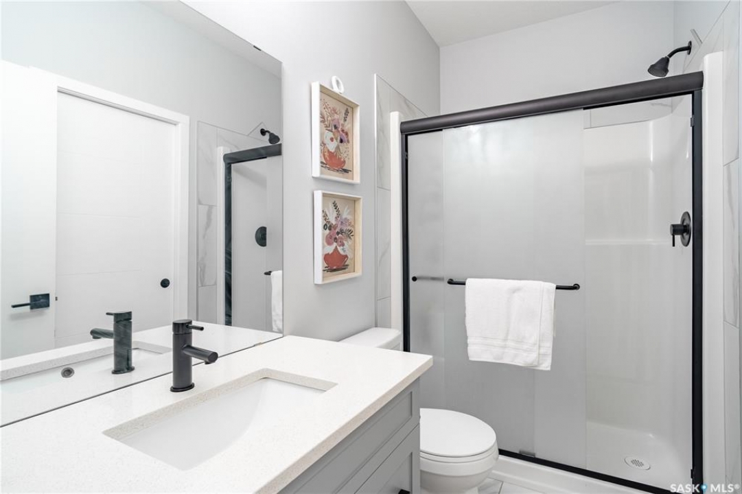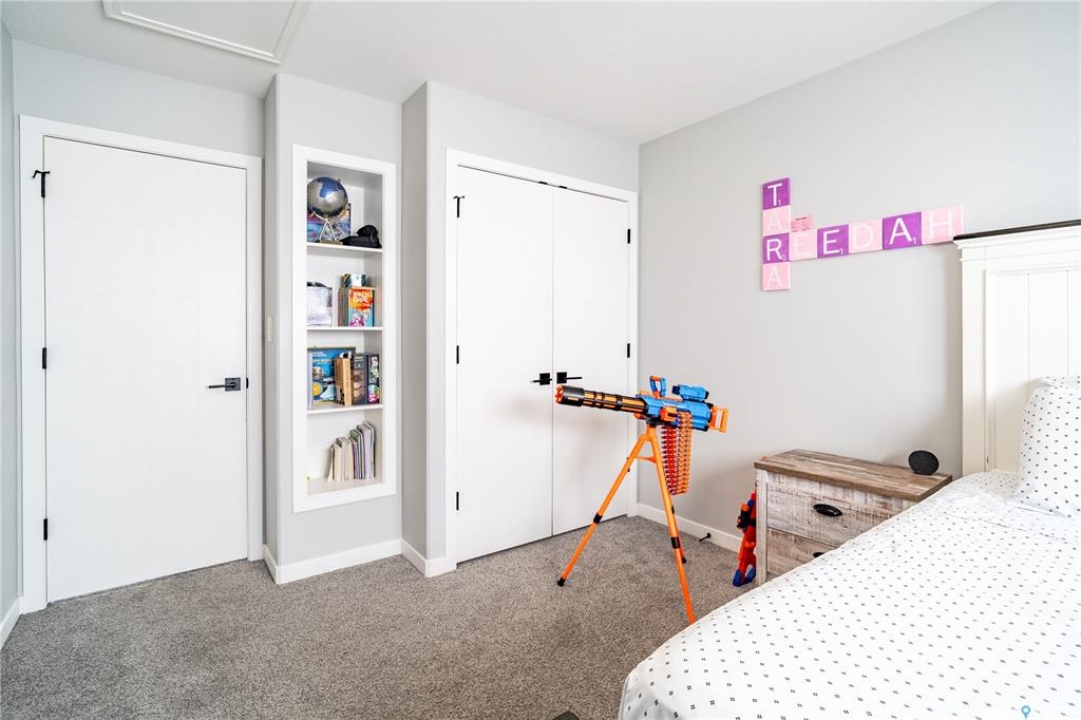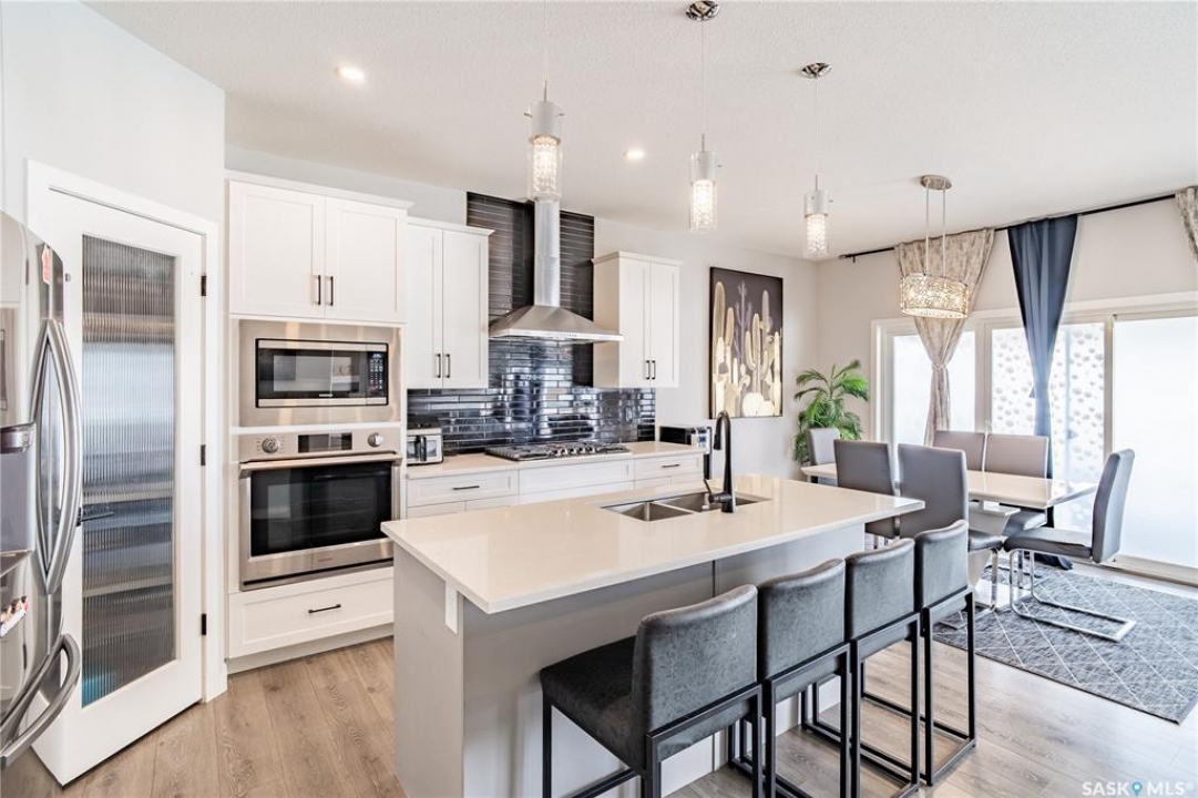 Welcome to this custom Daytona-built 2,240 SqFt home in sought-after Eastbrook, designed for comfort, space, and income potential. A standout feature is the rare main floor bedroom with a full ensuite, which is perfect for guests, extended family, or multigenerational living. The open-concept main level offers a warm, inviting layout with a modern kitchen and cozy living space. Upstairs, you'll find a truly oversized primary bedroom; an exceptional retreat with a spacious ensuite and walk-in closet, along with two additional bedrooms and a versatile bonus room. The fully finished basement adds excellent investment value, featuring two separate non-regulation suites, each with private entry and strong rental potential. Currently renting for approximately $1,100/month each, they also offer flexibility for short-term rentals such as Airbnb. Enjoy the landscaped yard complete with a deck, gazebo, and shed, all just minutes from parks and amenities, including Costco. A rare combination of space, flexibility, and income potential. Don't miss your chance to own this exceptional, move-in ready home in Regina. Book your showing today!