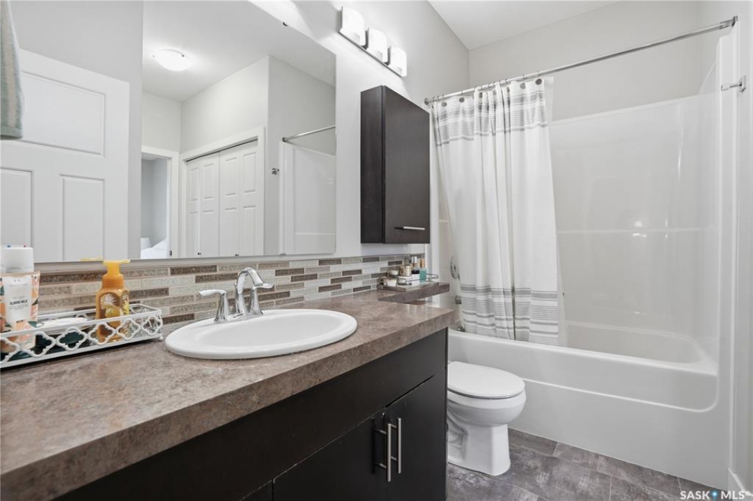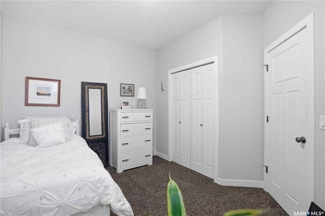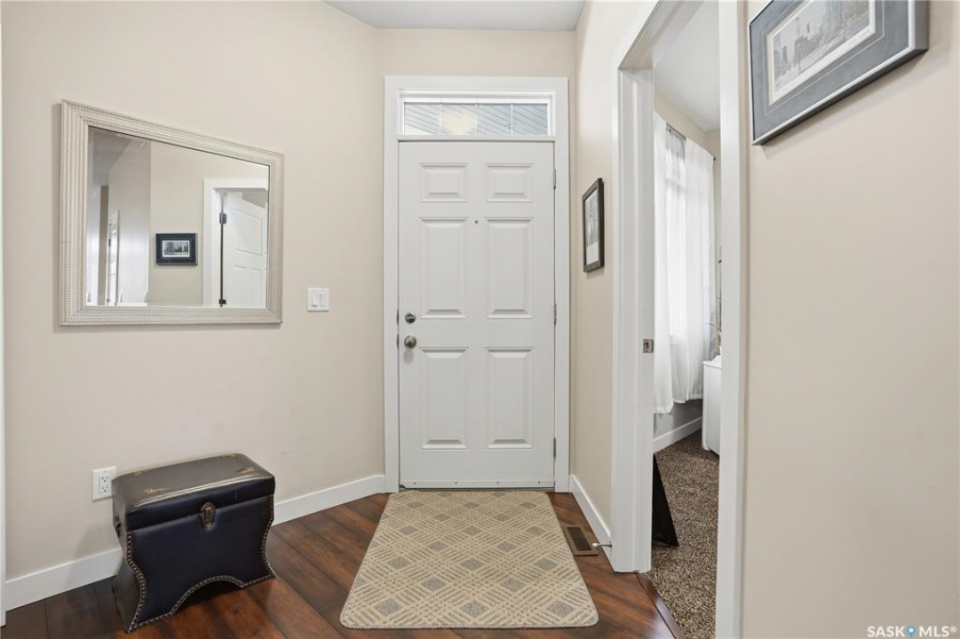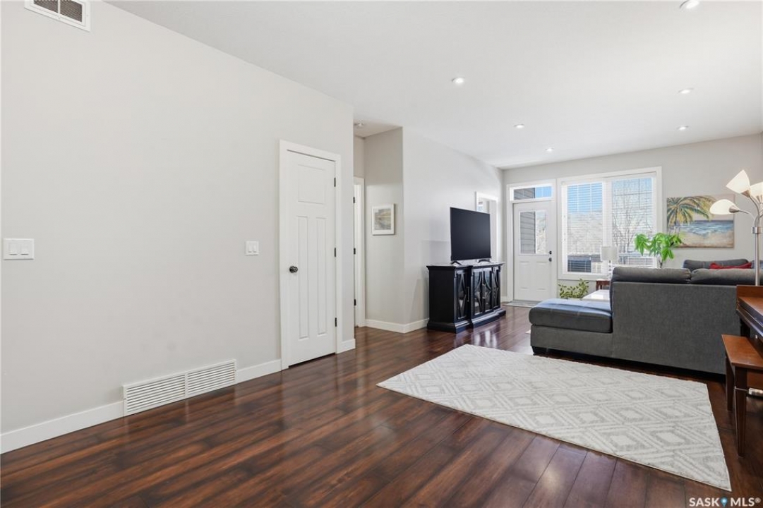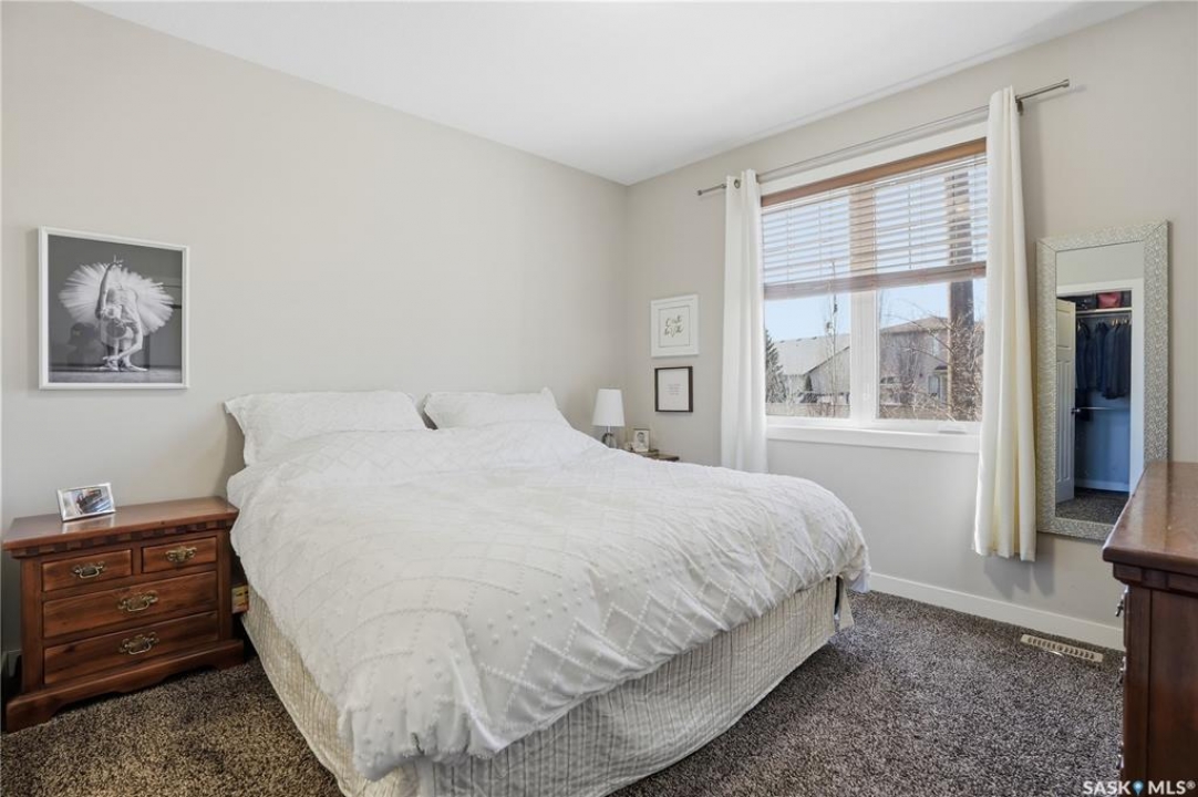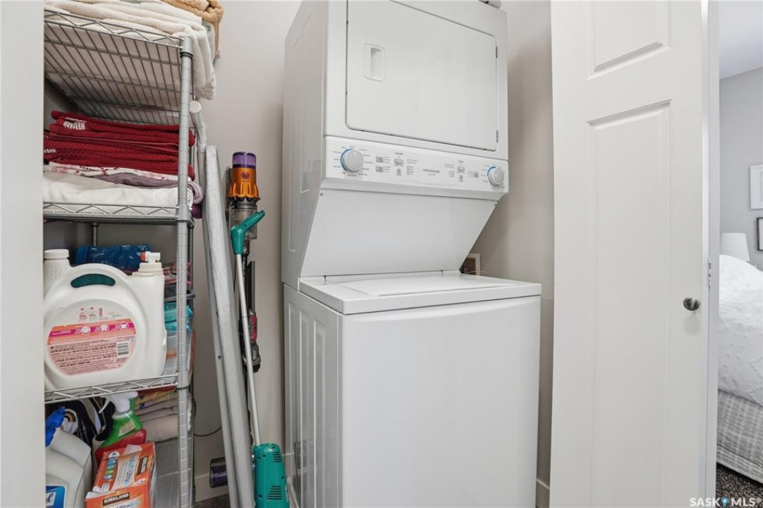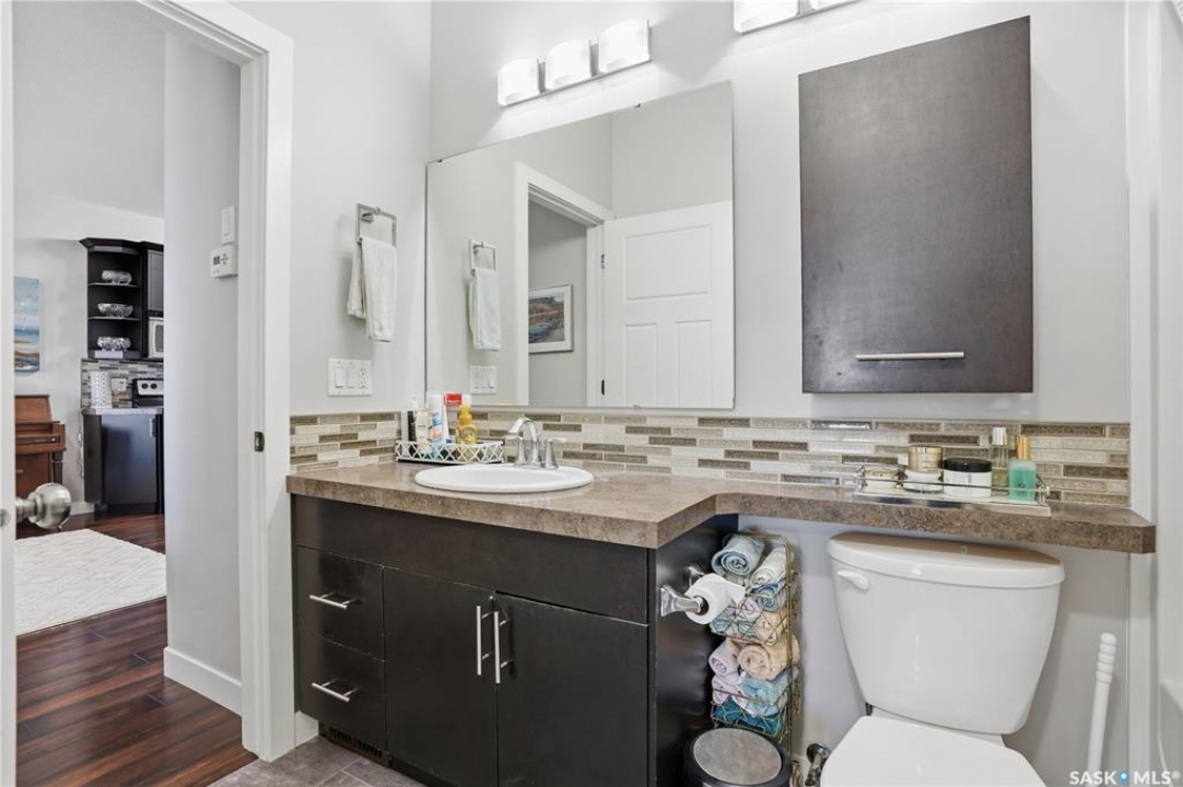Welcome to this 2 bedroom condo located at 3237 Green Bank Road. This exceptionally clean, practical, with TWO parking spots, move-in-ready 829 sq ft condo offers low-maintenance living in one of Regina's most sought-after east end neighbourhoods, The Greens on Gardiner. Located on the main level with an west/east configuration, this unit features an open-concept layout enhanced by 9' ceilings allowing a natural flow from room to room without restricting walls or different flooring. This condo allows for a smart & seamless weaving of the living spaces. The kitchen offers espresso-stained maple cabinetry, a tile backsplash, & generous space for an island, eat up bar, & dining area (if desired). Along the wall is a closet that is perfect for a pantry. A spacious living room is bright with the afternoon sun & provides access to a cozy deck & no back neighbors. The deck has a utility room with the owned on-demand water heater, furnace, & room for storage. A bonus is the natural gas BBQ hookup. The large primary bedroom easily accommodates a king-size bed, furniture, & is positioned at the back & includes a well-designed, oversized walk-in closet. As well, you'll find the hatch to the FULL concrete crawl space that is clean, dry, & solid - this is great space beneath the entire unit & ideal for extensive storage. A second bedroom at the front is a versatile room that can function as a bedroom, office, yoga room, or studio. The full bathroom has a large vanity, new washer & dryer (Fall '25) & with access from the primary bedroom, it offers great functionality, too! 3237 Green Bank Rd has a fabulous location & is tucked away into the residential area of The Greens neighborhood, the location is super! A huge bonus: 2 titled parking (electrical) stalls, #33 & #42, & visitor parking on both sides of the common area. Walking paths, parks, shopping, restaurants, & schools are all close by. Condo fees are reasonable $215.21/month. This is truly a move in ready condo!