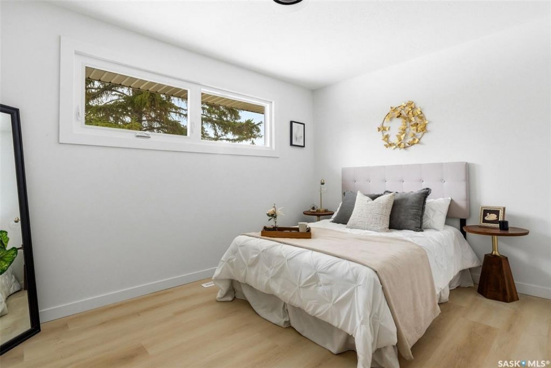 Welcome to 809 Horace Street in Regina's Rosemont neighborhood! This updated bungalow offers 974 sq ft on the main floor with a fully developed basement, providing excellent value for homeowners or investors alike. The main level features a bright and modern interior with luxury vinyl plank flooring throughout, a spacious living room with large front windows, and an updated kitchen complete with white cabinetry, subway tile backsplash, black countertops, and stainless steel appliances. Three comfortable bedrooms and a 4-piece bathroom complete the main floor. The basement is fully developed with additional living space, including a second kitchen, living/recreation area, bedroom, and a 4-piece bathroom—offering great potential for extended family or revenue opportunities. Situated on a 5,611 sq ft lot, the property features a large backyard with mature trees, a double detached garage, and plenty of space to enjoy the outdoors. Located close to schools, parks, and amenities, this home is a great opportunity in an established neighborhood. RECENT UPDATES INCLUDE A NEW FURNACE AND NEW WINDOWS. Don't miss your chance to own a move-in ready home with income potential!
