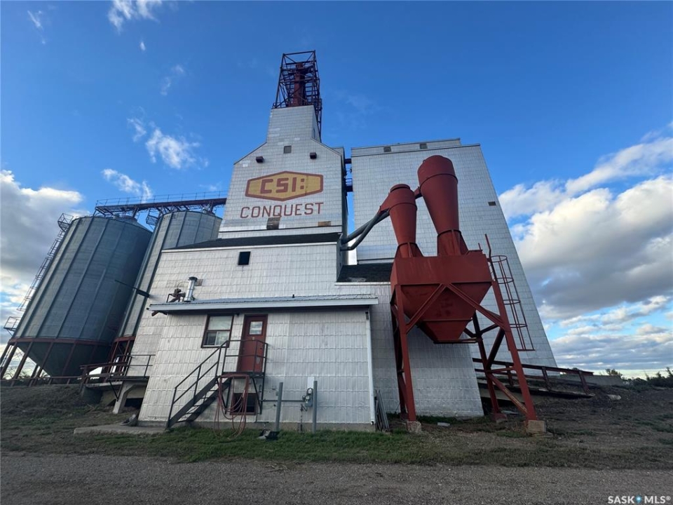 Grain elevator facility located on 8.16 acres of fully owned land in Saskatchewan. A rare opportunity to acquire an elevator property where the land is owned outright, with no railway land lease agreements tied to the site. Improvements include elevator structures, multiple grain bins, scale infrastructure, and an on-site office building. Storage capacity is approximately 4,500 metric tonnes. The property offers direct highway access suitable for truck traffic and ample yard space. Large parcel provides flexibility for a variety of agricultural or industrial applications.