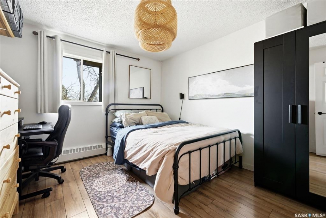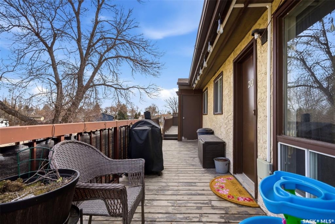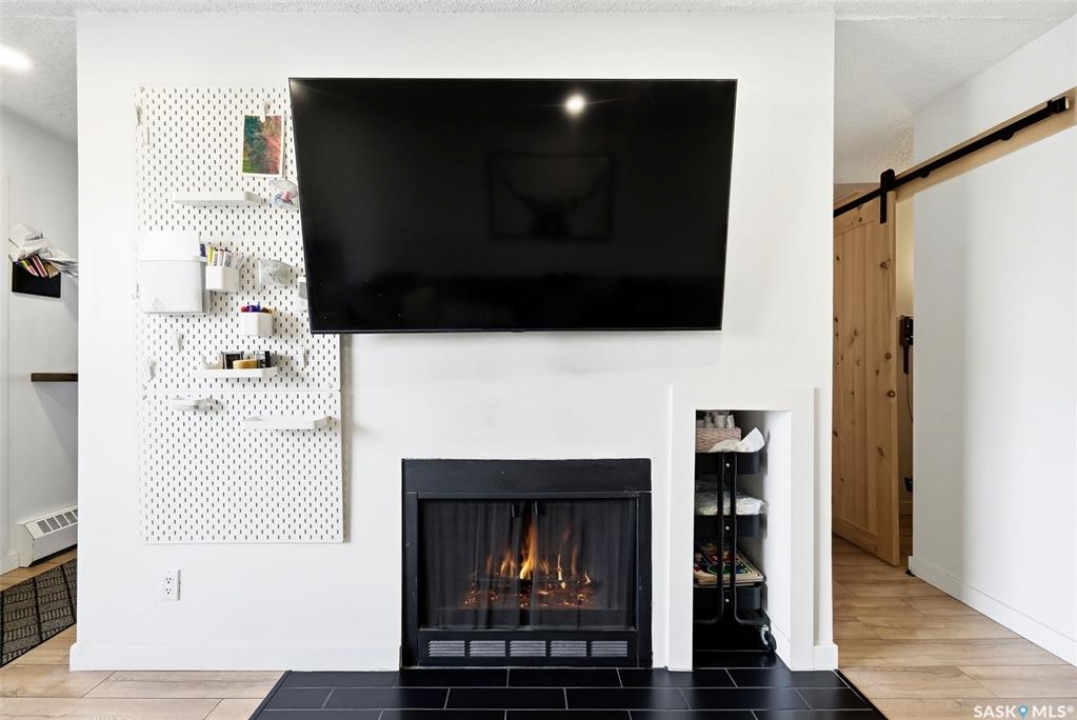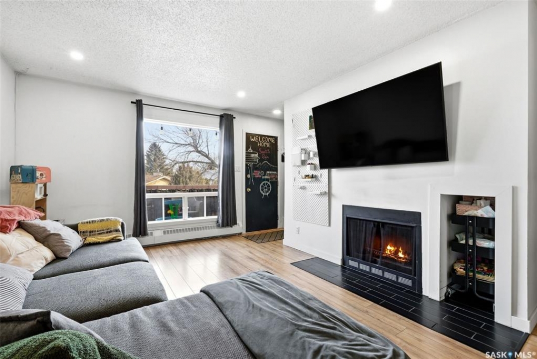 Welcome to #208–67 Rodenbush Drive in Regina's Uplands neighborhood! This well-maintained second-floor condo offers 732 sq ft of comfortable living space, making it an excellent option for first-time buyers, downsizers, or investors. The unit features a bright and inviting living room with a cozy wood-burning fireplace and access to a private balcony, perfect for relaxing. The functional kitchen offers plenty of cabinetry and workspace, while the adjacent dining area provides a great space for everyday meals. You'll find a spacious bedroom, a full 4-piece bathroom, and convenient in-suite laundry. Additional features include wall air conditioning, one electrified parking stall, and a well-managed building. Condo fees include heat, water, sewer, garbage, snow removal, exterior maintenance, and reserve fund contributions, providing excellent value and low-maintenance living. Located close to schools, parks, shopping, and all north-end amenities, this is a great opportunity to own an affordable and move-in ready condo.