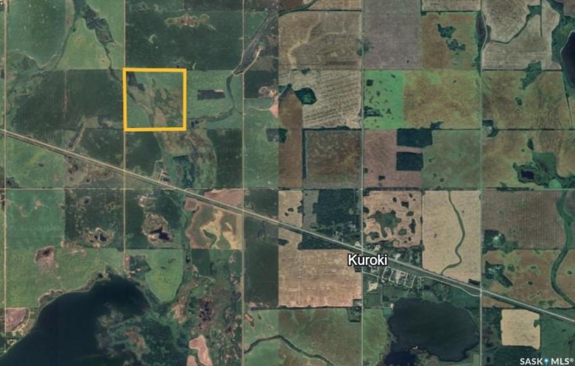 This RM of Sasman 1/4 is Assessed at $194,700 (SAMA). The SAMA has the cultivated acres at 140 and Total Acres is 159.33. The property is 2 miles West of Kuroki on Highway 5 and 1/2 Mile North. SAMA has 40 Acres of Oxbow Soil, and 100 of Whitesand and Gravelly Loam. No report for gravel but highways had used some gravel from the land in the distant past. An old airstrip had been also built up from years ago and is part of the hay land now. The land currently has most turned to Hay land but has been farmed in past. Seller claims closer to 100 has been cultivated more recently. Current renter seeded about 50-60 BUT that is due to him bailing for selling the hay.