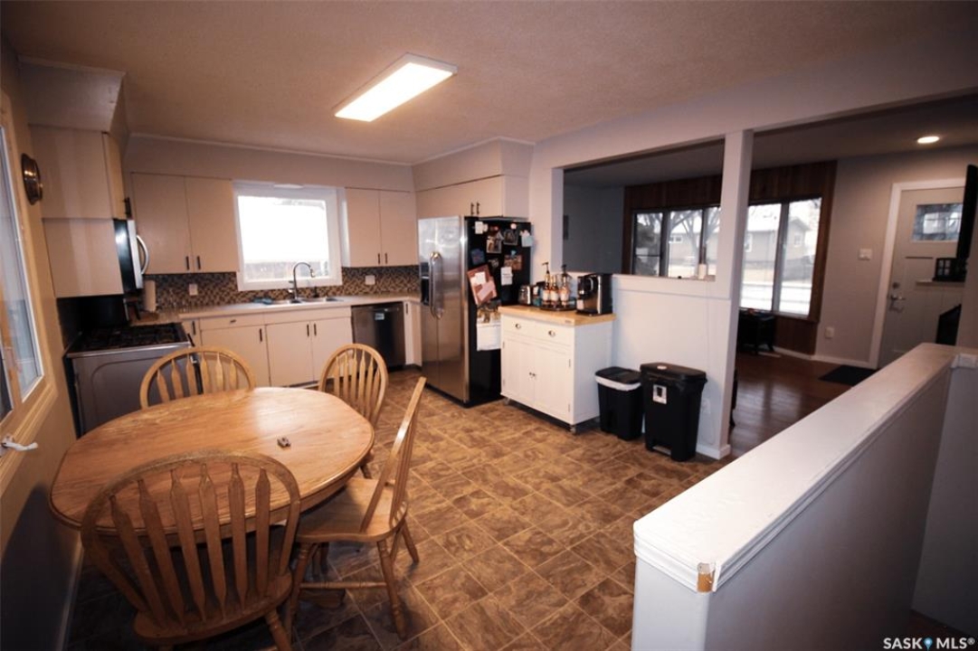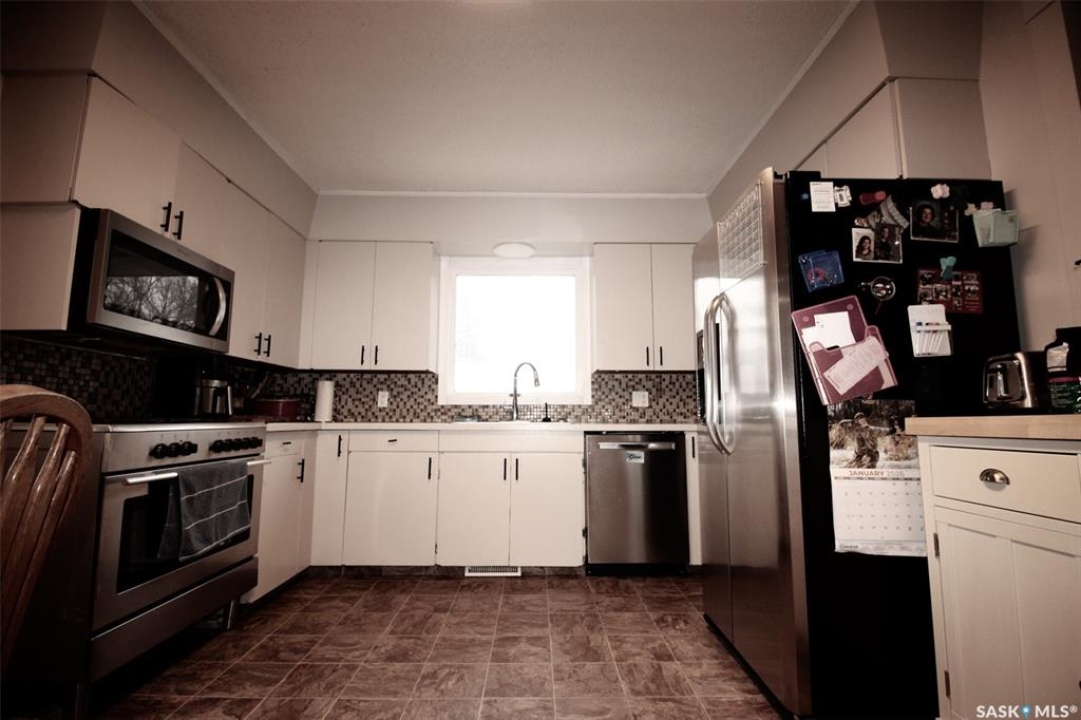 Looking for the perfect place to raise your family? This beautifully updated home in Shaunavon delivers comfort, style, and space in all the right places. Step through the front door into a bright, expansive living room that flows seamlessly into the open-concept kitchen and dining area—ideal for both everyday living and entertaining. The kitchen has been thoughtfully upgraded with stainless steel appliances, including a gas stove, refreshed cabinetry, and a dedicated coffee station for your morning routine. Just off the kitchen, step out to an impressive multi-level deck complete with a natural gas BBQ hookup—perfect for hosting gatherings or relaxing summer evenings. The main floor offers three generously sized bedrooms, including a versatile space currently used as a home office. The primary bedroom features convenient his-and-hers closets, while the full 4-piece bathroom adds a touch of luxury with dual and rain shower heads, plus a bidet. Downstairs, the fully developed lower level is a dream for kids or teens, boasting a massive open rec space with durable flooring, a fourth bedroom for guests, and a 3-piece bathroom currently under renovation. A separate laundry room adds to the home's functionality. Recent upgrades include a high-efficiency furnace, new hot water heater, and fresh paint throughout—making this home truly move-in ready. Outside, you'll find a single garage, a large workshop for hobbies or storage, a partially fenced yard, and additional parking off the back lane. This is a home designed for real life—don't miss your chance to make it yours!