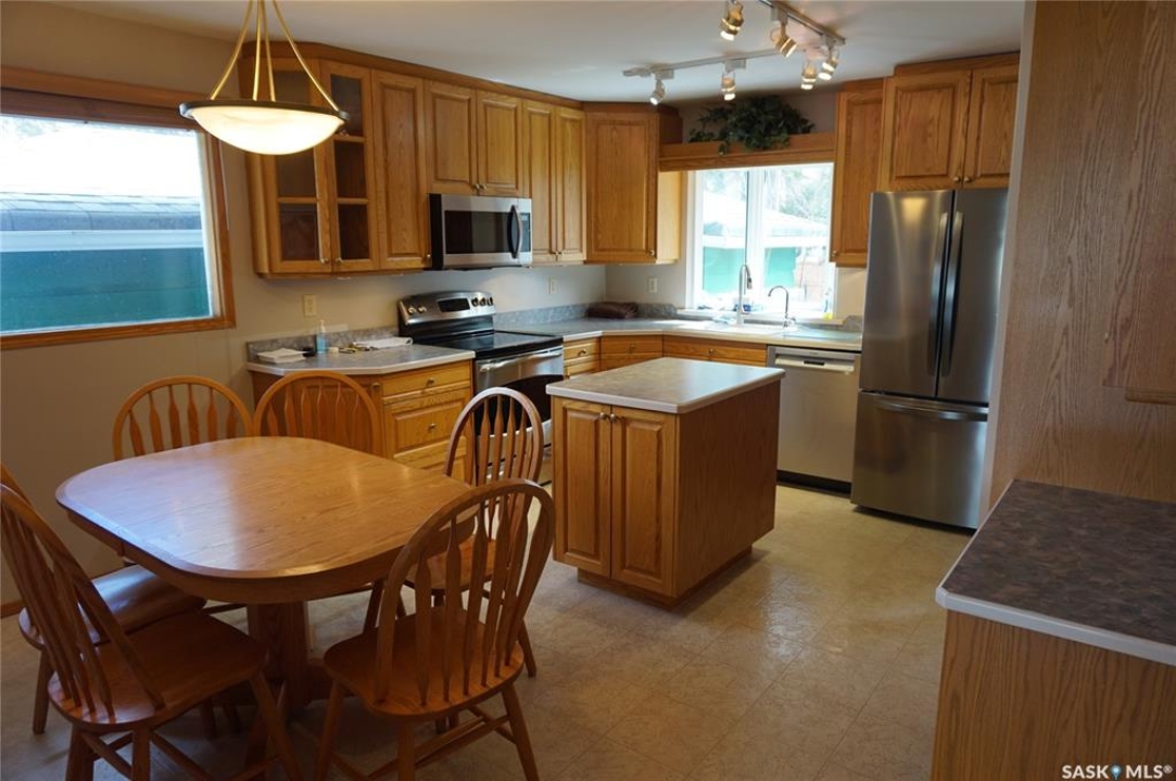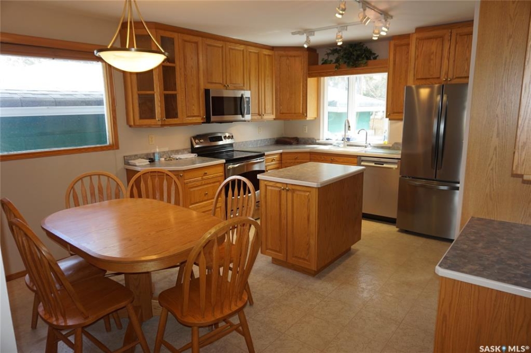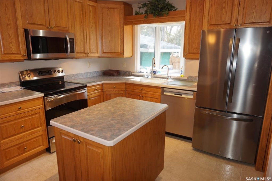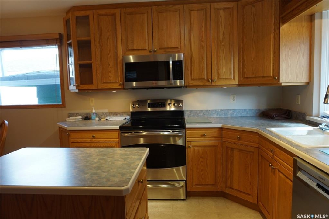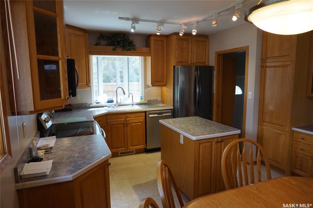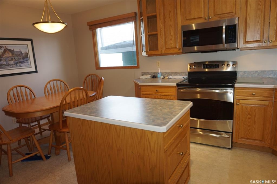 This charming 1,108 sq. ft. bungalow is ideally situated in Regina's highly sought-after Lakeview neighbourhood. Renowned for its mature, tree-lined streets, character homes, and close proximity to parks, schools, shopping malls and transit, Lakeview offers an exceptional balance of serenity and convenience. Inside, the home features a beautifully crafted oak kitchen complete with a functional island—perfect for meal prep and gathering. Thoughtful touches such as a built-in pantry, pull-out drawers, and abundant storage ensure both style and practicality. Quality kitchen appliances are included for added value. The bright and welcoming living room is filled with natural light from a large picture window and showcases elegant hardwood flooring, creating a warm and inviting space for everyday living and entertaining. This home offers three comfortable bedrooms and two bathrooms, providing ample space for families. The primary bedroom also features hardwood flooring, adding to its charm and comfort. Some windows in the home have been updated. The basement remains undeveloped, presenting a fantastic opportunity to customize and expand the living space to suit your needs. Step outside to a fully fenced backyard, complete with a deck—perfect for relaxing or hosting gatherings—as well as a convenient storage shed. A garage adds further functionality with secure, covered parking. Don't miss this opportunity to own a home in one of Regina's most desirable neighbourhoods. Book your private showing today.