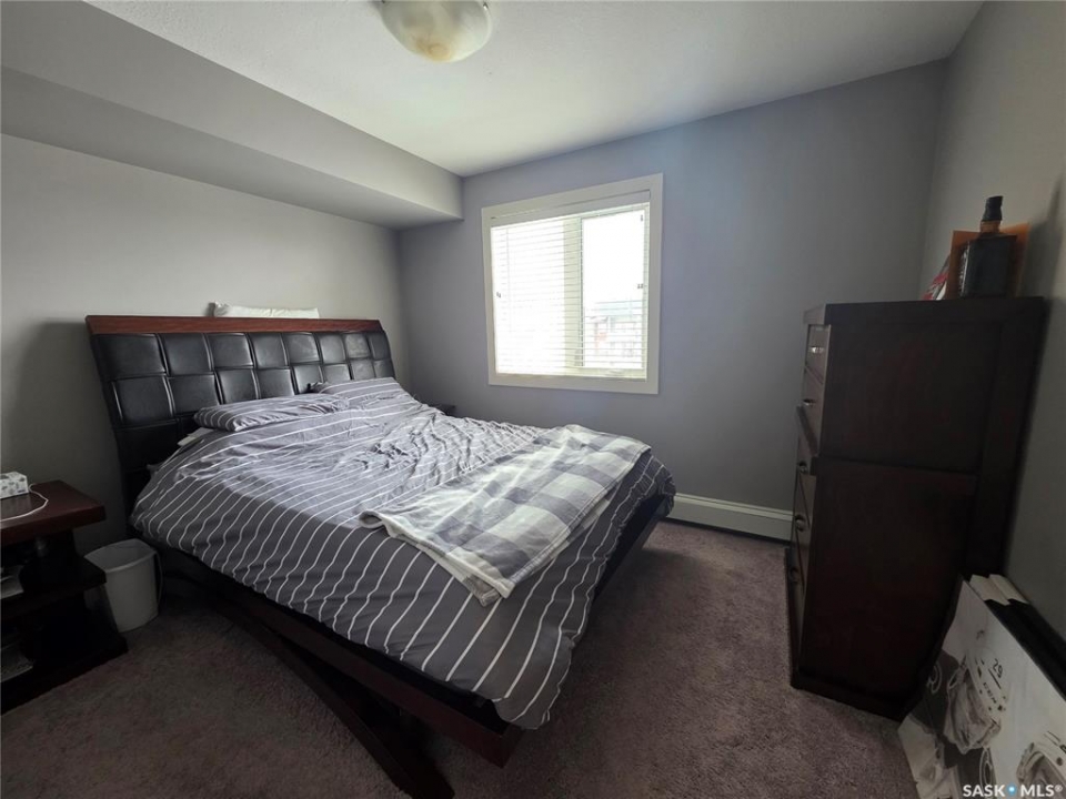 Top Floor one bedroom with a den located in Petterson Point III near many amenities in Estevan!! This unit is 698 sq.ft with a spacious kitchen with tile backsplash and island, lots of cupboards, adjacent is the living room with carpet flooring with balcony access and den! One bedroom with walk through closet to a full bathroom and laundry with storage and coat closet completes this unit. One outside parking stall is included. Call today!