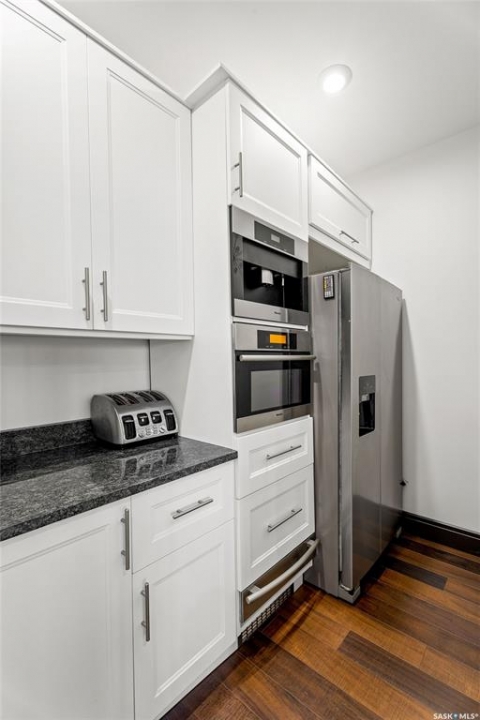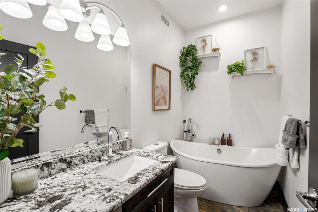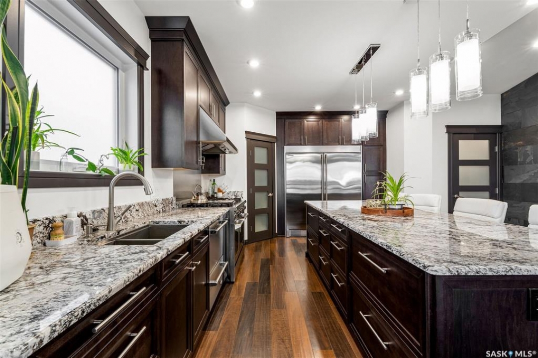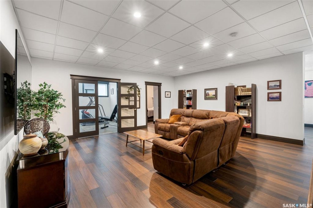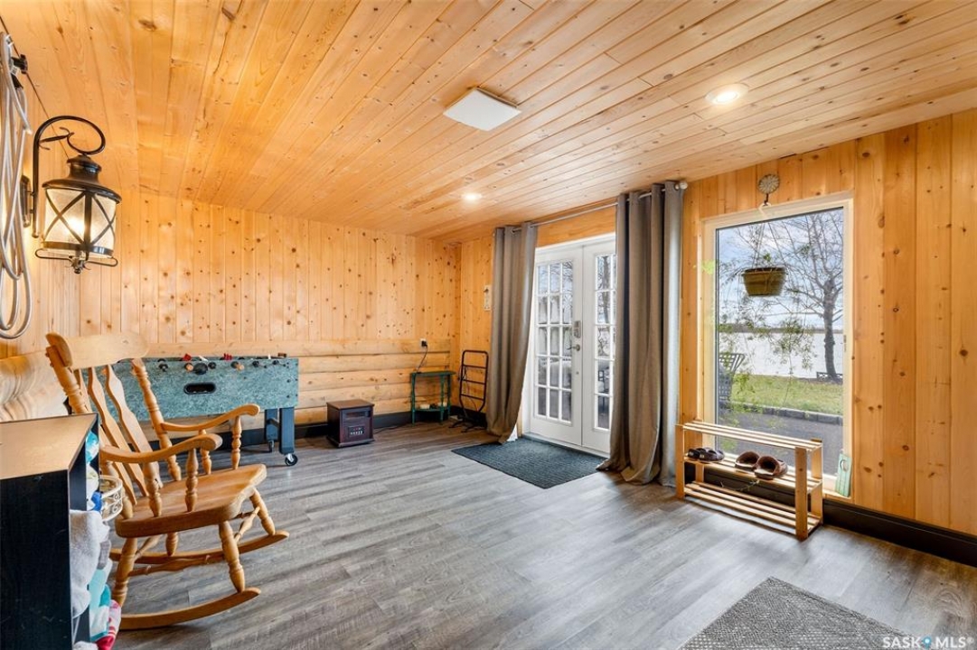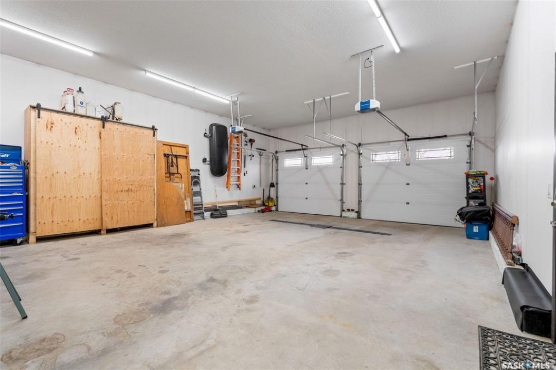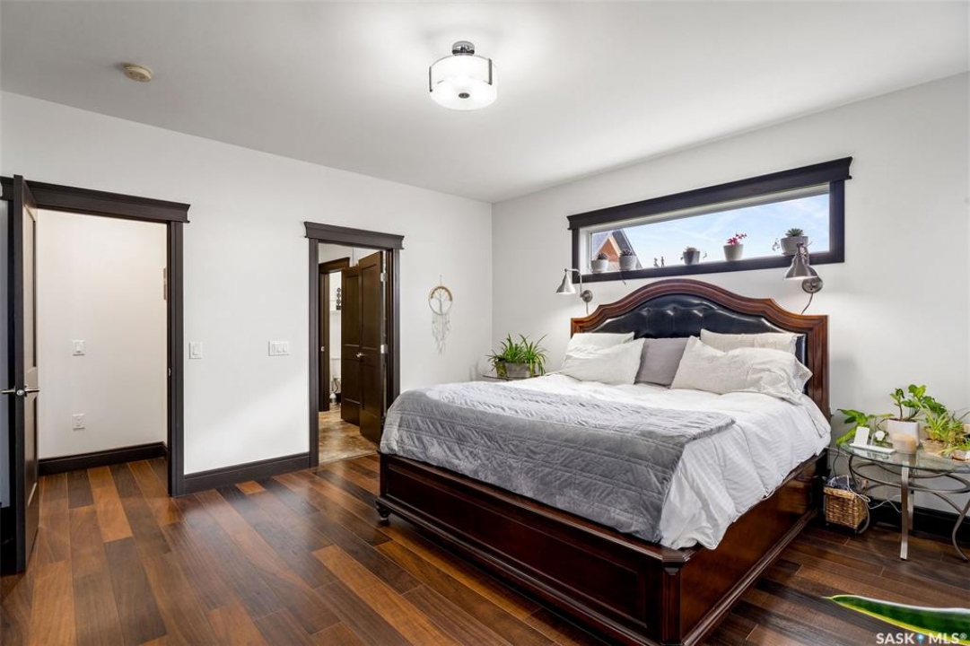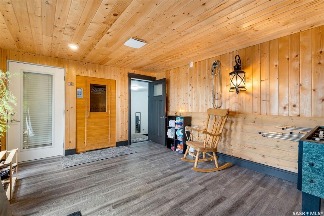 Lakefront Executive Style home at Humboldt Lake! Welcome to this stunning lakefront executive bungalow offering 1,733 sq. ft. of refined living space in a serene and private setting. Elegant Interiors & Gourmet Kitchen: The open-concept main living area features soaring vaulted ceilings and a striking natural gas slate fireplace, creating both warmth and elegance. A chef's dream kitchen awaits with gleaming granite countertops, a large island with seating, and a THOR Professional six-burner gas stove with griddle and pot filler tap. High-end appliances—double drawer dishwasher, ,including a built-in coffee maker, Miele speed oven, Miele espresso/coffee maker , Miele dish warming drawer and a well-planned butler's pantry—make entertaining effortless. Thoughtful Design & Luxurious Details: This home offers five bedrooms and three bathrooms, including a lakeside master retreat complete with walk-in closet and spa-inspired ensuite. A spacious foyer off the 1,000 sq. ft. attached garage with mezzanine sets the tone for style and function, while in-floor heating in both the garage and basement ensures year-round comfort. Outdoor Living & Recreation: The west-facing lot is perfect for evening sunsets, enjoyed from the covered deck with direct basement access. A dedicated sauna room overlooks the 6 person hot tub with waterfall feature, providing the ideal spot to relax after a day on the water. The basement boasts 9 ft ceilings, a large family room, an exercise area, and a versatile sauna/games room. Modern Comfort & Efficiency: Equipped with natural gas forced-air heating and central air conditioning, in floor heat in the basement and garage, this home blends contemporary convenience with lakeside tranquility. Experience the unmatched lifestyle of the Lakefront Executive at Humboldt Lake—where luxury meets comfort at every turn. Call today to arrange your private viewing!