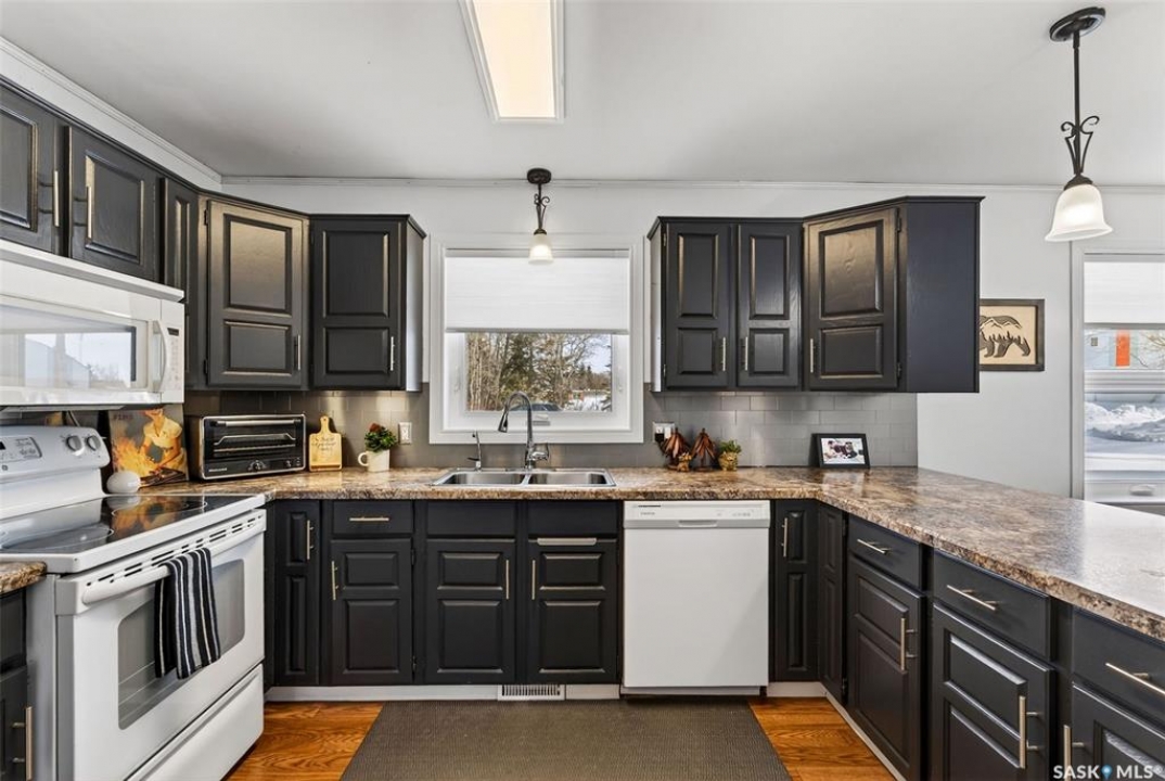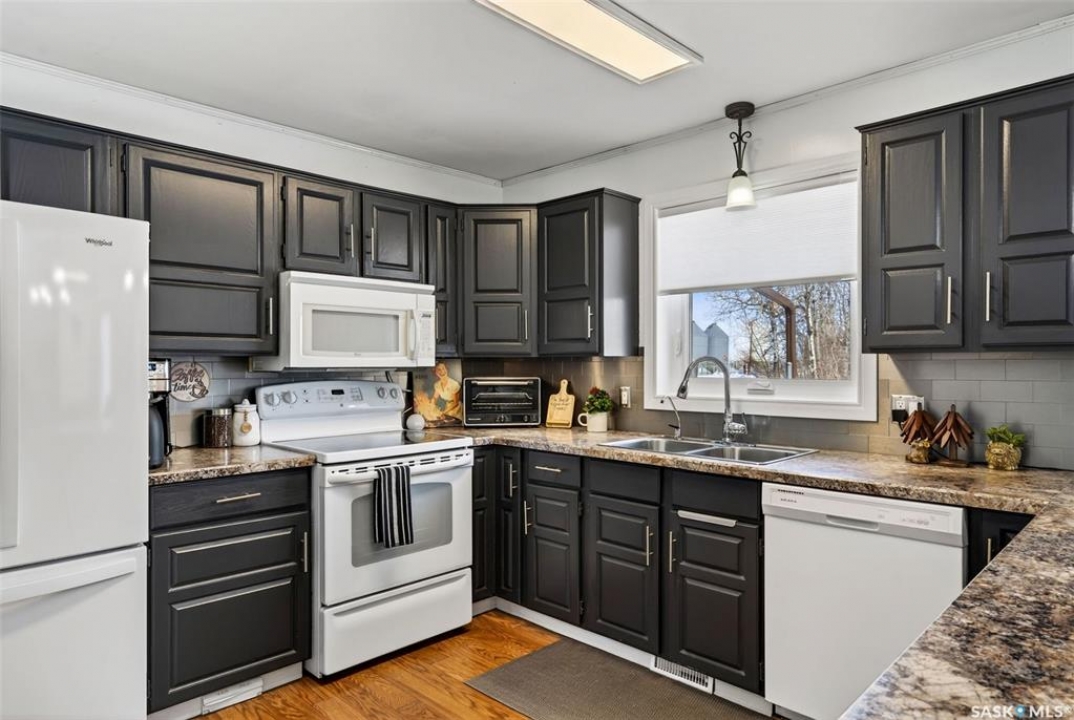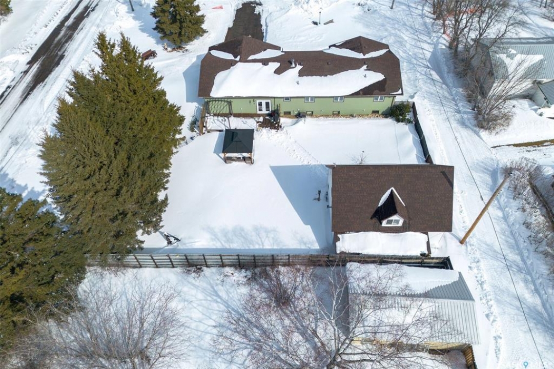 Have you been waiting for a move in ready home in a quiet yet thriving community with convenient access to local employment opportunities? If so, 321 2nd St S in Spalding, SK may be exactly what you've been looking for. Situated on an oversized 100x135 double corner lot, this 1465 sq ft bungalow was built in 1985 and is ideally located centrally close to excellent employment options, including nearby Doepker Industries and Schulte Industries, and is only about 40 minutes from the BHP Jansen Potash Mine. Outside, the backyard is a mini oasis featuring a partially fenced yard with a mature garden area and a large back deck showcasing two gazebo spaces perfect for entertaining. For those in need of ample garage space, the property includes a 24x32 detached garage and a 24x32 double attached garage with direct entry to a covered four season breezeway complete with a cozy sitting area. Upon entering the home, it's immediately clear that it has been lovingly maintained and remains in immaculate condition. You are welcomed by a spacious porch area that includes main floor laundry, an additional stand up fridge/freezer, plenty of storage, and a convenient two-piece bathroom. Moving further inside, the open-concept layout features a beautifully maintained kitchen, a dining area and large living room complete with a gas fireplace. Brand new vinyl windows installed in 2025 allow for an abundance of natural light, creating a bright and inviting atmosphere throughout the space. The main floor also offers 3 generously sized bedrooms and an updated 4pc bathroom with a relaxing jet tub. Downstairs, the fully finished basement provides a spacious family room, a large den, an additional bedroom, 3pc bath and a utility room. Additional updates include shingles (2020), exterior painting (2021), updated wiring/box and Glowstone permanent lighting. Homes that have been this well cared for do not come on the market often schedule your viewing today.