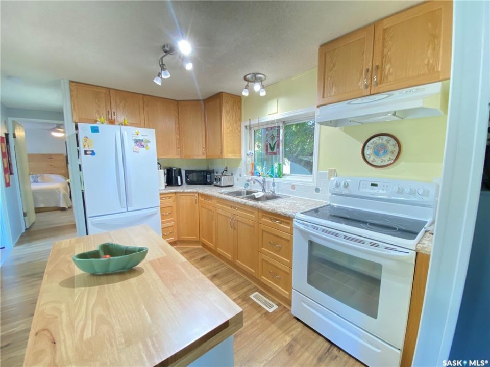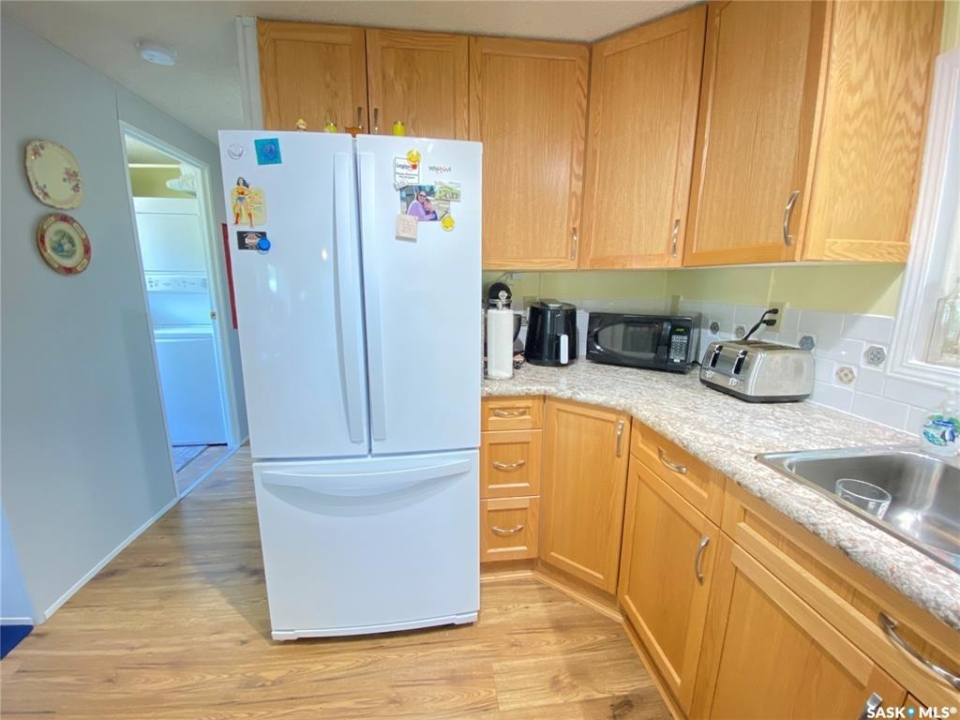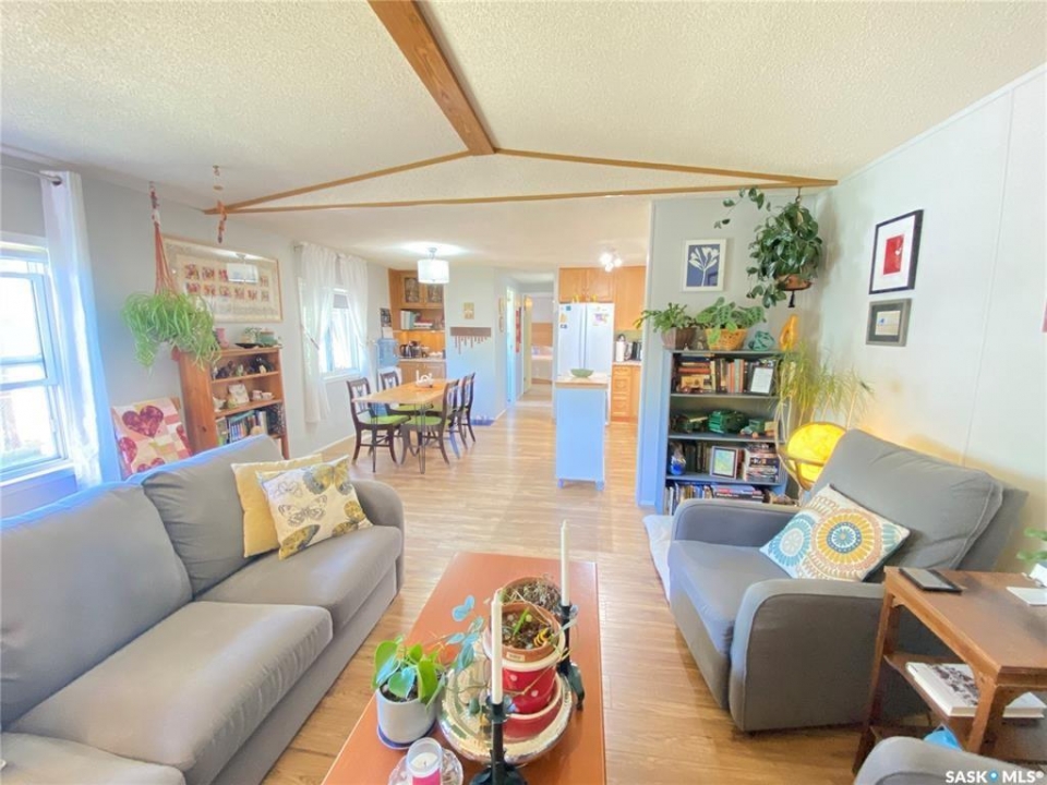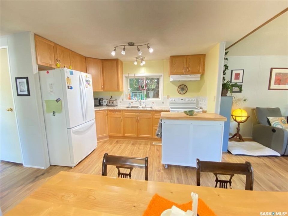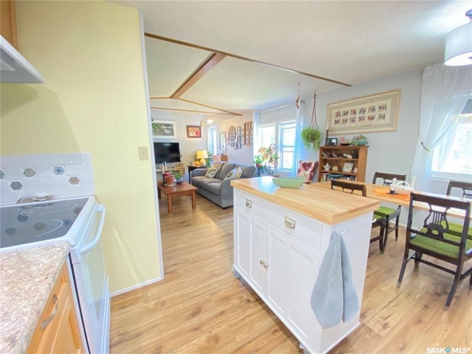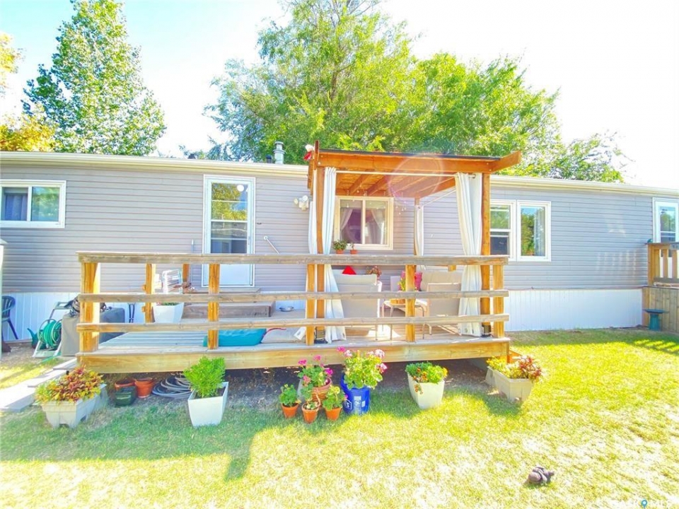 A CARPORT is an added feature of this, must see, mobile home located close to Maple Creek and Cypress Hills Provincial Park. This home features a large primary bedroom with a 4 piece en-suite which includes a tub/shower combo. Two more bedrooms are at the opposite end of the mobile from the master and have their own 4 piece bathroom. The newly remodeled kitchen has ample cabinet space including a separate coffee bar and mobile island. With new laminate throughout, this home it shows like new and is move in ready. The current owner added privacy fencing and the yard is fully fenced. No age restriction in this park so this property is ideal for a family or can be enjoyed as a retirement home. $448 monthly for the park fees which include garbage and recycling pickup as well as road maintenance and taxes. What's included...sellers will leave the Starlink system, Ring Security System (no monthly fees) and the generator as this home comes equipped with a Generlink Transfer Switch for the power outages and all the appliances are less than 3 years old. This affordable home won't last long; call for a tour.