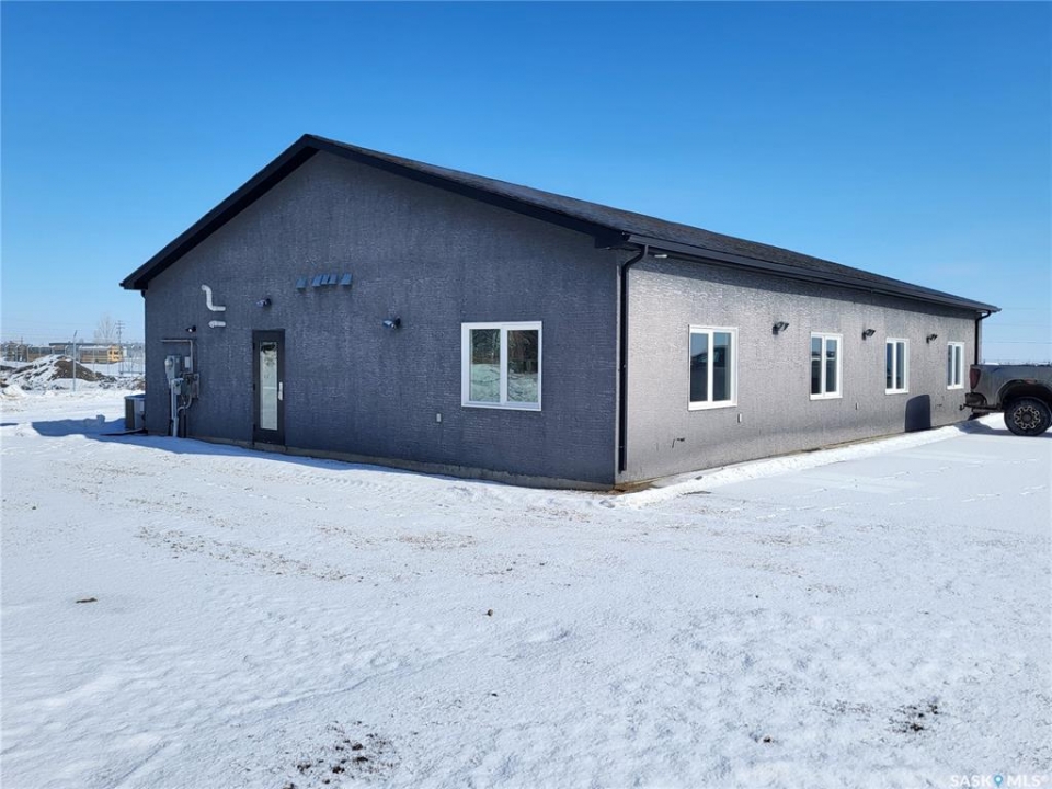 Commercial Office Building – Vanscoy, SK Lot 4, Block B, Plan 81S42576 Well-maintained 2,400 sq. ft. commercial office building located in Vanscoy, Saskatchewan, offering excellent access with both paved and gravel road approaches. Built in 2013, this property sits on 0.55 acres with approximately 140 ft of frontage and ample onsite parking. The building features wood frame and masonry construction and is serviced with natural gas, public water line, municipal sewer, power, and phone. Heating is provided by an energy-efficient natural gas forced air furnace, along with air conditioning for year-round comfort. Inside, the building includes two 2-piece bathrooms and functional office space suitable for a variety of commercial uses. Additional exterior improvements include two concrete pads measuring approximately 40' x 30' and 90' x 30', providing flexibility for equipment storage, additional structures, or outdoor operations. The property is currently vacant but has strong income potential and could be rented for approximately $3,500 per month triple net, making it an attractive opportunity for investors. Property Highlights • 2,400 sq. ft. commercial building • Built in 2013 • 0.55 acre lot • Natural gas forced-air heating & air conditioning • Two 2-piece bathrooms • Two concrete pads (40' x 30' and 90' x 30') • Onsite parking • Public water & municipal sewer • Vacant with potential rental income of approx. $3,500/month triple net
