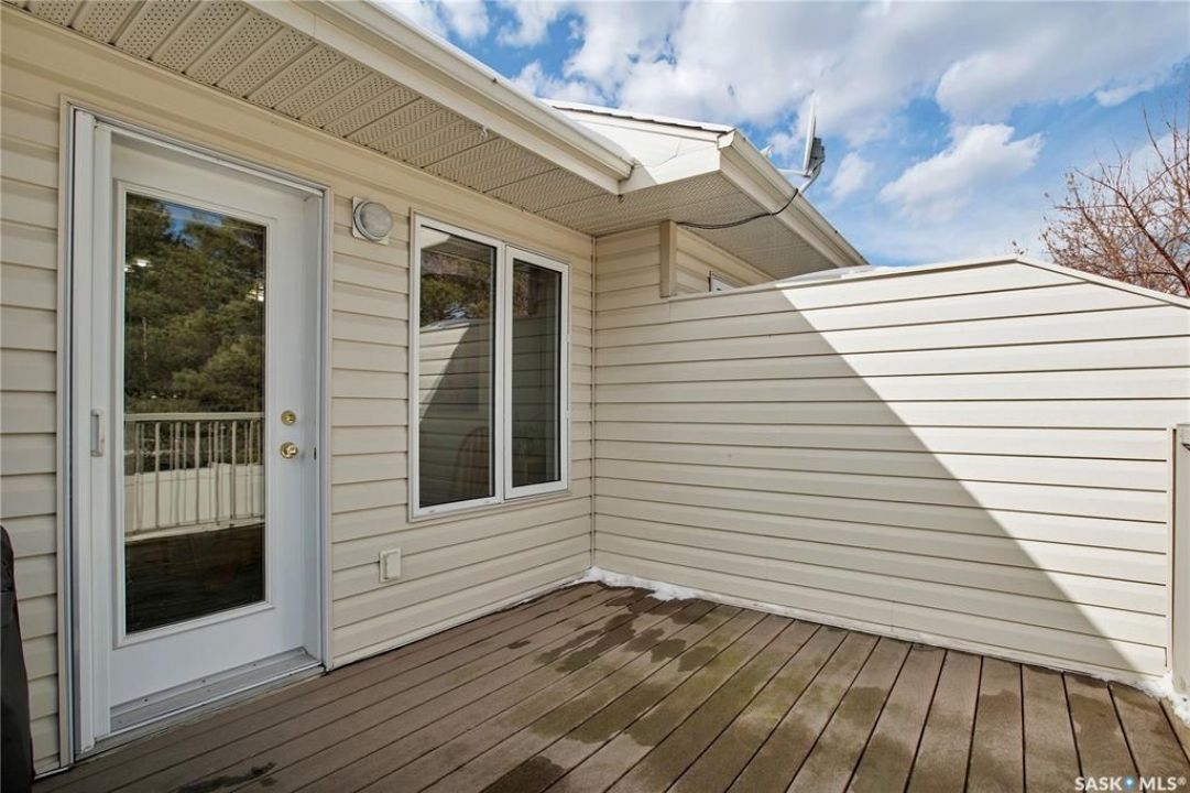 Thinking of Condo life ? The location is fabulous and has a great 55 + atmosphere, handy to the Willows for golfing, Stonebridge shopping and dining, easy access to 8th street and the downtown business district! Features of this tastefully appointed townhome: large size foyer, vaulted ceilings, spacious living room, well planned kitchen walk in pantry, extended eating bar, dinning nook, doors to deck, and a 2 piece bathroom complete this level. The upper level boasts 2 bedrooms (large primary with a 5 piece Jack n' Jill bath). The lower level is fully developed with a spacious family room, den, 3 pc bathroom and a laundry room. Direct access to the double attached garage. Other key highlights: updated furnace & water heater, hardwood flooring, ceramic tile flooring, linoleum, carpet in bedrooms, fridge, stove, dishwasher, range hood fan, central air, built in vac and garage door openers. The yard is well treed end unit, no neighbours behind. Don't miss this chance for easy living!