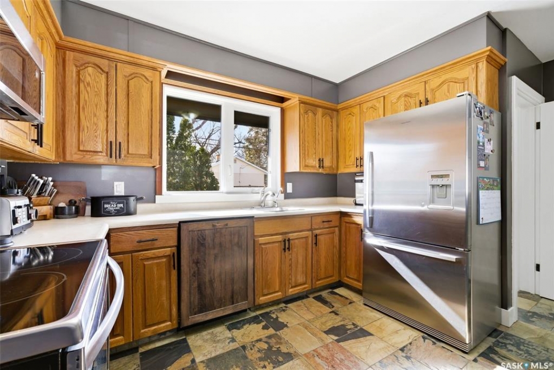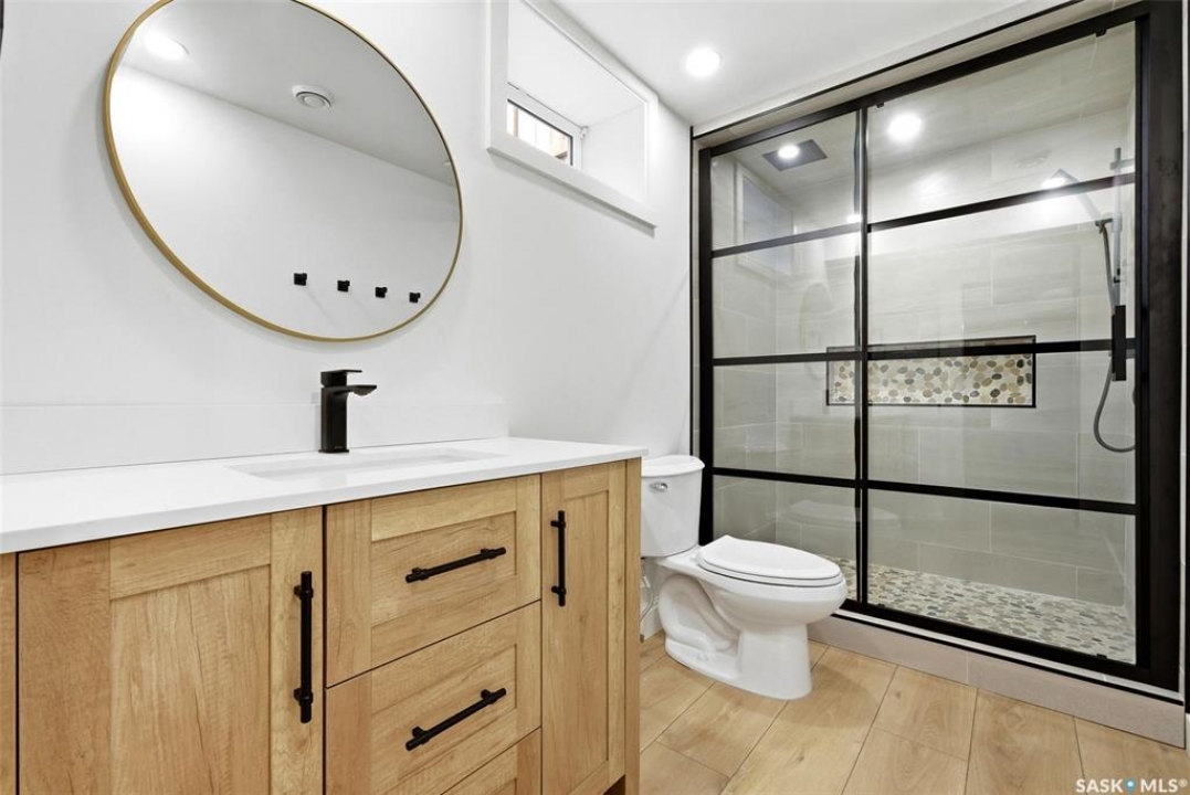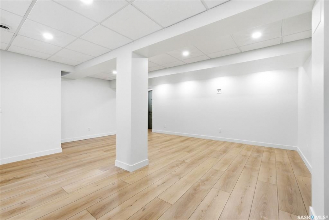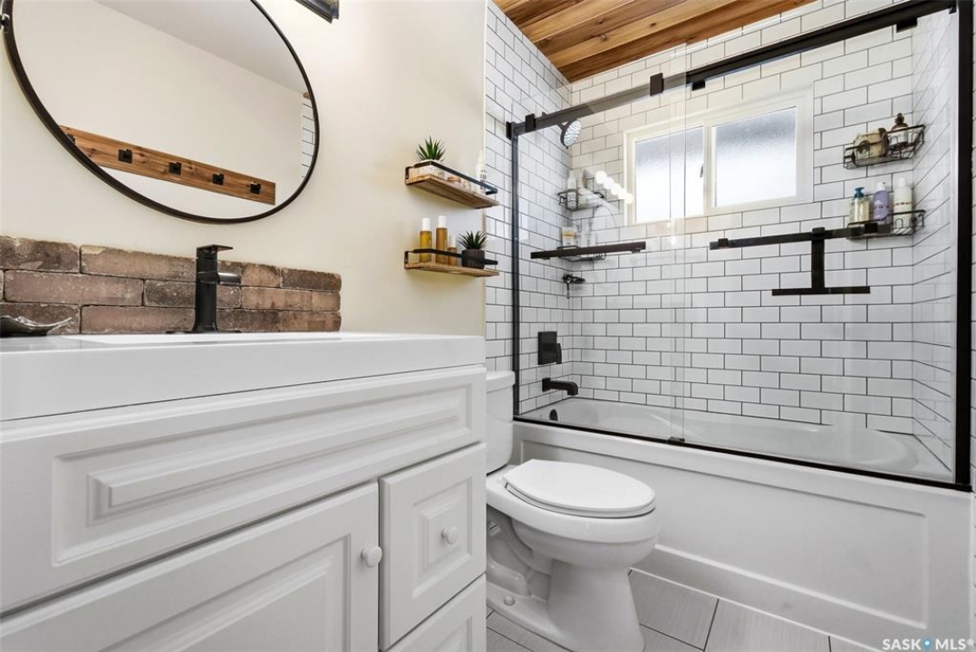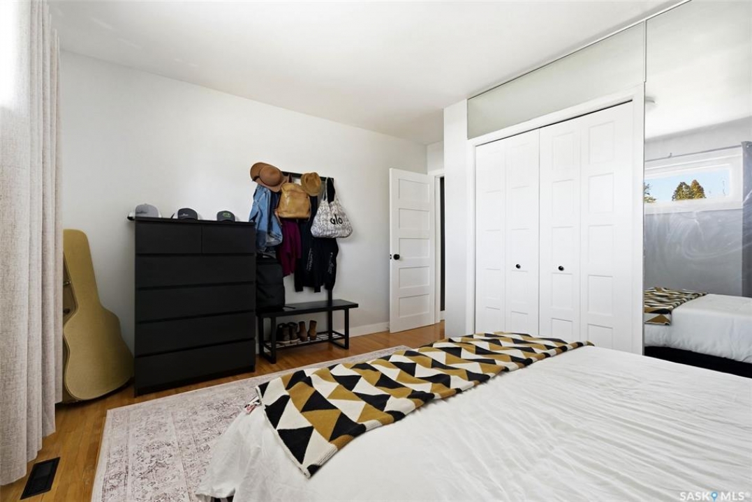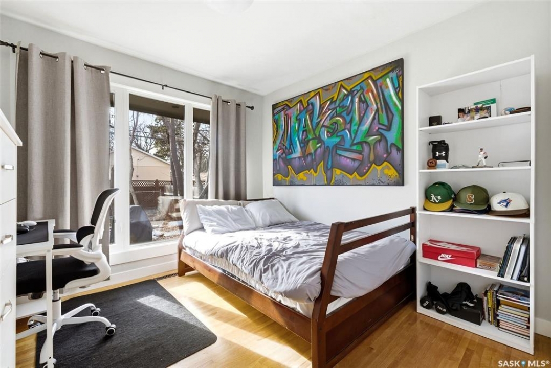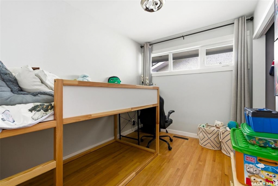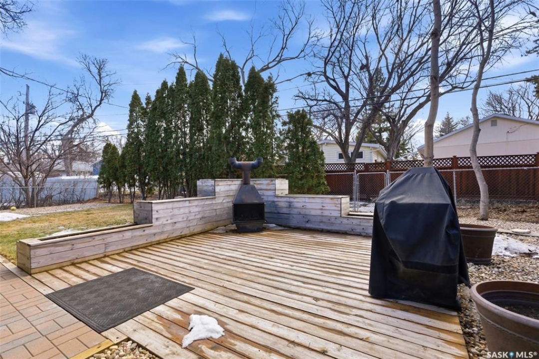 Loaded with recent upgrades and ready to move into! This fully developed Whitmore Park bungalow is so well maintained and offers desirable features throughout. A spacious bright, living room, with attractive hardwood flooring and a wood burning fireplace, is bright and opens to the dining area. The kitchen has ample oak cabinetry, stainless steel appliances and a tile floor. There are three bedrooms on the main floor all featuring hardwood floors. The bedroom facing the backyard includes a half bath making it an excellent spot for a home office. The four piece bath was recently updated and has tile flooring. New basement development includes a large recreation room, two bedrooms with egress windows, a den, a three piece bath and a utility room. This home has central air conditioning, some triple pane PVC windows and architectural shingles. Enjoy the fenced and meticulously maintained private backyard from the large deck. A large driveway off of the street provides ample parking while two sheds in the backyard offers plenty of storage. Located in a family friendly neighbourhood, close to school, parks and shopping. Call today to book your viewing!