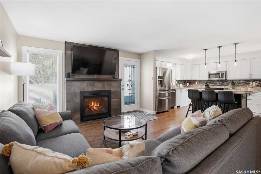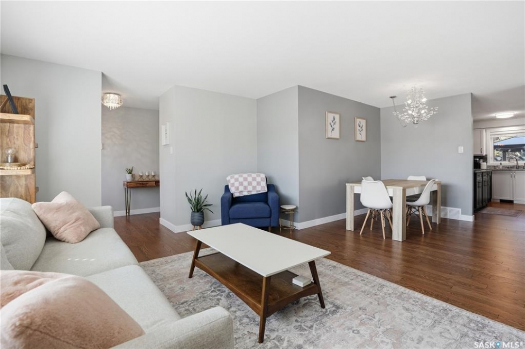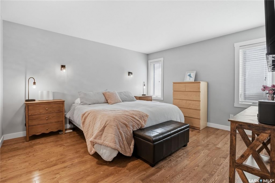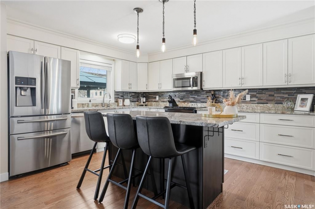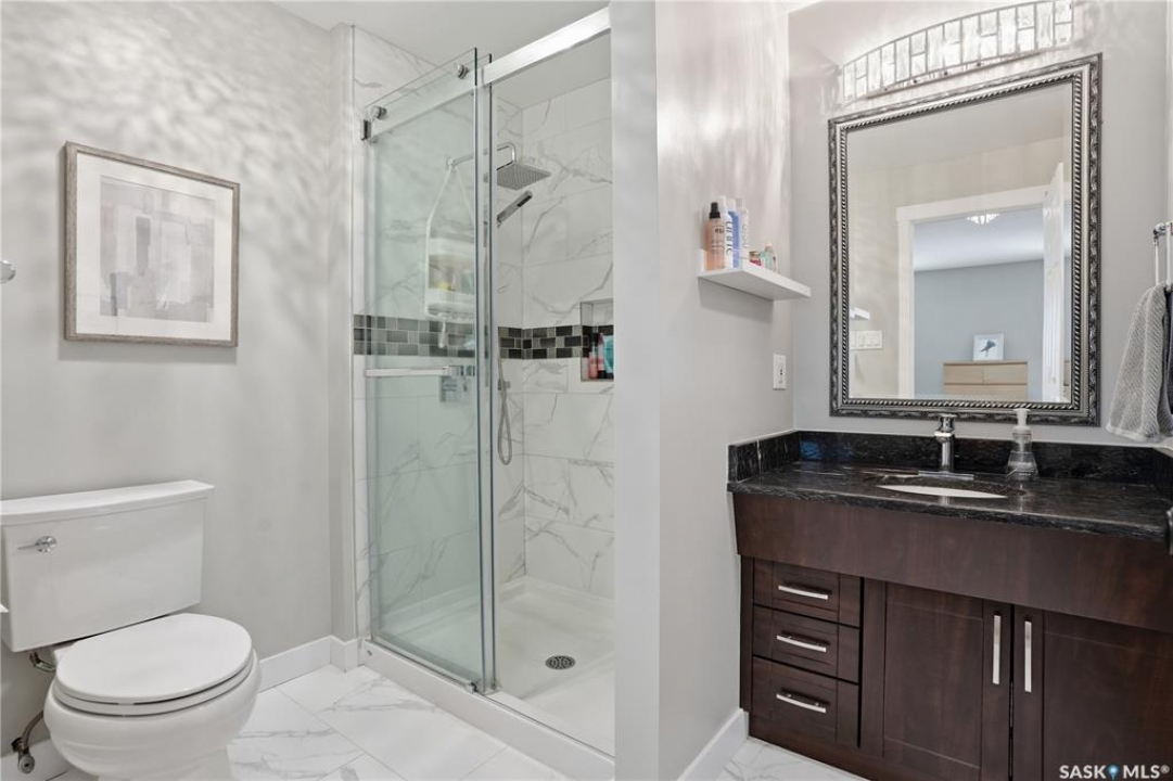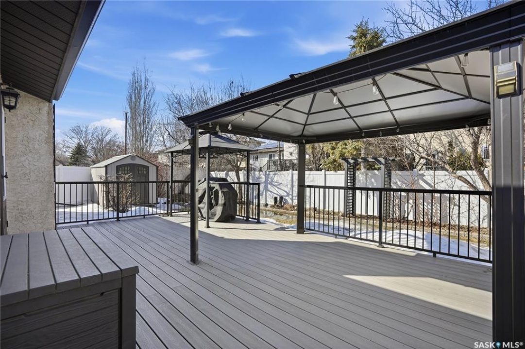 Welcome to 2206 Mahony Cres. This beautiful bungalow is located in Regina's highly sought-after community of Gardiner Park. Built in 1982, this truly impeccable 1,587 sq ft home is sure to impress! Upon entry, the warmth of sunshine paired with neutral colors is relaxing & offers a peaceful energy throughout the stylish, exquisite home. The entry welcomes you into a lovely front living area with large south-facing windows & showcases rich hardwood flooring & an airy, light feel. A natural flow from one room to the next is seamless, & the classic dining area is both timeless & versatile. The kitchen is the heart of the home & this one is a true highlight offering great space, extensive cabinetry, granite, tiled backsplash, an abundance of drawers & cabinets, updated appliances, & modern eat-up island. The cozy family with a gas fireplace & direct access to the backyard is convenient & impressive. Completing the main floor is a tiled full bathroom with quartz sink, large laundry room with storage, & three generous-sized bedrooms with the primary bedroom featuring an elegant ensuite with tiled shower, marble flooring, barn door & more! The fully developed basement adds a tremendous amount of extra living space, with 2 bedrooms (1 bedroom doesn't have a closet), workshop area, den, storage, roughed-in-plumbing area for a future bathroom, & areas perfect to relax in. Step outside to a backyard retreat with a huge composite deck, gazebo, gas bbq hook up, a shed, & it is fully fenced with mature trees. Worth noting: kitchen ('18), front driveway ('21), shingles ('19), hi-eff furnace & AC ('18), flooring, added attic insulation to R50 ('21), gas fireplace ('18), alarm system ('19), refresh of paint, & more! Lastly, a double garage (20x21) completes the home. Location is ideal - close to a park, shopping, a school, & east-end amenities! In a fantastic location, with loads of upgrades, this truly move-in ready, modern bungalow is a rare find in a family-friendly area.