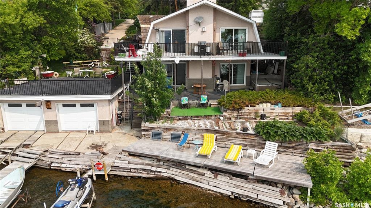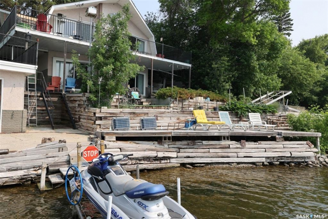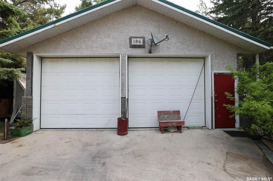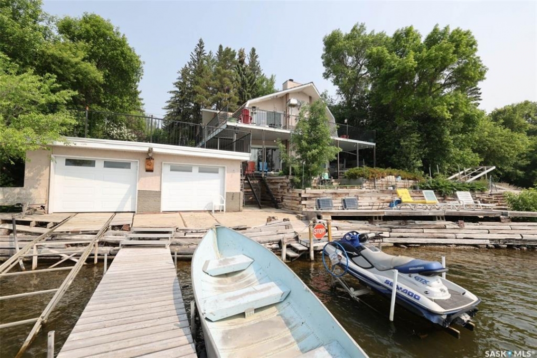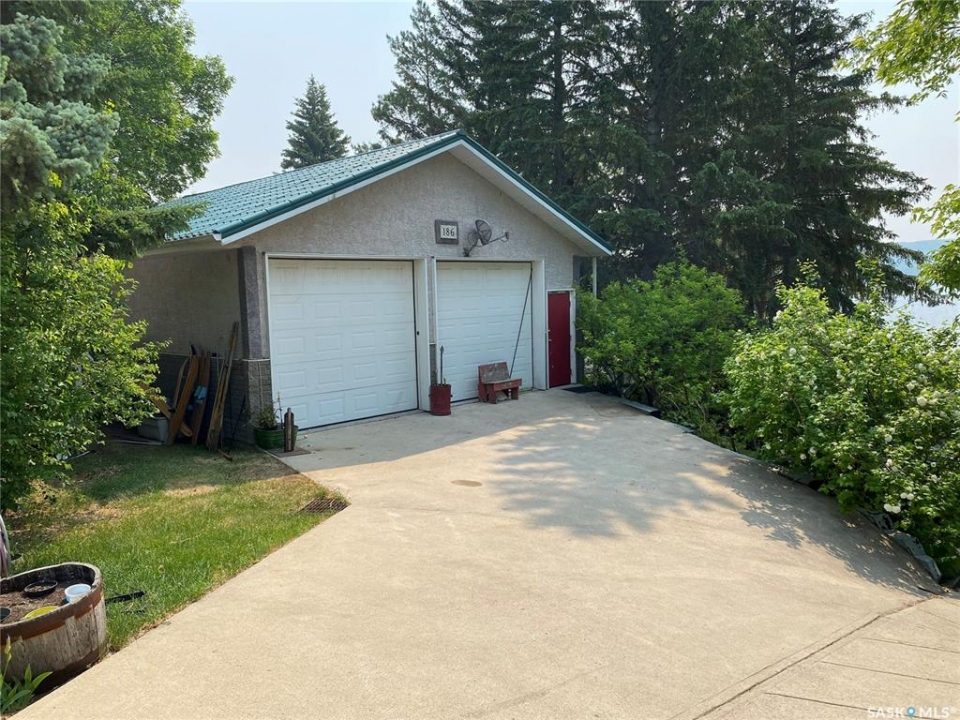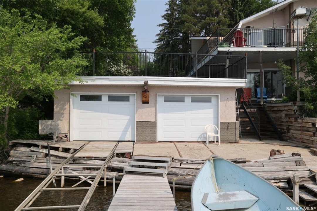 Welcome to 186 Pasqua Lake Road, a meticulously maintained and well-loved year-round waterfront retreat nestled in the heart of the Qu'Appelle Valley. Just 45 minutes from Regina, this stunning walkout bungalow offers the ideal blend of comfort, privacy, and sweeping lake views. Situated on a pie-shaped lot with 82 feet of prime lakefront, the property features over 2,400 sq ft of finished living space, including 2 bathrooms and 4 bedrooms—2 on the main floor and 2 more, plus a den, in the fully developed walkout basement. A gas fireplace on the main level creates a warm, welcoming atmosphere, while the lower level offers a wood-burning fireplace and direct access to the lakefront. Outdoor amenities are exceptional: a 25' x 25' boathouse with aluminum track and dock system, a full yard irrigation system, and a heated, insulated 26' x 32' garage/shop with in-floor radiant heat and 10-foot double overhead doors—ideal for storing boats, vehicles, and gear. Ample parking ensures there's always room for guests and gatherings. Additional highlights include a natural gas forced air furnace, 200 amp electrical service, and a private septic system. Water is supplied by a private well and filtered through a reverse osmosis (RO) system, delivering clean, fresh water throughout the home. Shingles on the house redone March 2026, photos will be updated soon to reflect. Whether you're seeking a full-time residence or a lakeside escape, 186 Pasqua Lake Road is a rare opportunity to own a thoughtfully developed property in one of Saskatchewan's most desirable waterfront locations.