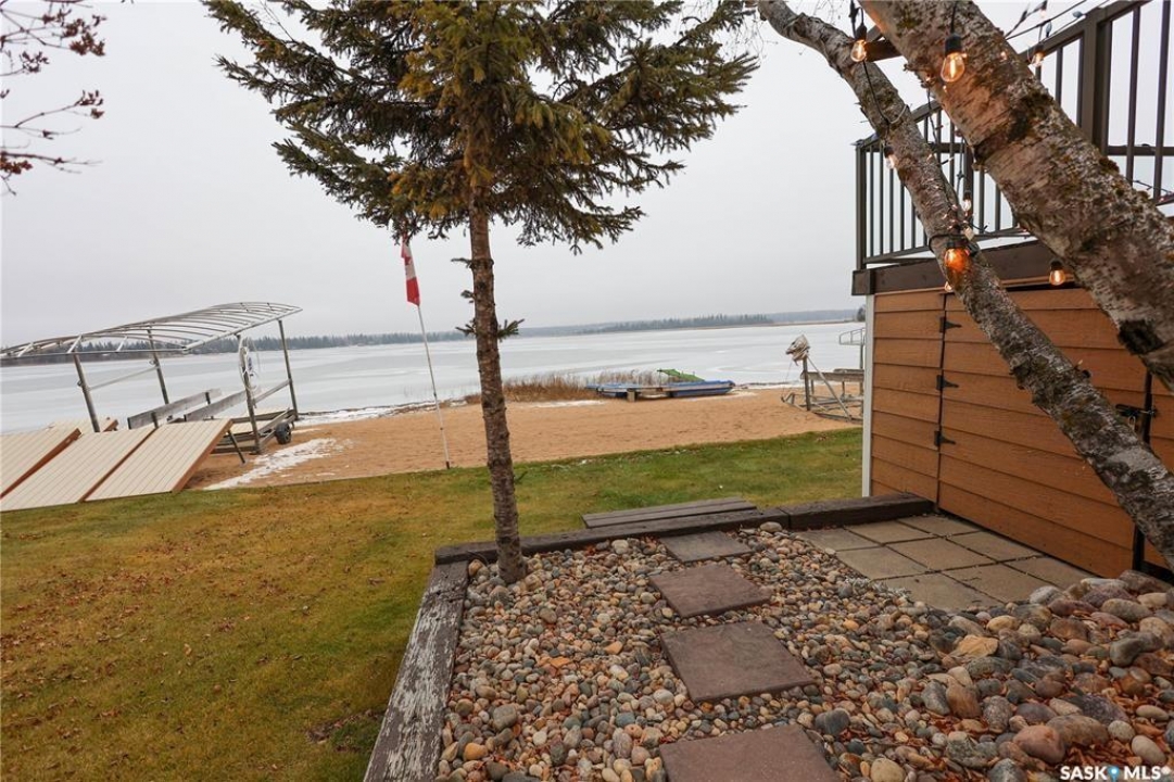 Are you searching for a 4-season, turn key, lake front property on Emma Lake? If so, check out this amazing 3+ bedroom, 2 bathroom, 1,856 Sqft Bungalow on Neis Drive! This updated home boasts a beautiful open concept kitchen featuring a custom hickory cabinetry, gas range, built in Wall oven and microwave, and massive center island with breakfast bar seating. The kitchen is also open to both the dining and living rooms, which include an abundance of natural light with generous sized , west facing windows overlooking the lake, vaulted ceilings and a gas fireplace to keep things cozy no matter what they weather is like. Off the main living area is a beautiful updated 3 piece bathroom featuring an updated vanity, lighting and painted tongue and groove pine for a contemporary look. The master bedrooms is large and luxurious featuring separate his and hers walk in closets, vaulted ceilings, an electric fireplace and beautiful 4 piece bathroom with custom hickory vanity.2 additional bedrooms, large laundry room, and a storage room complete the main level. Stepping onto the wraparound deck you can embrace the beautiful sunset views and truly enjoy the lake life. On ground level, the yard is beautifully landscaped with custom made steps down the water level, garden boxes, and short strip of grass knocks down the sand from swimming and playing on your own private beach. The water front is open and inviting allowing you enjoy the water on hot summer days and room for a dock and boat lift, and also provides lake access for winter activities such as cross country skiing, snowmobiling, ice fishing and your very own lake skating rink! Other notable features include a large enclosed storage area under deck, concrete driveway, central A/C, and a large, heated 22 x 26 two car garage to keep all your toys and belongings safe and warm. Don't miss out on the chance of a lifetime to truly immerse yourself in the paradise of lakefront living. Give your Realtor a call today!
