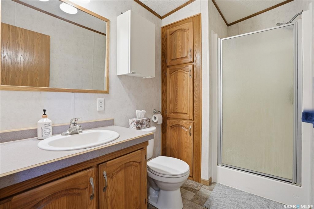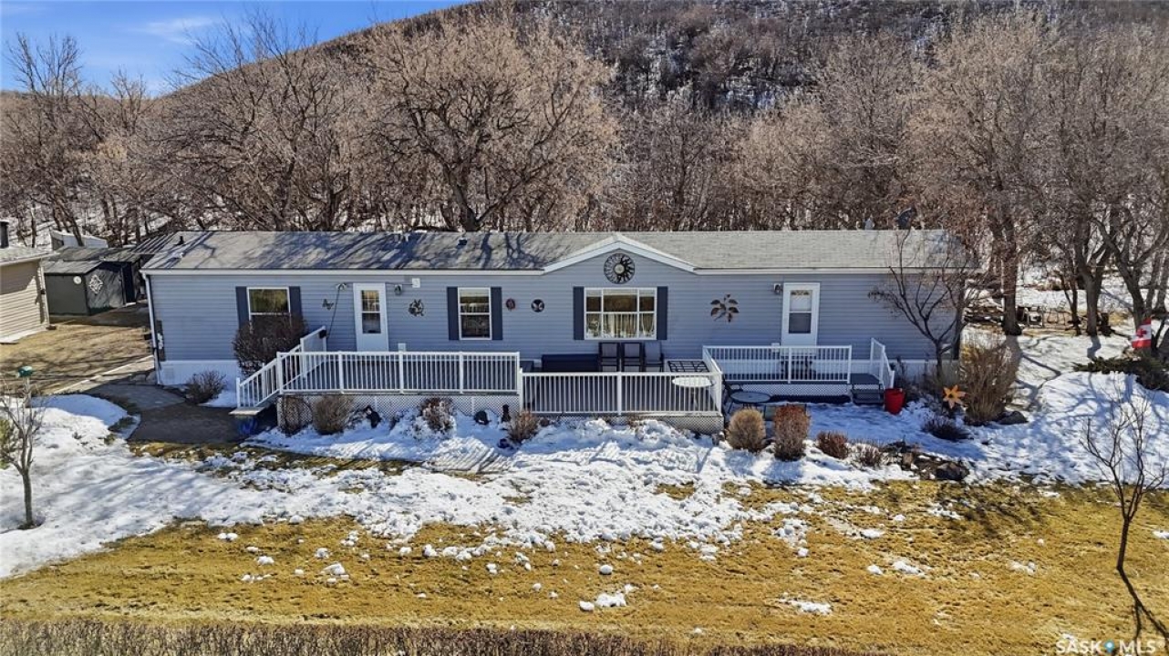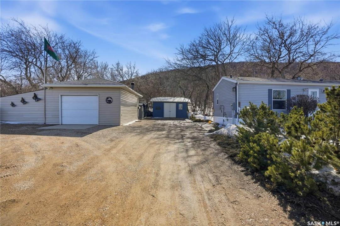 Stunning valley views, wide open spaces, fresh air, and highly desirable Katepwa Lake only a short drive away - Welcome to the Catherine Road acreage! Situated on 2.5 acres of flat land and hillside, this lovingly maintained lake property can be your dream home or weekend escape. Pride of ownership is evident everywhere, in this 1216 sq foot, 2008 built mobile home. It features a beautiful and spacious open concept design with vaulted ceilings, and a huge deck off the front for those morning coffees to watch the sunrise. The private master bedroom boasts a true walk-in closet and an ensuite with large jetted tub. The remaining 2 bedrooms (one without a closet) and 2nd bathroom are situated on their own side of the home, providing room for the whole family or weekend guests. But as beautiful as the home is, the star of the property is the massive, park-like yard, featuring a rear covered deck for BBQing, mature landscaping of flower beds, trees and shrubs, a garden area, and of course a generous firepit area for making smores and memories around the fire. An oversize single detached insulated garage for the car, or for the handyman, crafter, etc. There is NO shortage of storage, with the 4 sheds. Maybe turn one into a man cave or a she-shed- you decide! All of this and there is STILL tons of room to add a workshop or oversize garage. The Trans Canada Trail runs nearby to walk, run or quad, taking you from here to along the majority of the east side of Katewpa Lake, passing by the provincial park with it's 2 golf courses, restaurants, hotel, ice cream and burger takeout, boat launch, swimming area, and library. The full service town of Indian Head, with groceries, liquor, restaurants, school and hospital are merely 15 mins away. From a short drive to Katepwa Lake, room to spread out, gorgeous views and more, this acreage has something for everyone. Come view it today and see why Life is Better at the Lake!