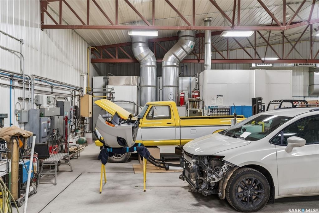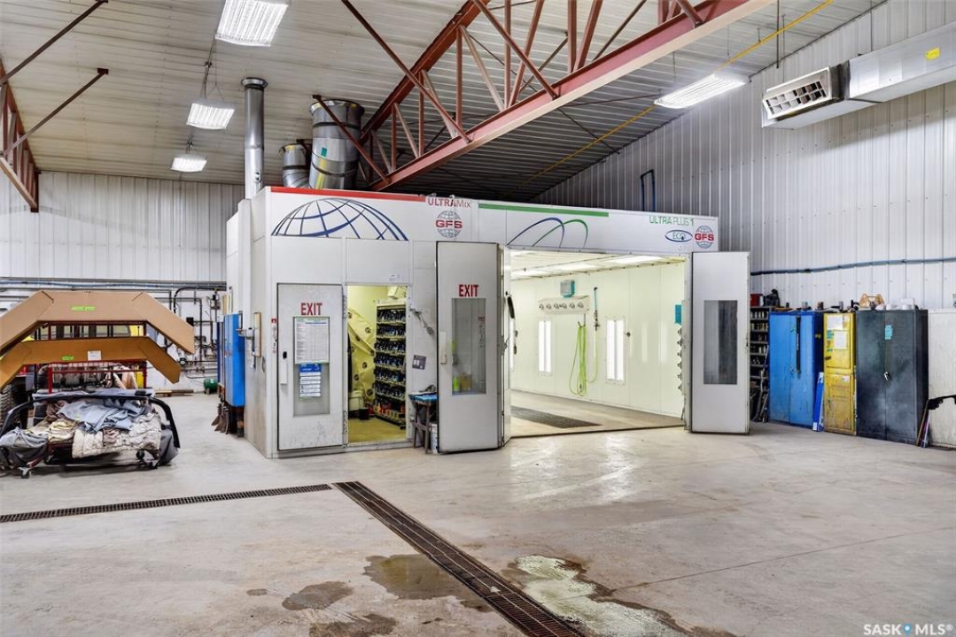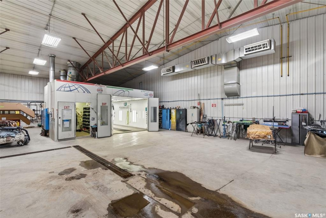 “Check out the Video and Photos of this Modern 7,000 Sq. Ft. Auto Body Facility (Built 2014) with Three-Phase Power & Paint Booth Included.” Turnkey opportunity to own a well-established and highly respected business—"Lanigan Auto Palace", a father-and-son operated auto body repair shop proudly serving the community for over 40 years. This modern, state-of-the-art facility was constructed in 2014 and offers approximately 7,000 sq. ft. (100' x 70') of steel-frame construction designed for efficiency and long-term durability. The building features in-floor heat, three-phase power, two 12-ft overhead doors, plus an additional overhead receiving door for smooth workflow and vehicle movement. Inside, you'll find a professional reception area, multiple offices, and a dedicated staff/lunch room, providing a comfortable and functional workspace. The shop is fully equipped and includes a Global Finishing Solutions Ultra Plus Paint Booth, making this a true turnkey operation for continued success. A 20' x 60' mezzanine adds valuable storage space, while the wash bay connected to town sewer enhances daily operations and efficiency. The property sits on approximately 1 acre of land with 250 feet of frontage, offering excellent accessibility and room for expansion or additional uses. Additional outbuildings provide further storage, including the original shop building and a detached garage, giving flexibility for parts storage, overflow work, or rental potential. A Clean Phase 2 Environmental Report is available, offering peace of mind to buyers. Sellers are open to multiple options and would consider selling the building only, creating an excellent opportunity for investors or operators looking to establish or expand their automotive or light industrial business in the growing community of Lanigan. Call today for more information!