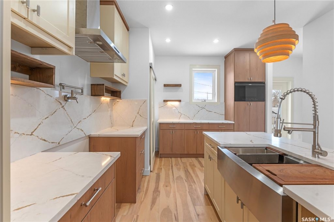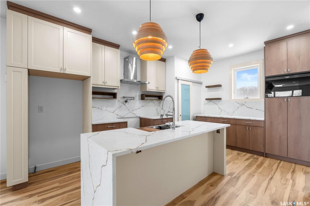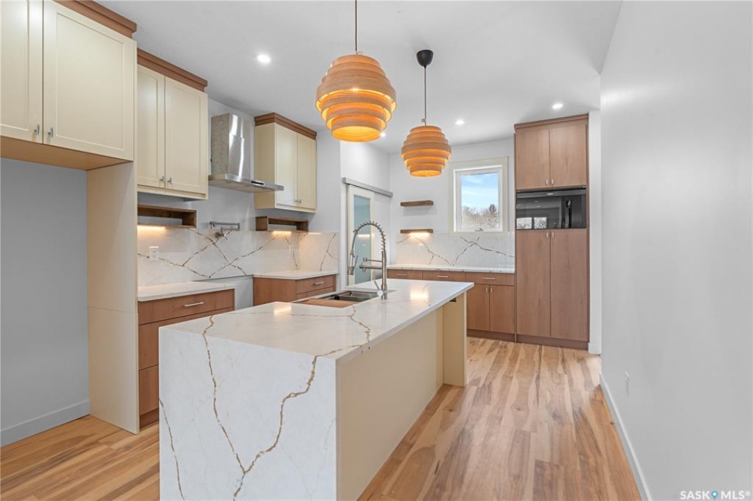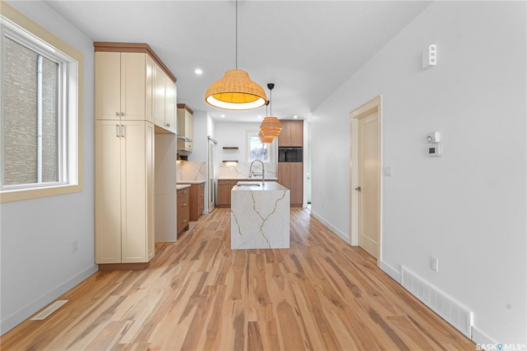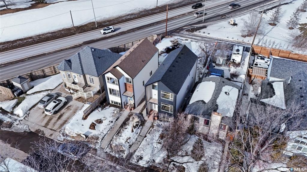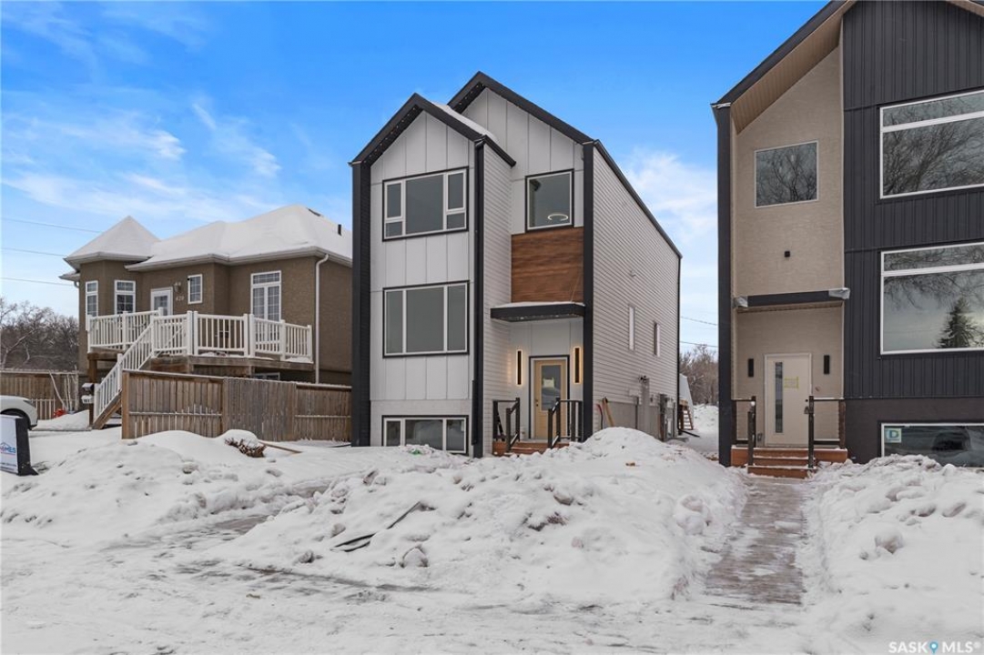 Modern Infill in North Park – Legal Suite & Prime Location! Welcome to 424 Empress Street—a beautifully designed new infill in the heart of North Park, one of Saskatoon's most desirable walkable neighborhoods. This 2-storey home offers over 1600 sqft of thoughtfully planned living space. The exterior showcases a bold modern design featuring durable Hardie board siding, sleek metal cladding, and clean architectural lines that stand out on this quiet street. Inside, you're greeted with an open-concept main floor that boasts 9' ceilings, a cozy fireplace, spacious living and dining areas, and a stunning kitchen with full-height cabinets, pantry, and dedicated office space. Flooded with natural light from oversized windows throughout, this home feels bright, airy, and inviting in every season. Upstairs on the 2nd floor, you'll find 3 bedrooms including a vaulted-ceiling primary suite with walk-in closet and ensuite, plus a full bath and convenient laundry. The fully finished basement features a legal 2-bedroom suite with its own entrance, kitchen, laundry, and living area—perfect for rental income or extended family. Located just minutes from the river, Meewasin Trail, and downtown with no neighbour at the back. Don't miss this opportunity to own a stylish, income-generating home in a mature, central neighborhood. Contact your favourite REALTOR � for more details!