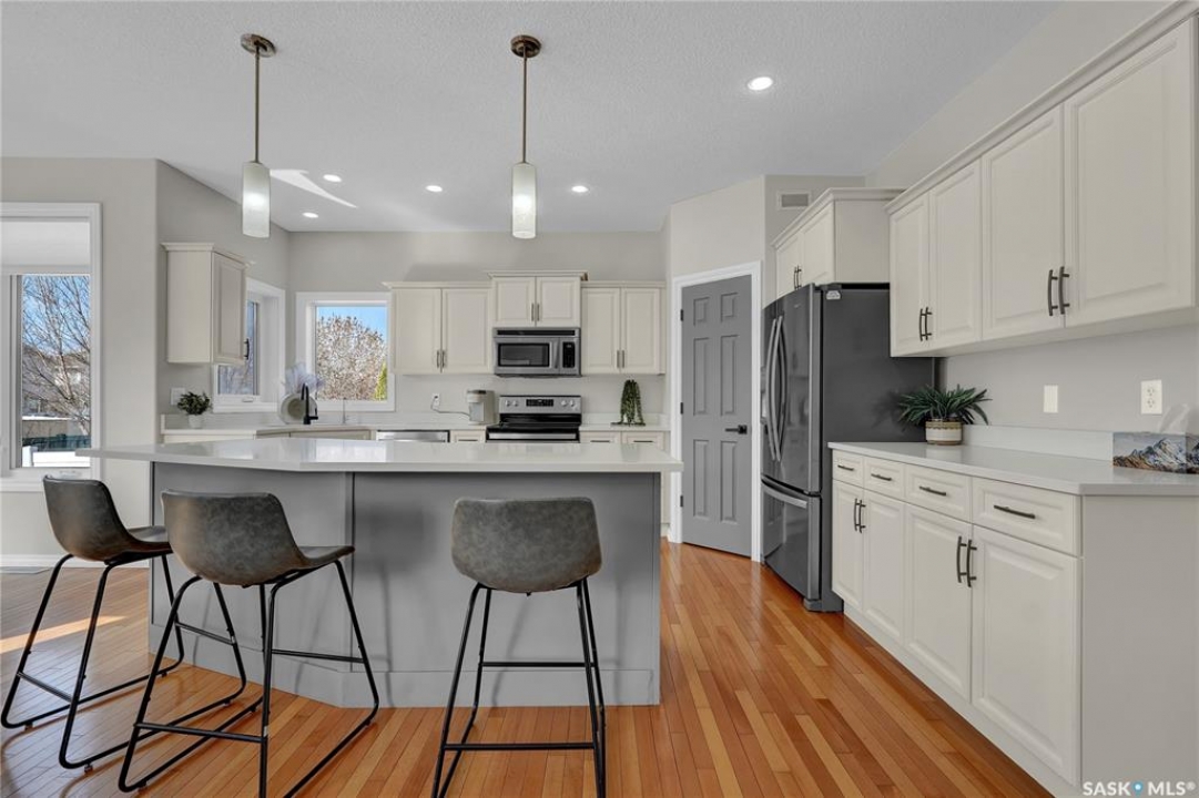 Excellently maintained home in sought-after Windsor Park offering a bright, open-concept layout and exceptional family living. A spacious front foyer welcomes you into the oversized great room, highlighted by rich hardwood flooring and a cozy gas fireplace. The stunning kitchen features an abundance of cabinetry, HW floors, quartz countertops, a large centre island, and stainless-steel appliances—perfect for both everyday living and entertaining. The family-sized eating area overlooks the deck and beautifully landscaped backyard. A main floor den/office with hardwood flooring provides a great workspace, while a convenient laundry room and separate half bath complete the level. Upstairs, you'll find three generously sized bedrooms with new carpets and a full bathroom. The primary suite includes a walk-in closet and a luxurious ensuite with a large soaker tub and separate walk-in shower with rain head. New carpets on staircase to upper floor. The fully developed basement adds even more living space with a spacious rec room, two additional bedrooms, and a � bathroom—ideal for guests or a growing family. The nicely landscaped yard completes this fantastic property. A truly wonderful place to call home!