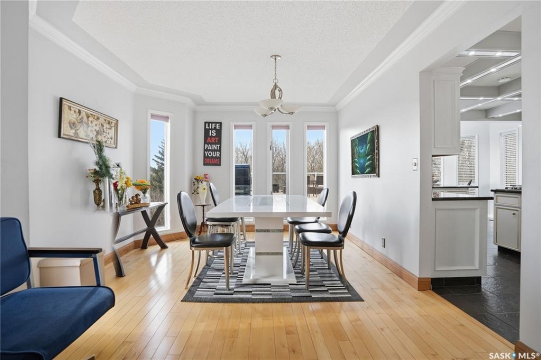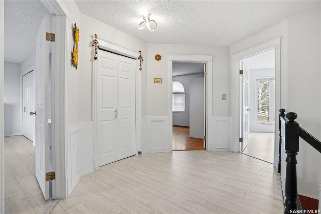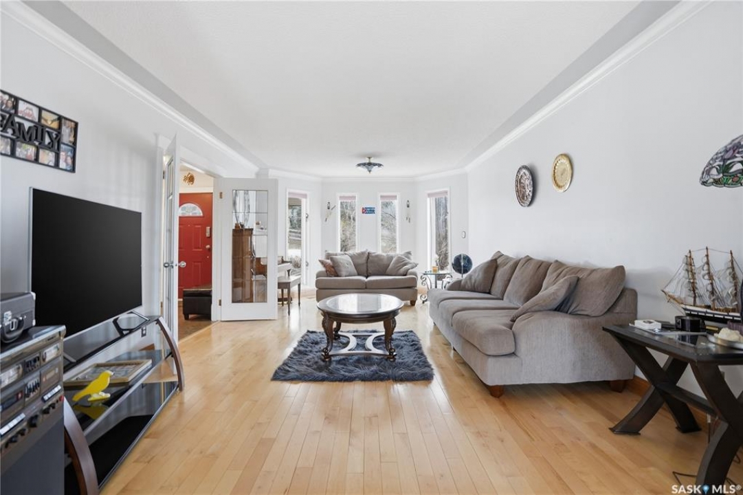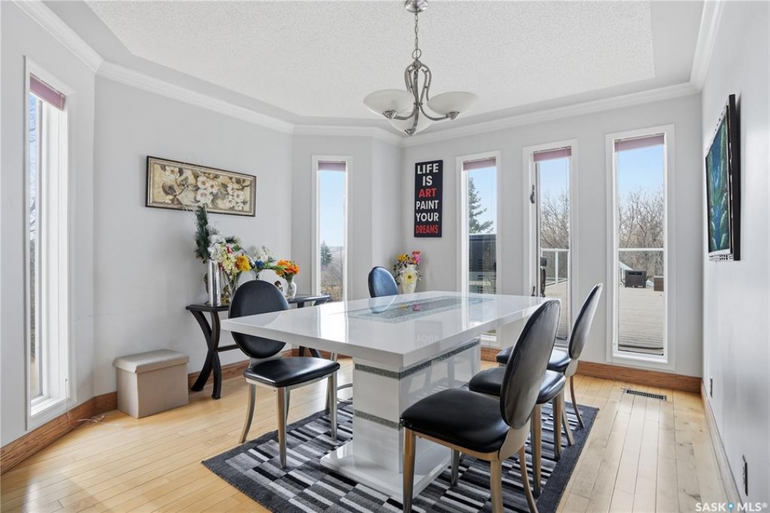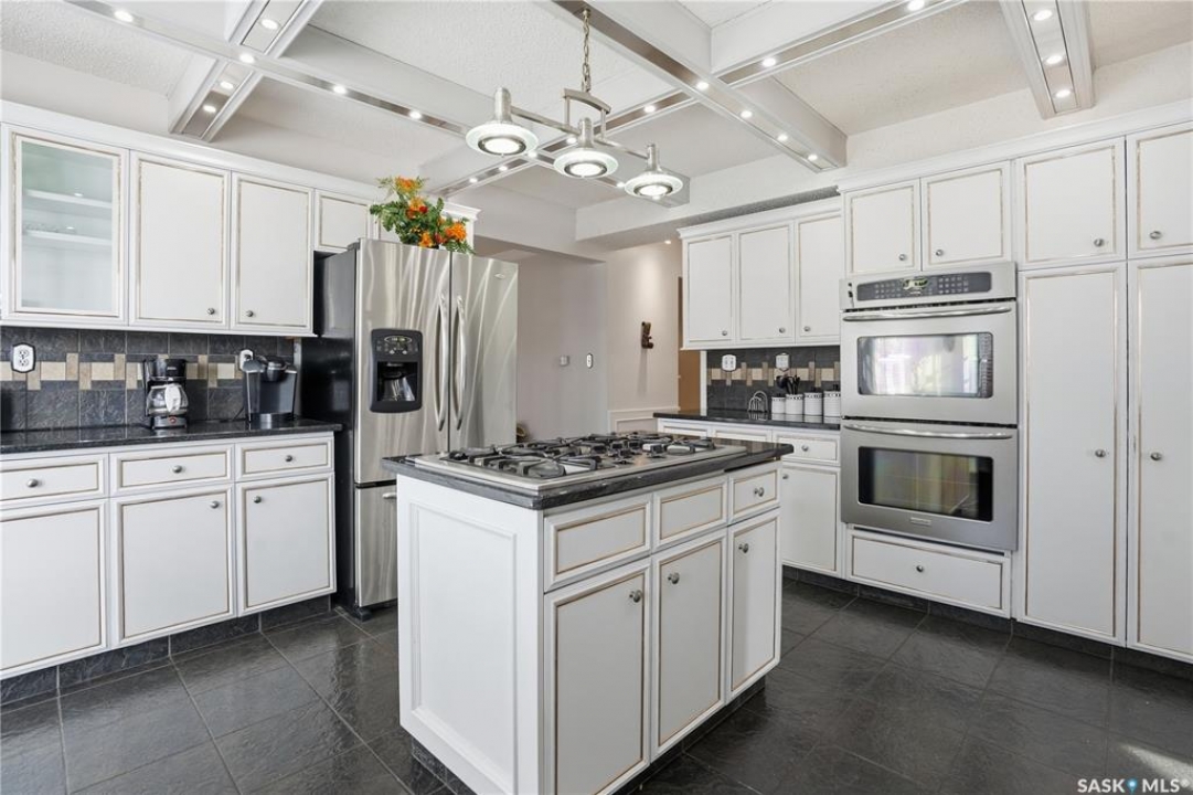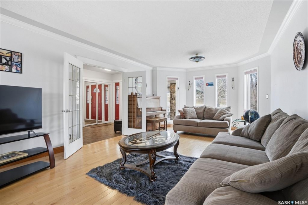 Explore this spacious executive home, offering over 3,900 sq. ft. of finished living space, including a walkout basement. This property features 5+2 bedrooms, a bonus office on the main floor, and a den with custom-made closets in the basement, along with 4 bathrooms. Set in the serene hills of Lumsden, this home offers charming landscaping and the promise of resort-style living. Although recent renovations have updated several areas of the upper floors, the home presents opportunities for personal touches and further enhancements. Located on a corner lot in a sought-after hillside area, this villa is conveniently situated just minutes from Regina Beach and other nearby beaches. The main floor features a welcoming foyer with a curved staircase, nine-foot ceilings, and a functional kitchen that opens to a sunlit dining area, enhanced by three skylights and wraparound windows. The expansive living room provides lovely sunset views, while the adjacent family room with a fireplace offers a cozy retreat. Patio doors lead to multiple seating areas and a large deck overlooking the valley—a great space for outdoor gatherings. Upstairs, the primary suite provides a 5-piece ensuite and a walk-in closet, along with a sitting area that captures scenic views of the Lumsden hills. The finished walkout basement adds valuable extra living space, including a wet bar large storage room with built in cabinets, 3pc bath and direct entry to over sized double garage. This home has tons of outdoor living space making it truly appealing!