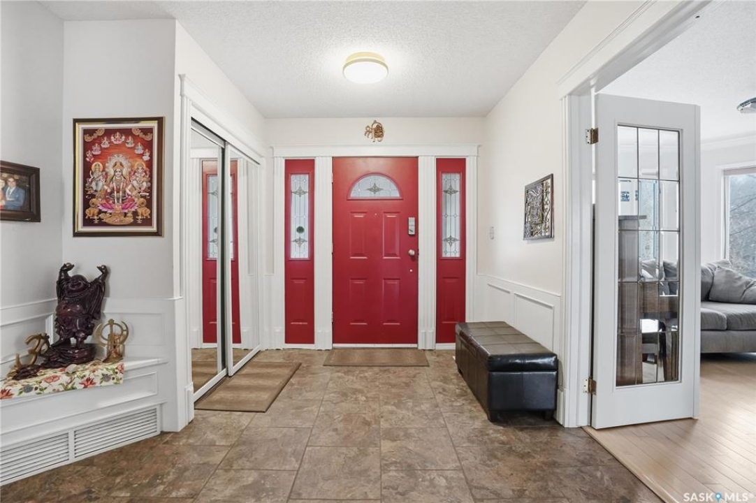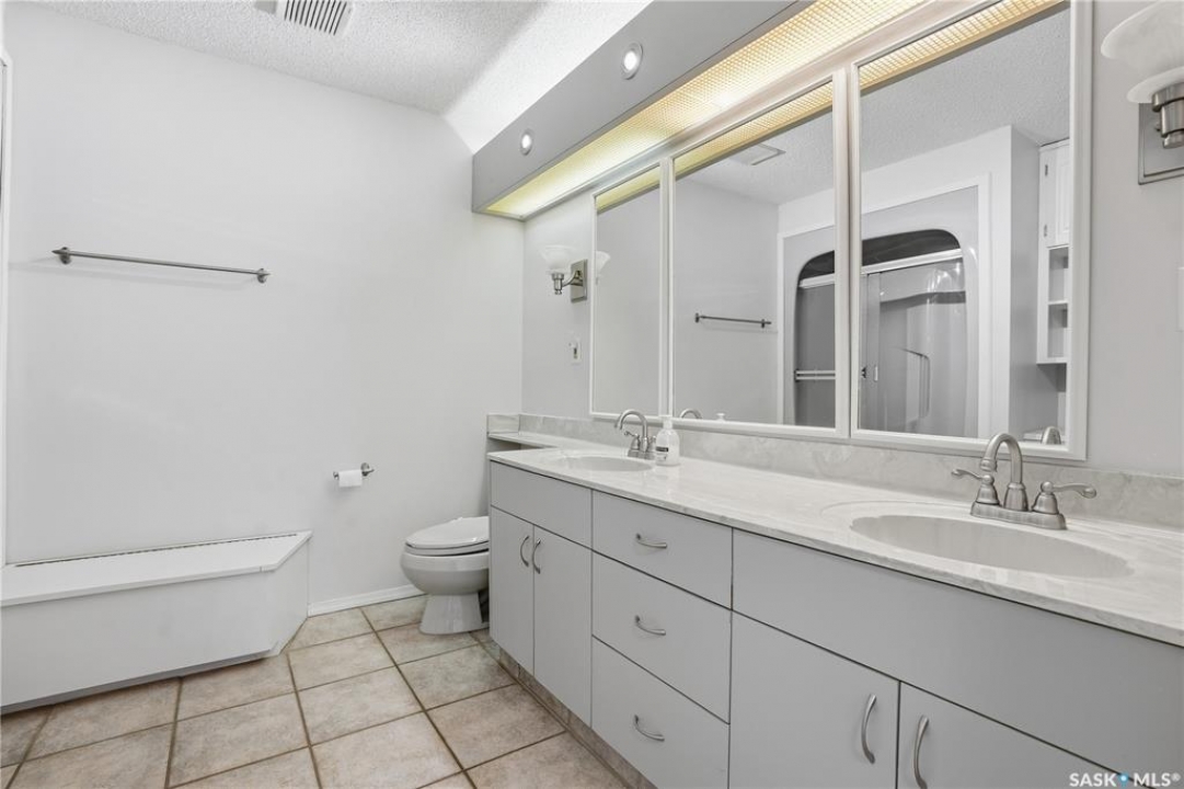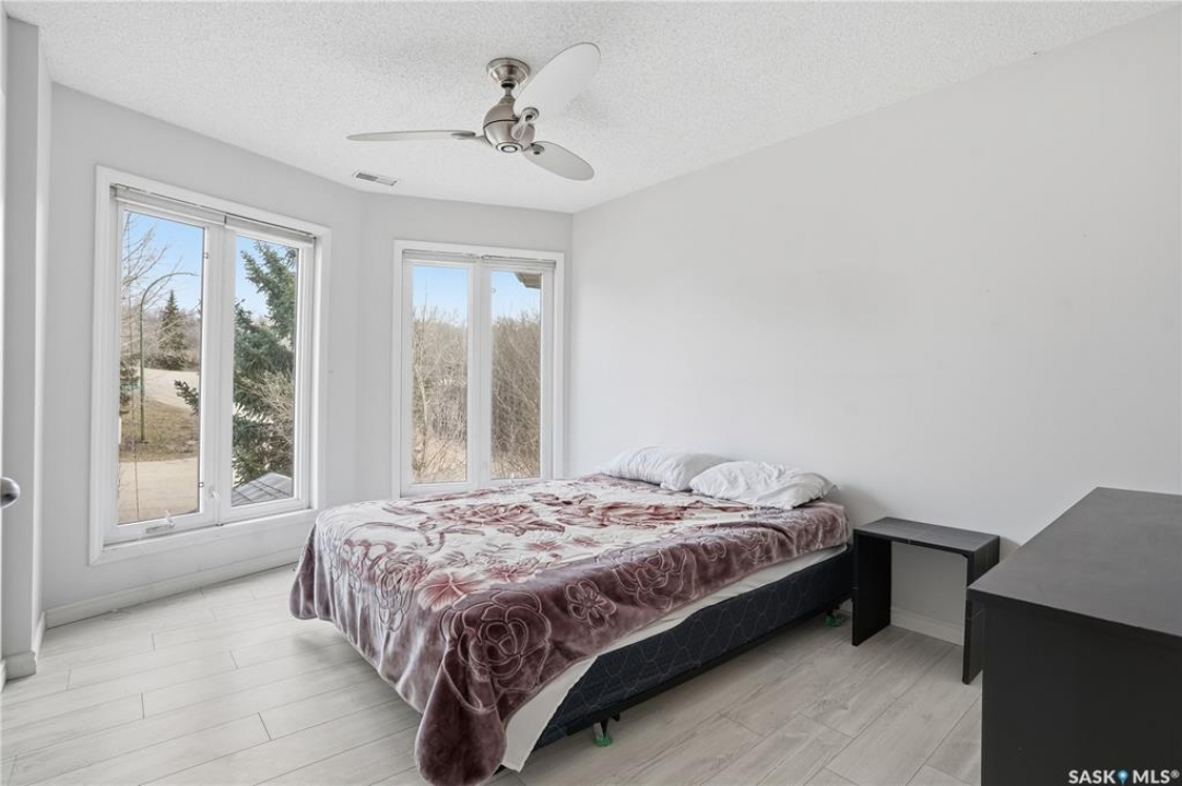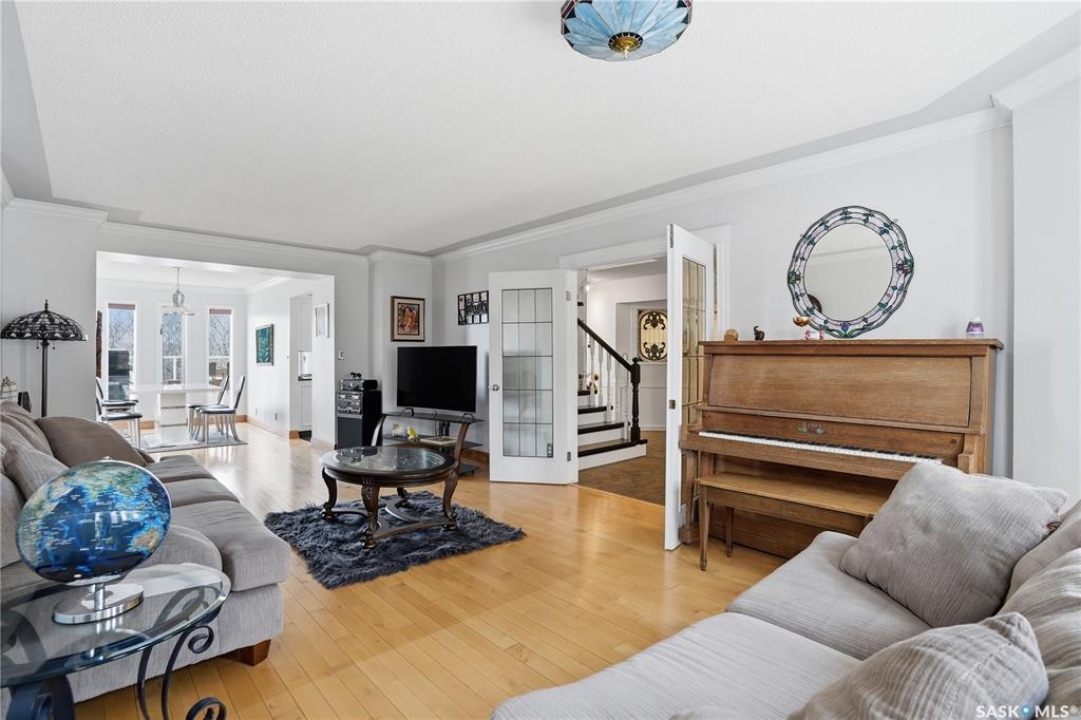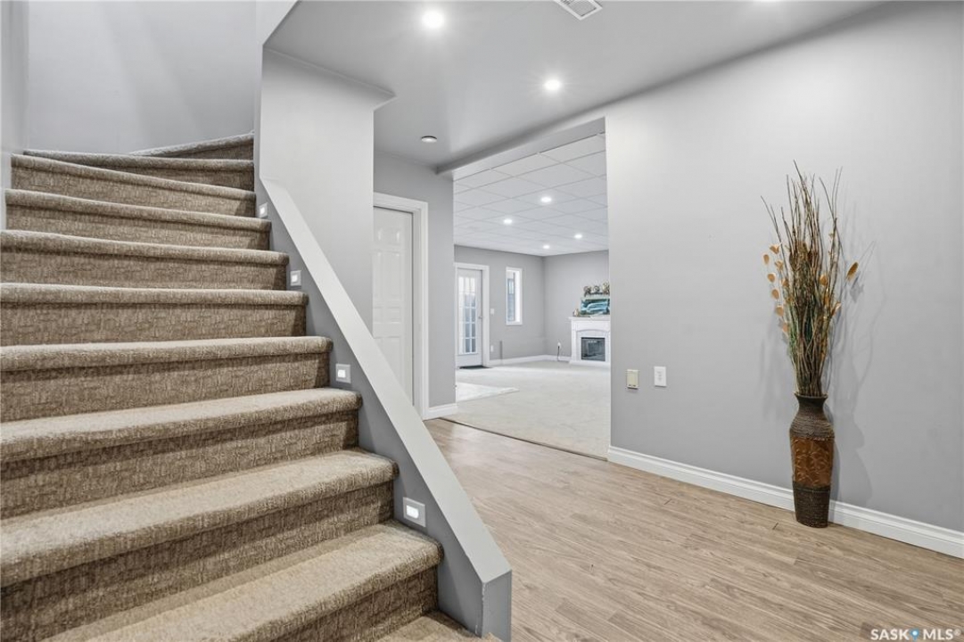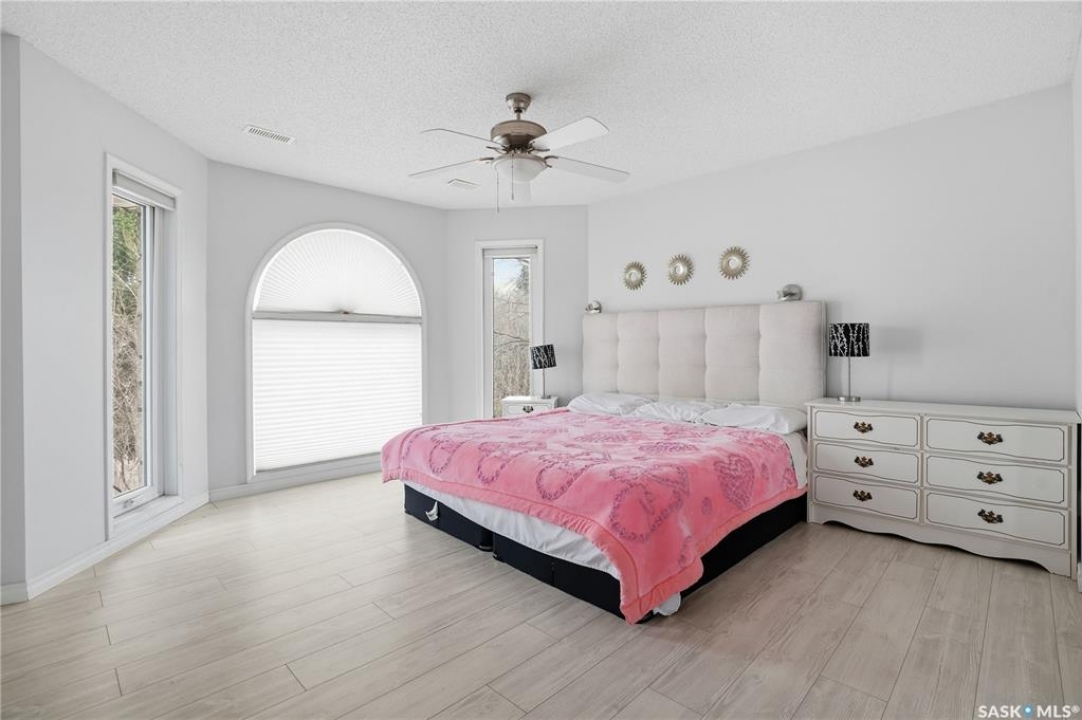 Explore this spacious executive home, offering over 3,900 sq. ft. of finished living space, including a walkout basement. This property features 5+2 bedrooms, a bonus office on the main floor, and a den with custom-made closets in the basement, along with 4 bathrooms. Set in the serene hills of Lumsden, this home offers charming landscaping and the promise of resort-style living. Although recent renovations have updated several areas of the upper floors, the home presents opportunities for personal touches and further enhancements. Located on a corner lot in a sought-after hillside area, this villa is conveniently situated just minutes from Regina Beach and other nearby beaches. The main floor features a welcoming foyer with a curved staircase, nine-foot ceilings, and a functional kitchen that opens to a sunlit dining area, enhanced by three skylights and wraparound windows. The expansive living room provides lovely sunset views, while the adjacent family room with a fireplace offers a cozy retreat. Patio doors lead to multiple seating areas and a large deck overlooking the valley—a great space for outdoor gatherings. Upstairs, the primary suite provides a 5-piece ensuite and a walk-in closet, along with a sitting area that captures scenic views of the Lumsden hills. The finished walkout basement adds valuable extra living space, including a wet bar large storage room with built in cabinets, 3pc bath and direct entry to over sized double garage. This home has tons of outdoor living space making it truly appealing!