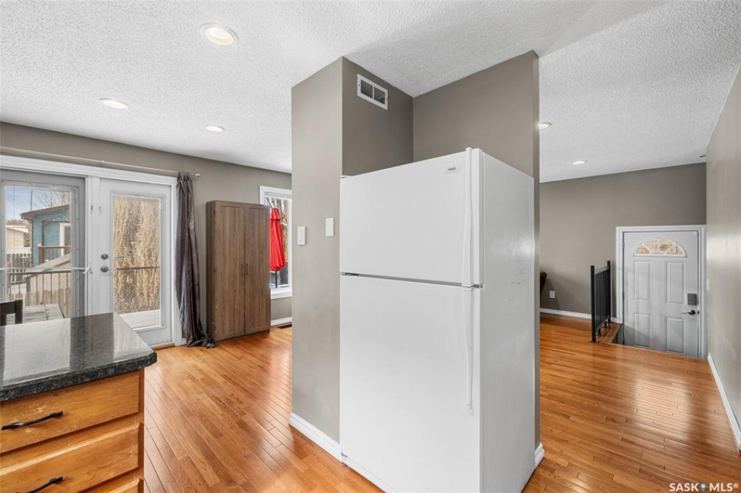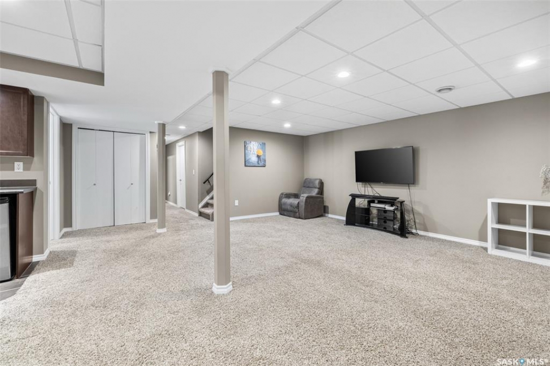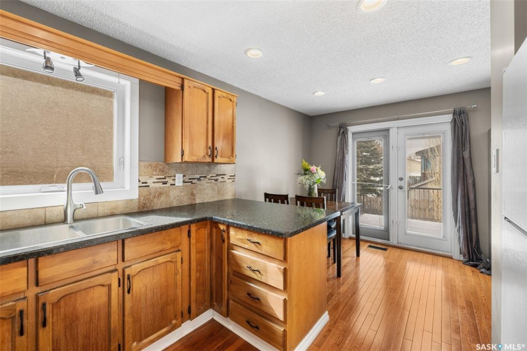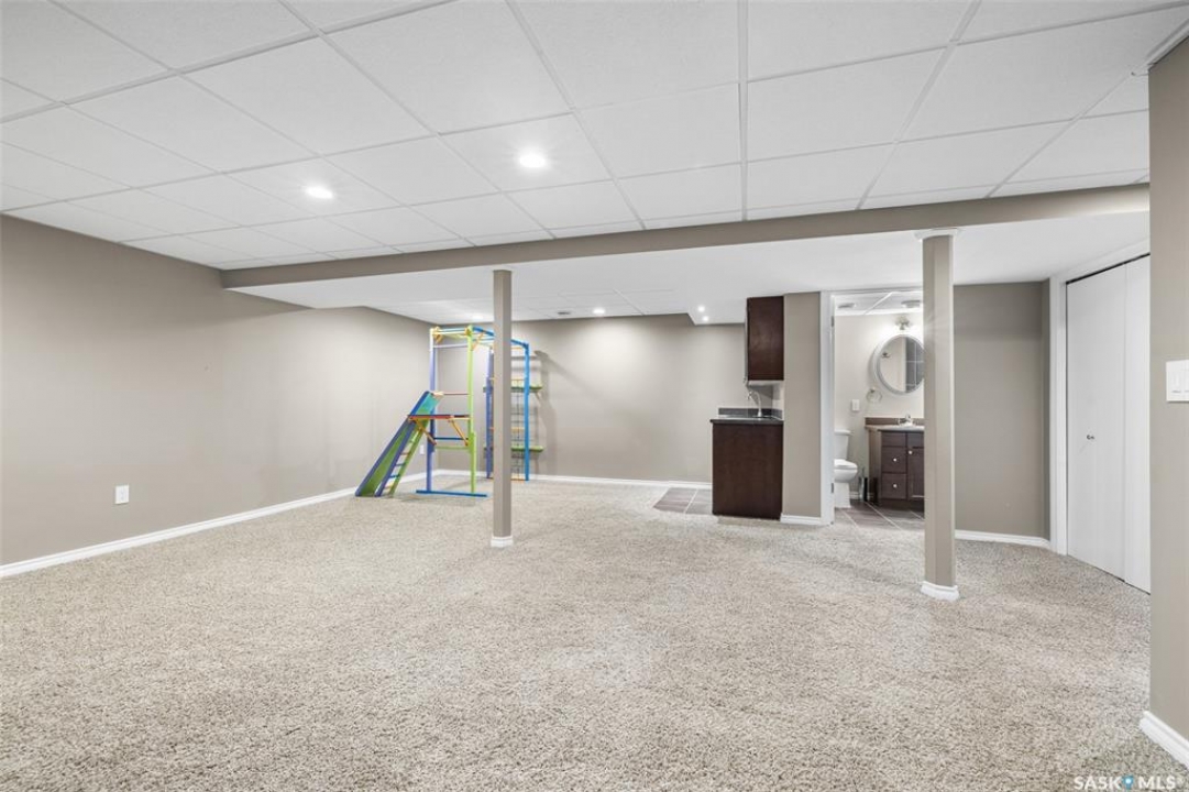 Welcome to 918 East Bay—tucked away on a quiet bay in Regina's east end, offering a great balance of comfort, updates, and location. Walking distance to parks, schools, and amenities, this is a home designed for everyday convenience. Inside, this 4-bedroom, 3-bathroom home features hardwood flooring throughout the main level, upgraded windows, and a bright, functional layout. The kitchen has been updated with modern countertops, backsplash, and sink, and opens into the living space enhanced by added downlighting. The main floor includes three bedrooms, including a primary suite with a private 2-piece ensuite, plus a full bathroom. Downstairs, the fully finished basement offers a fourth bedroom, additional living space, and a dedicated bar area—perfect for relaxing, entertaining, or a kids' zone. A basement play structure is included if desired. Key updates include shingles, siding, and stone exterior (2016), high-efficiency furnace (2018), water heater (2020, rented), and a series of appliance and lighting updates through to 2026. The exterior features a large deck, underground sprinklers, and a generous driveway with parking for four vehicles and space for a future garage.