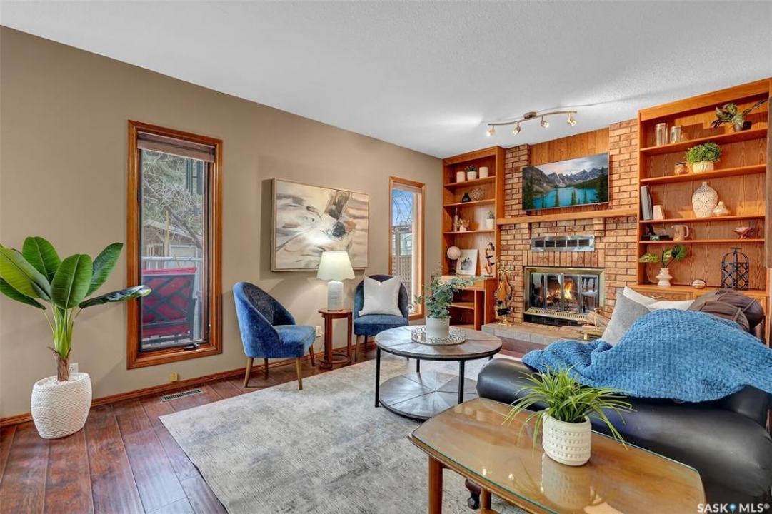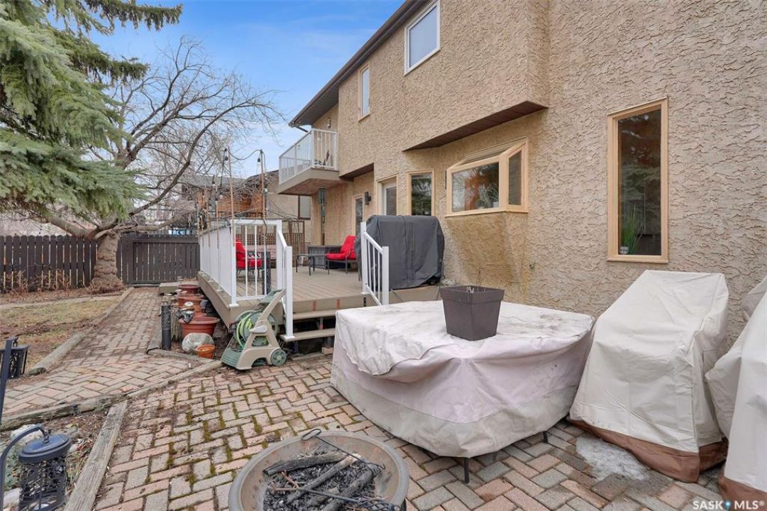 Built by Fiorante Homes, situated in the desirable Lakewood neighbourhood on a quiet bay, this impressive 1,816 sqft 2 storey home offers excellent street appeal and a functional layout. Upon entering, you're welcomed by a spacious foyer that opens into a formal living room featuring 13-foot ceilings and a large bay window overlooking the bay. The adjacent dining room is ideal for entertaining. The kitchen offers oak cabinetry and bay window to the back yard. There is an everyday eating area with direct access to a maintenance-free deck with aluminum railing. The fully fenced backyard features mature trees and a storage shed. Off the dining area, the sunken family room boasts 9 foot ceilings, a wood burning fireplace with brick façade and wood mantel, with built-in oak cabinetry. The main floor is completed with a laundry room with utility sink and a convenient two-piece bath. Upstairs features three bedrooms, including a spacious primary suite with a renovated four piece ensuite with custom tile surround. The primary bedroom also includes a private balcony with aluminum railing and Trex decking overlooking the backyard. A renovated four-piece main bathroom includes granite countertops, undermount sink, and tiled tub surround. The additional bedrooms are a good size and feature upgraded triple-pane windows. An open view from the upper level overlooks the living room below. The basement is fully developed with new carpet (March 2026), a recreation room with dry bar, a four-piece bathroom, and a large utility room for storage. Additional highlights include a double attached insulated garage and a mature yard.
