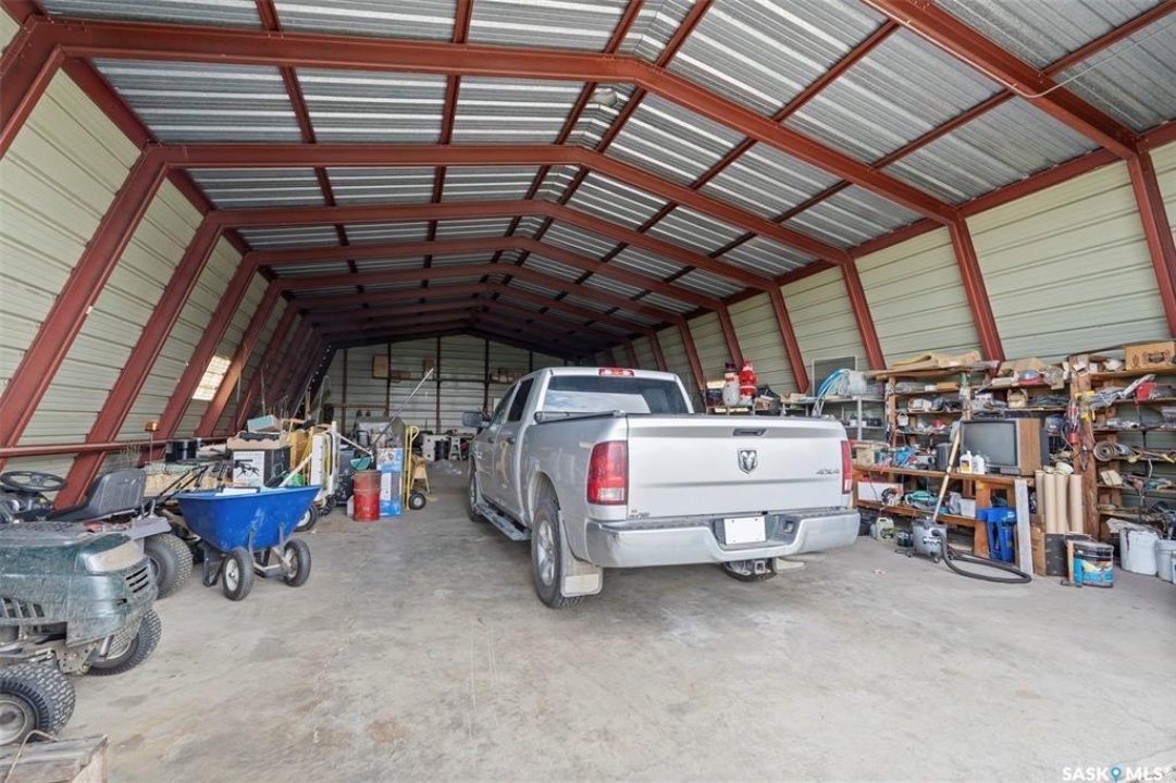 Discover 55.92 acres of opportunity on pavement just minutes from Saskatoon. This well-located property offers an excellent setup for a hobby farm, ideally suited for small livestock such as sheep or goats, with fenced and cross-fenced pasture and watering bowls already in place. The yard site is well-equipped with a massive 40' x 66' Quonset with concrete floor, multiple outbuildings, and established shelters to support a variety of agricultural uses. Functional and versatile, it's ready to accommodate your operation from day one. The solid 1,617 sq ft bungalow, built in 1973, offers generous living space and has seen key updates including siding, windows, and roof providing added efficiency and curb appeal. Nestled among mature trees with expansive prairie views, it's a comfortable and inviting place to call home. With pavement right to the driveway and close proximity to city amenities, this property delivers the perfect balance of rural living and convenience. A rare opportunity to own a well-appointed acreage in a highly desirable location.