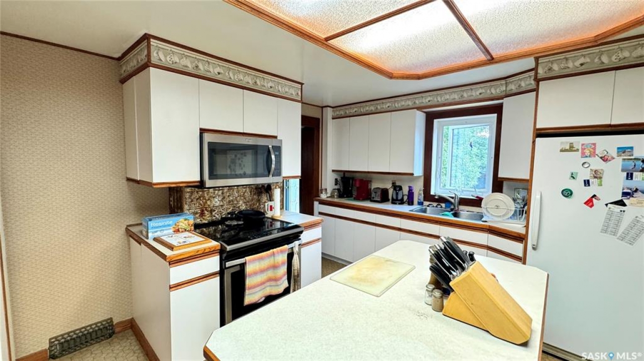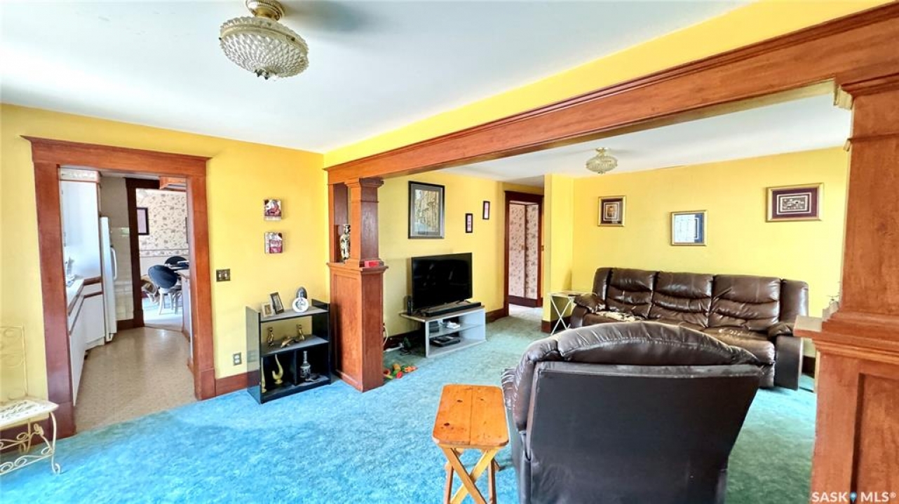 106 2ND ST EAST, DINSMORE, SK Discover the perfect blend of CHARACTER and MODERN CONVENIENCE in this charming 1910 home, thoughtfully expanded with a 1983 addition. Offering over 2,200 SQ FT, this spacious property features 5+ BEDROOMS and 4 BATHROOMS, including a PRIMARY BEDROOM with ENSUITE, plus the convenience of MAIN FLOOR LAUNDRY. A versatile main floor den provides the option for a 6TH BEDROOM or HOME OFFICE. The LIVING ROOM and DEN are currently being updated with NEW VINYL PLANK FLOORING, adding a fresh, modern touch. Updated photos will be available soon. The FINISHED BASEMENT adds even more living space with a FAMILY ROOM, ADDITIONAL BEDROOM, 3-PIECE BATH, WORKSHOP, and LARGE UTILITY ROOM. Inside, you'll appreciate the ORIGINAL HARDWOOD TRIM, preserving the home's timeless appeal, paired with updated flooring in key areas. Patio doors lead to a spacious deck, ideal for relaxing or entertaining, while SOLAR PANELS enhance energy efficiency with approx 6 months remaining on payments. Utility costs are economical, approximately $2,300/year SaskPower, $800/year SaskEnergy, and $110/month for water, sewer, and garbage. Key updates over the past 15 years include a HOT WATER BOILER, SELECT WINDOWS and DOORS, and SHINGLES (2016). Sewer lines have been maintained, with roto-rootering completed and most clay lines replaced from the house to the street. Situated on a large 162 x 130 LOT, this property features MATURE LANDSCAPING, PERENNIAL GARDENS, SPRUCE TREES, STONE PATHWAYS, and VIBRANT FLOWER BEDS. A SINGLE DETACHED GARAGE adds additional functionality. This DINSMORE, SK HOME FOR SALE offers a rare combination of SPACE, CHARACTER, UPDATES, and ENERGY EFFICIENCY, making it a truly inviting place to call home.