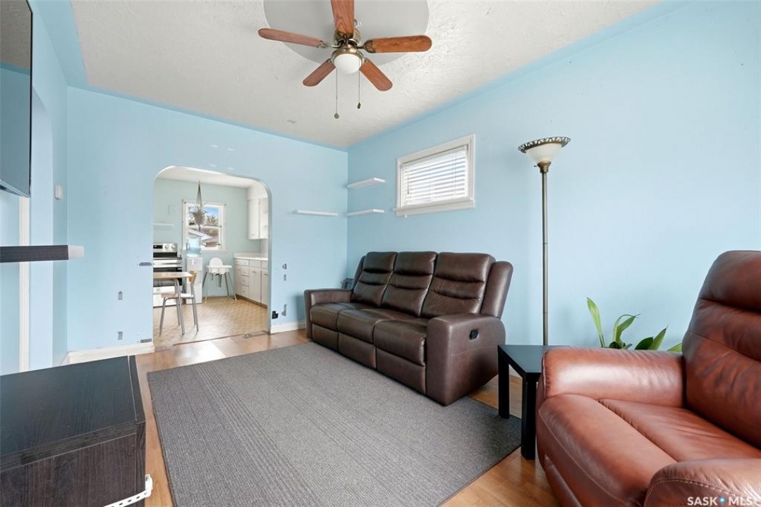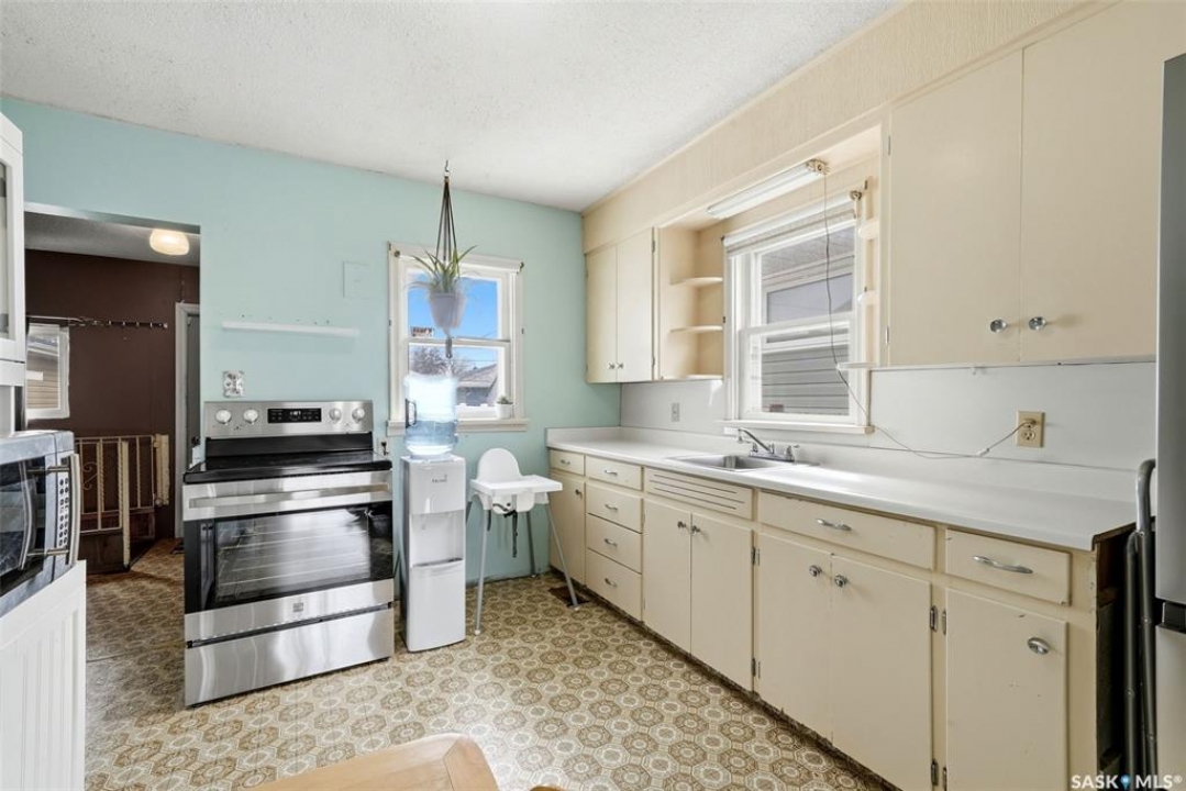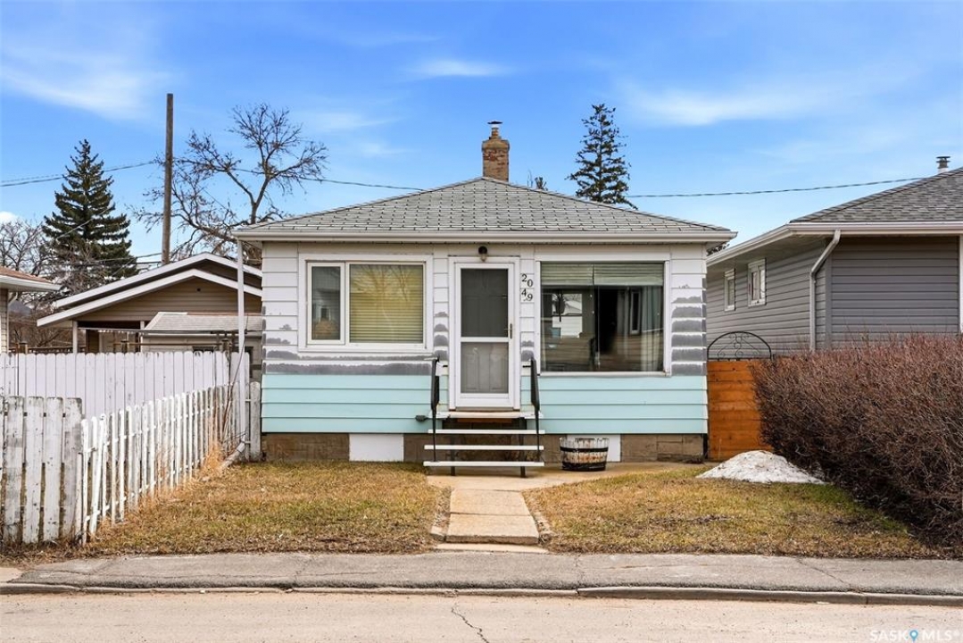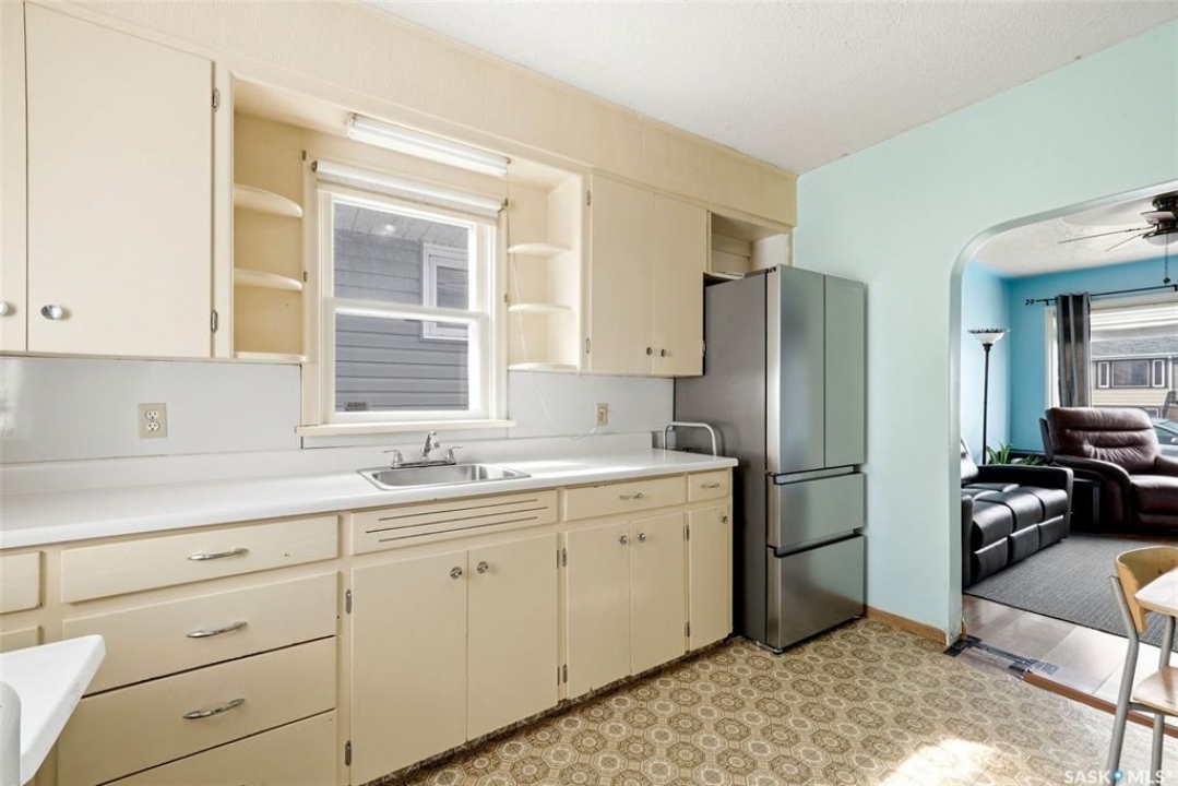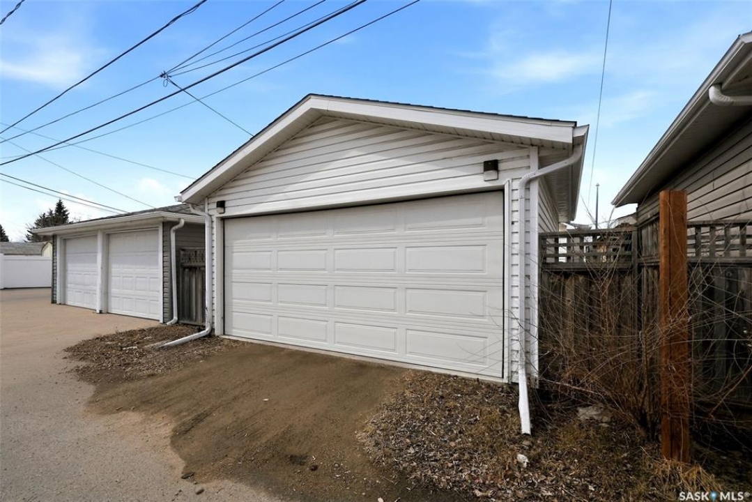 Sun-filled home in a highly convenient location! Just minutes from downtown, east-end amenities, schools, hospital, and Wascana Park, this property is a fantastic opportunity for first-time buyers, downsizers, or investors looking to upgrade and generate rental income. The main floor features a bright, open living space with newer vinyl plank flooring throughout the living room and bedrooms. The west-facing living room is filled with natural sunlight, creating a warm and inviting atmosphere. There are two good-sized bedrooms on the main level. The primary bedroom boasts large windows for plenty of natural light (note: no closet, but wardrobe can be included if desired). A full 4-piece bathroom and a functional kitchen/dining area complete the main living space. At the back of the home, you'll find a convenient porch with built-in storage cabinets and main floor laundry, with access to the backyard and stairs leading to the basement. The basement is currently used for storage and has a 3-piece bathroom - ready for improvements to suit your lifestyle. The property also includes a spacious 2-car garage (18' x 24') built in 2019 and wired for 240 amps, offering ample room for parking, storage, or workshop use.