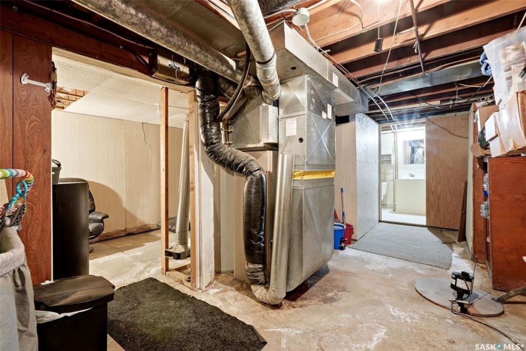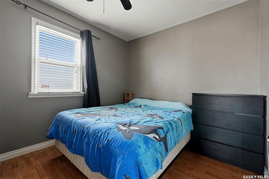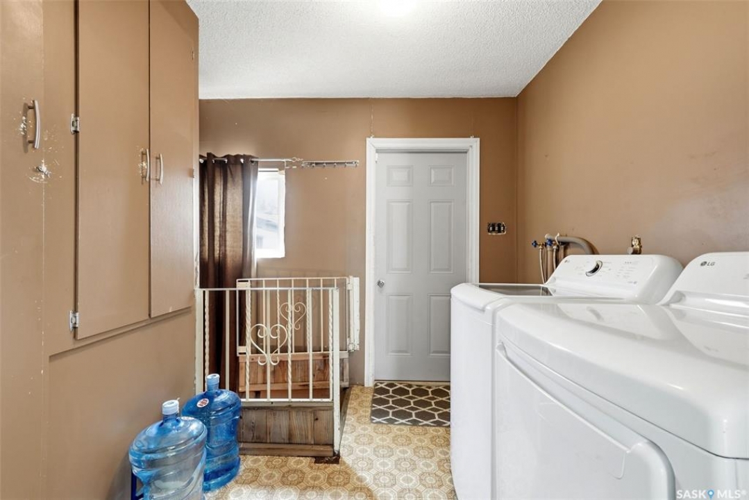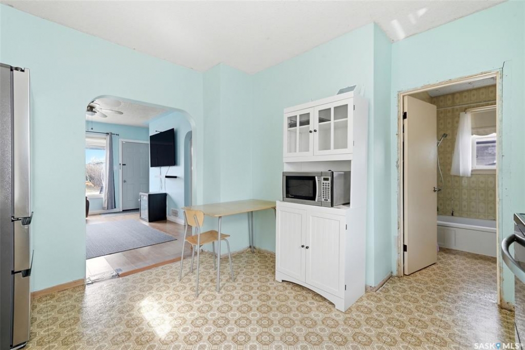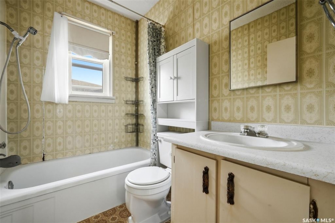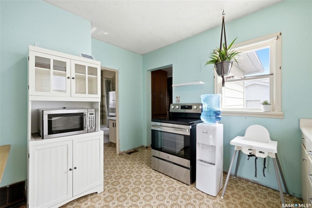 Sun-filled home in a highly convenient location! Just minutes from downtown, east-end amenities, schools, hospital, and Wascana Park, this property is a fantastic opportunity for first-time buyers, downsizers, or investors looking to upgrade and generate rental income. The main floor features a bright, open living space with newer vinyl plank flooring throughout the living room and bedrooms. The west-facing living room is filled with natural sunlight, creating a warm and inviting atmosphere. There are two good-sized bedrooms on the main level. The primary bedroom boasts large windows for plenty of natural light (note: no closet, but wardrobe can be included if desired). A full 4-piece bathroom and a functional kitchen/dining area complete the main living space. At the back of the home, you'll find a convenient porch with built-in storage cabinets and main floor laundry, with access to the backyard and stairs leading to the basement. The basement is currently used for storage and has a 3-piece bathroom - ready for improvements to suit your lifestyle. The property also includes a spacious 2-car garage (18' x 24') built in 2019 and wired for 240 amps, offering ample room for parking, storage, or workshop use.