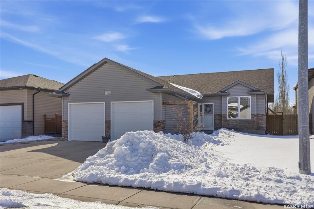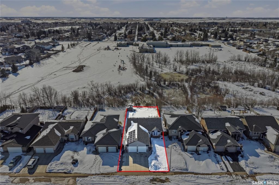 OPEN HOUSE SUNDAY APRIL 19th 2:30 TO 3:30 pm.This is a great family home opportunity BACKING THE ELEMENTARY SCHOOL PARK at MacCormack Ranch in Martensville. This well laid-out bungalow offers vaulted ceilings, plenty of natural light, & a spacious, open feel throughout. Spacious U-shaped kitchen with large pantry, open to dining area, with garden doors to the large deck & back yard. 3 bedrooms & 2 bathrooms upstairs, primary bedroom features a 3-piece ensuite & walk-in closet. The fully finished lower level offers a family and recreation/room spaces, utility/storage/laundry area, 2 bedrooms and a full bathroom. The games room has a storage system that could be used in lieu of a closet and converted into an another large bedroom if needed. The generously sized 2-car attached 24 x 26 garage is insulated, features double doors & direct entry to the home. Some upgrades to the property include newer high efficient furnace (Sept 2024), newer central air ( June 2023), newer water heater (May 2025), and newer shingles (Aug 2022). Martensville is growing in popularity as one of Saskatoon's full-service bedroom communities, offering a wealth of major services, good schools and all amenities in addition to a very short commute to Saskatoon on a good double lane highway. The potential is here to make this excellent home yours! Please note the solar system is not included in the sale, but could be purchased over and above if buyer chose to want it.