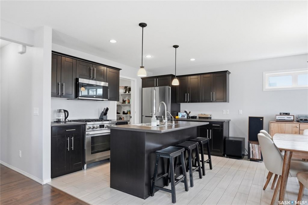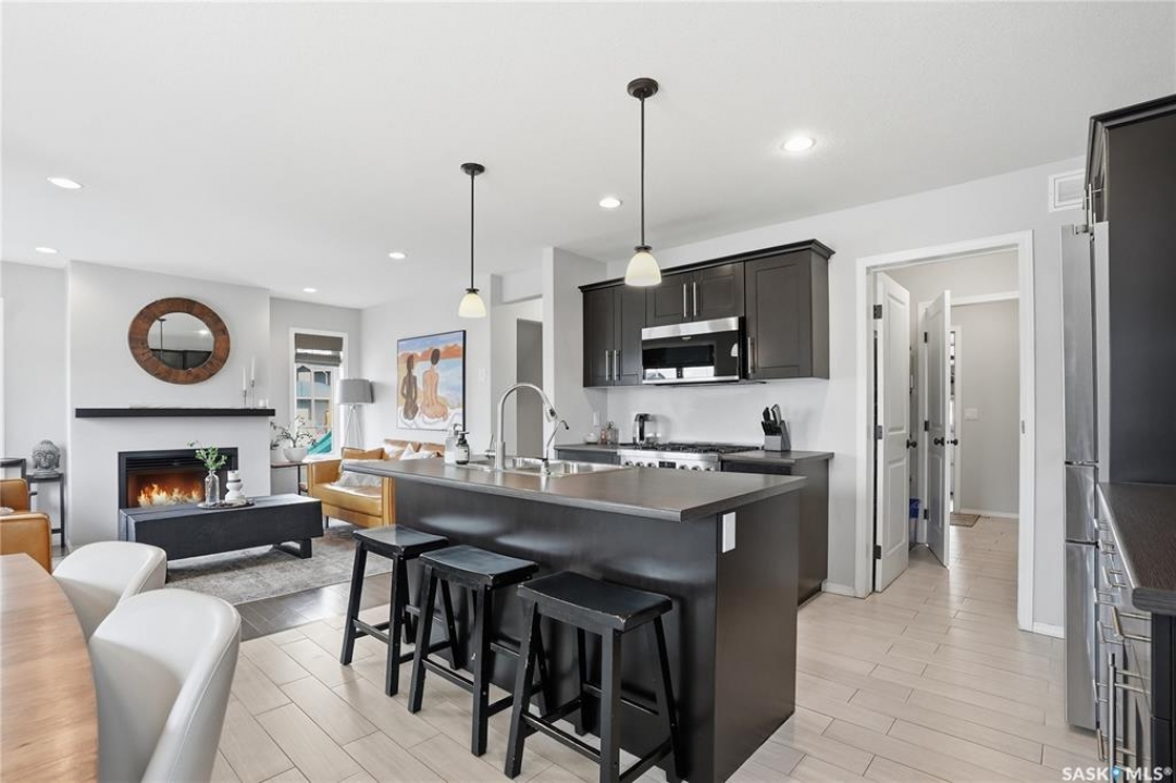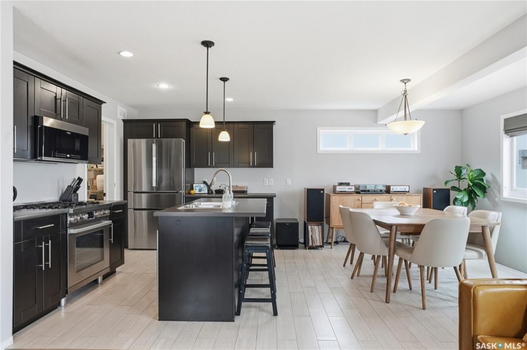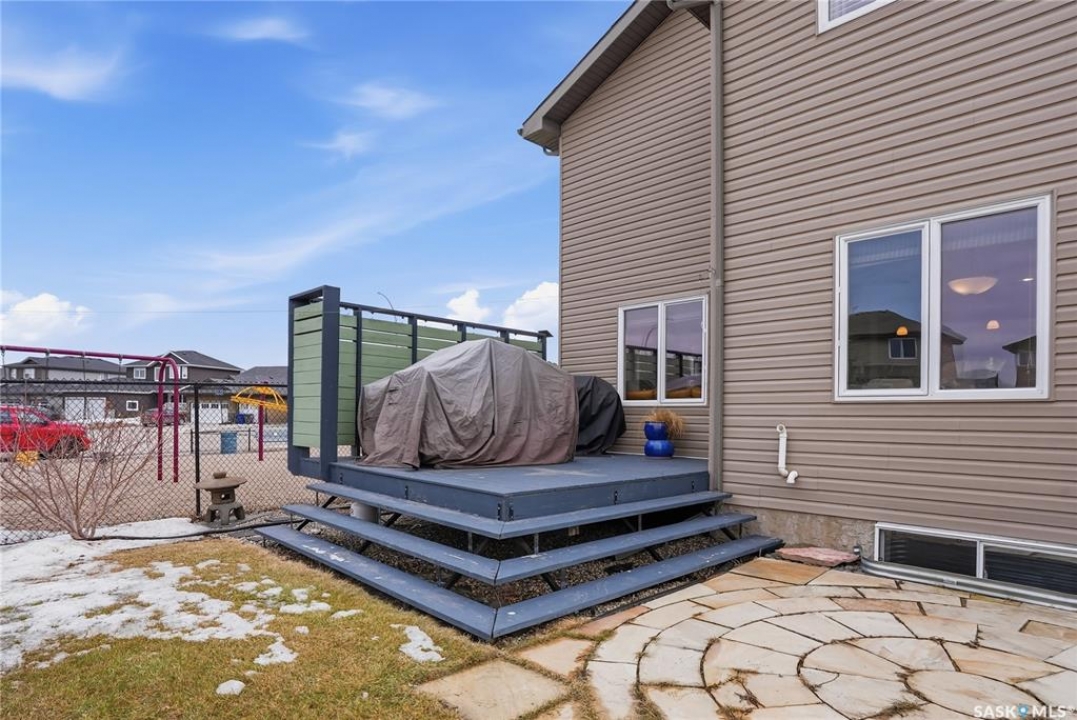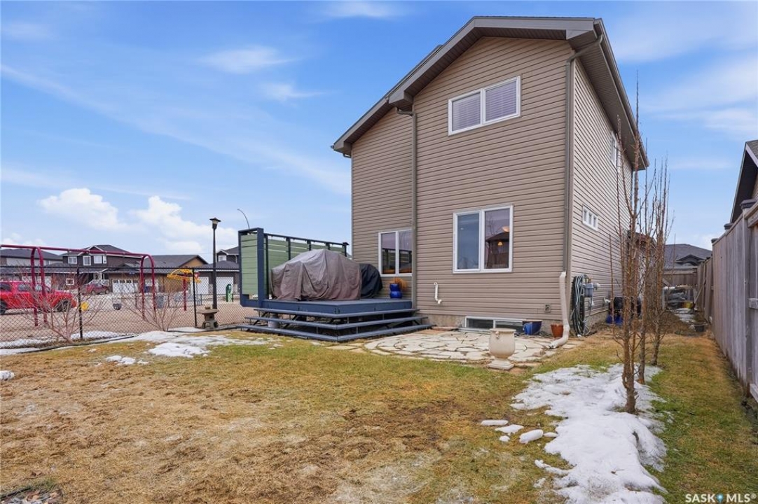 Welcome to 321 Stone Terrace in Martensville, a home that truly embraces family living in a community people love. Owned by the original owners, pride of ownership is evident throughout. Located directly beside a park, this is one of those rare setups where your kids can step outside and be right where they want to be. Whether it's after school, weekends, or summer evenings, you can keep an eye on them right from your window. With a quick and easy commute to Saskatoon and access to schools, parks, and everyday amenities, Martensville continues to be a top choice for families. This fully developed 1,476 sq ft two storey offers 5 bedrooms and 4 bathrooms with a layout that just makes sense. The main floor features an open living, kitchen, and dining space filled with natural light, overlooking the fully landscaped backyard and the park. The living room is anchored by a gas fireplace, creating a warm and comfortable place to gather. The kitchen is upgraded with high end appliances, a walkthrough pantry with plenty of storage, and connects seamlessly to the mudroom with main floor laundry. A spacious front foyer with higher ceilings makes a great first impression and adds to the functionality of the home. Upstairs, you'll find two good sized secondary bedrooms, a full 4 piece bathroom, and a primary suite complete with a walk in closet and its own 4 piece ensuite. The basement is fully developed with a family room, a 3 piece bathroom, and two additional bedrooms. One is currently set up as a home gym but can easily be converted back depending on your needs. Outside, the backyard is fully landscaped and features a deck, patio, lilac bushes, oak tree,, and a shed for extra storage. The fully insulated and heated garage is a huge bonus for Saskatchewan winters and central A/C to keep you cool in the summers. If you've been looking for a home that offers space, care, and a location that's hard to beat for families, this one is worth a look.