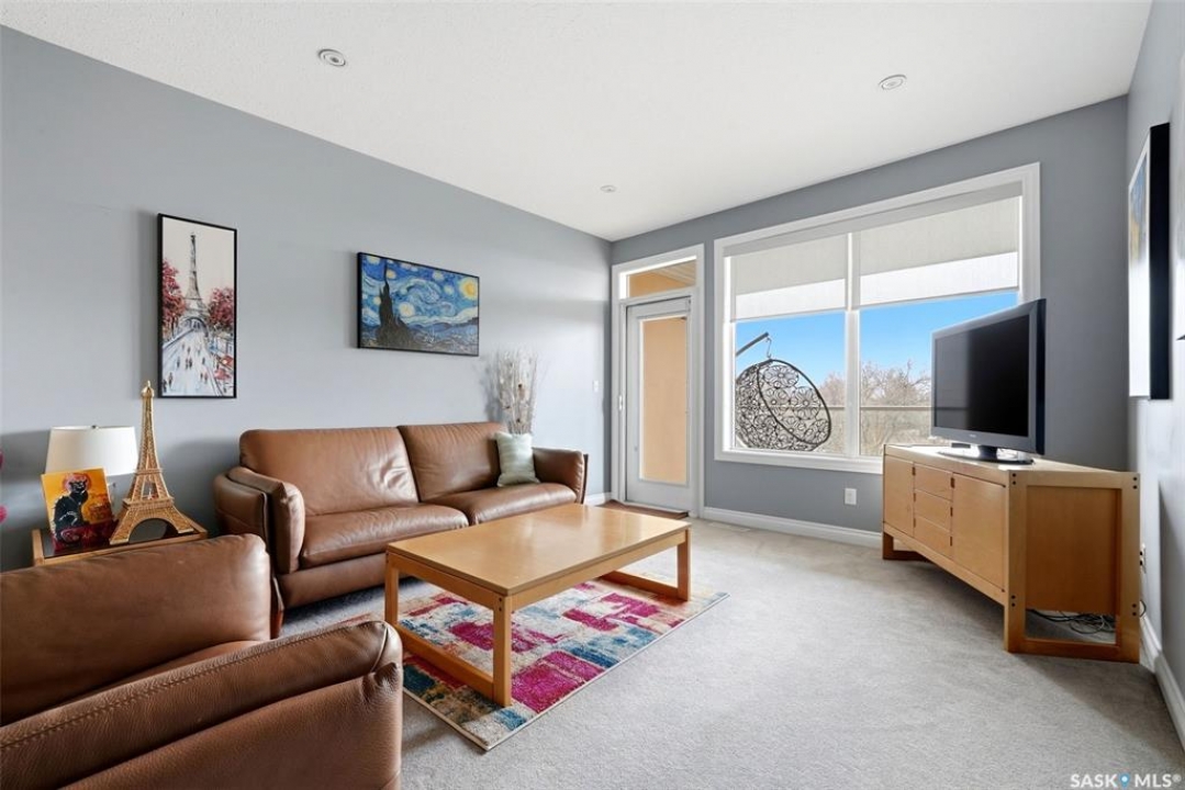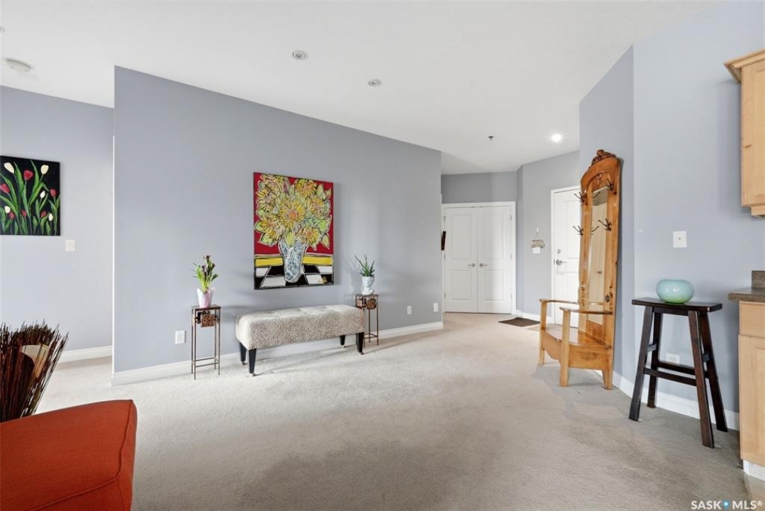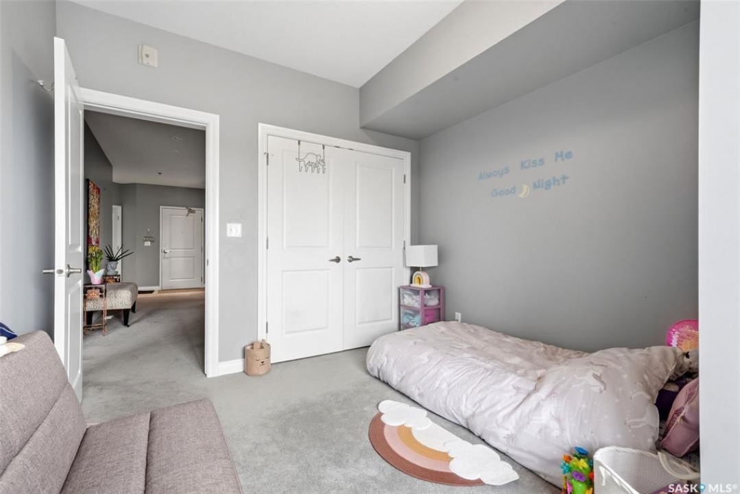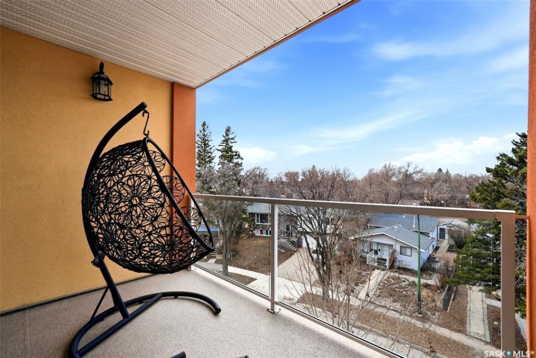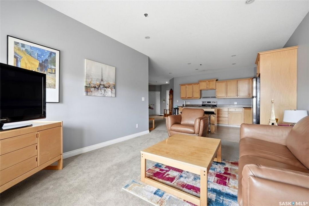 Location, location, location! Units rarely come available in this well-maintained building, constructed in 2007, so act fast! This beautifully maintained 2-bed, 2-bath condo in Regina is ideally located in a highly sought-after, south-end neighbourhood. This move-in ready condo is directly across from Kiwanis Park with walking paths & a waterfall, just minutes from downtown, the airport, the vibrant Cathedral area & all south-end amenities. Enjoy being within walking distance to scenic Wascana Park, perfect for an active, connected lifestyle. This Regina condo offers an exceptional blend of style, comfort & convenience. The bright, open-concept layout features 9' ceilings and pot lighting for a warm, modern feel. The kitchen is both stylish & functional, with plenty of counter & cupboard space along with a centre island. The spacious living room opens onto a NE-facing private deck, ideal for enjoying your morning coffee and favourite book while overlooking a quiet, tree-lined residential area and beautiful park across the street. Both bedrooms are generously sized with large windows. The primary bedroom includes a large walk-through closet and a well-appointed 4-piece ensuite. Additional highlights include a generous entryway and dining area, 2 heated underground parking stalls with extra storage & surface guest parking available near front door. A dedicated laundry/storage room off the main entryway includes a front-loading washer and dryer. Condo fees are very reasonable, adding to the overall value. This upgraded condo in Regina delivers exceptional quality, thoughtful finishes, and an unbeatable location - perfect for professionals, downsizers, or investors.