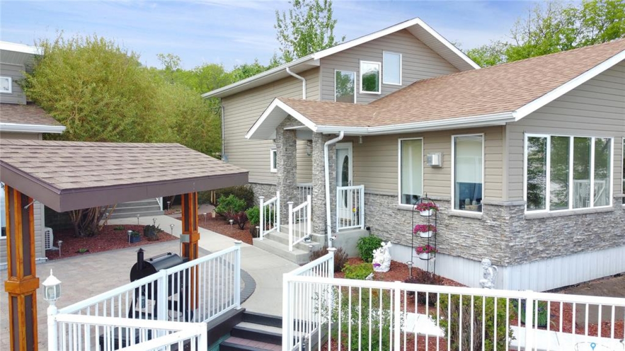 Welcome to 191 Katepwa Rd at Katepwa Lake—your own private, year-round waterfront oasis offering 71' of shoreline and an impressive 1,950 sq ft home that seamlessly blends luxury, comfort, and thoughtful design. Meticulously maintained and beautifully updated, this exceptional property was extensively remodeled and expanded in 2008 to create a true four-season retreat, featuring upgraded electrical and plumbing, modern lighting, spray foam insulation, an energy-efficient furnace, and a water treatment system with reverse osmosis. The open-concept layout captures breathtaking lake views from nearly every room, highlighted by a stunning custom kitchen with a large island, ample storage, and an inviting dining area. The home offers three spacious bedrooms, two full bathrooms, and two dedicated office spaces—ideal for remote work or hobbies. Unwind in the cozy living room with a Regency gas fireplace, or step outside to the expansive deck and soak in the scenery. Entertain effortlessly with the outdoor kitchen and pergola, gather around the firepit, or host guests in the impressive year-round cabin/man-cave complete with its own bathroom, natural gas fireplace, and air conditioning. The beautifully landscaped yard features multiple private seating areas surrounded by mature trees and perennials, creating a peaceful outdoor escape. Additional highlights include new shingles on both the house and double detached garage (2022), a paved driveway (2023) with parking for up to six vehicles, and a spacious boathouse ready for all your lakefront adventures.