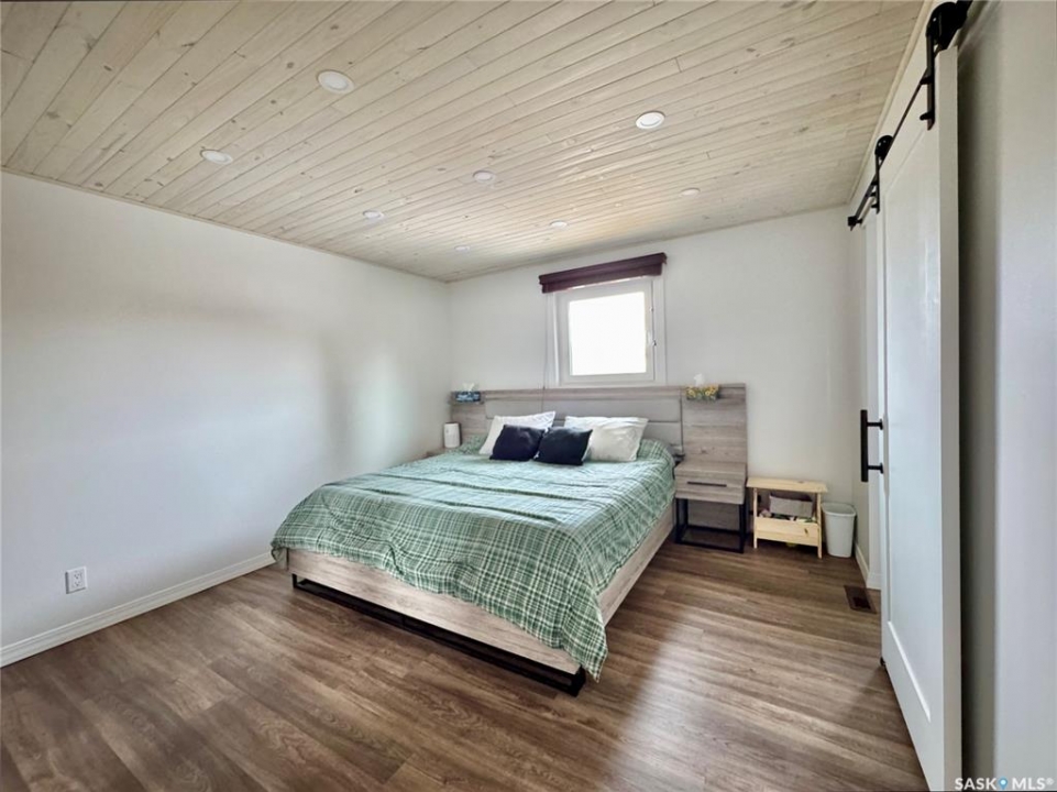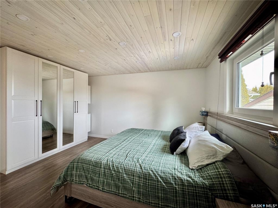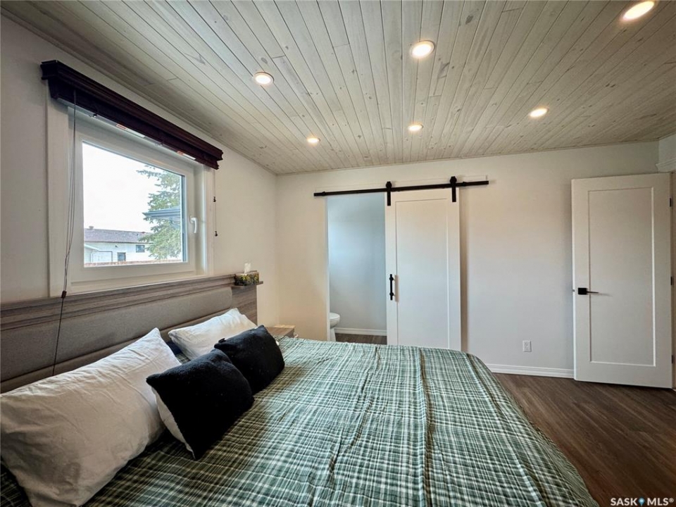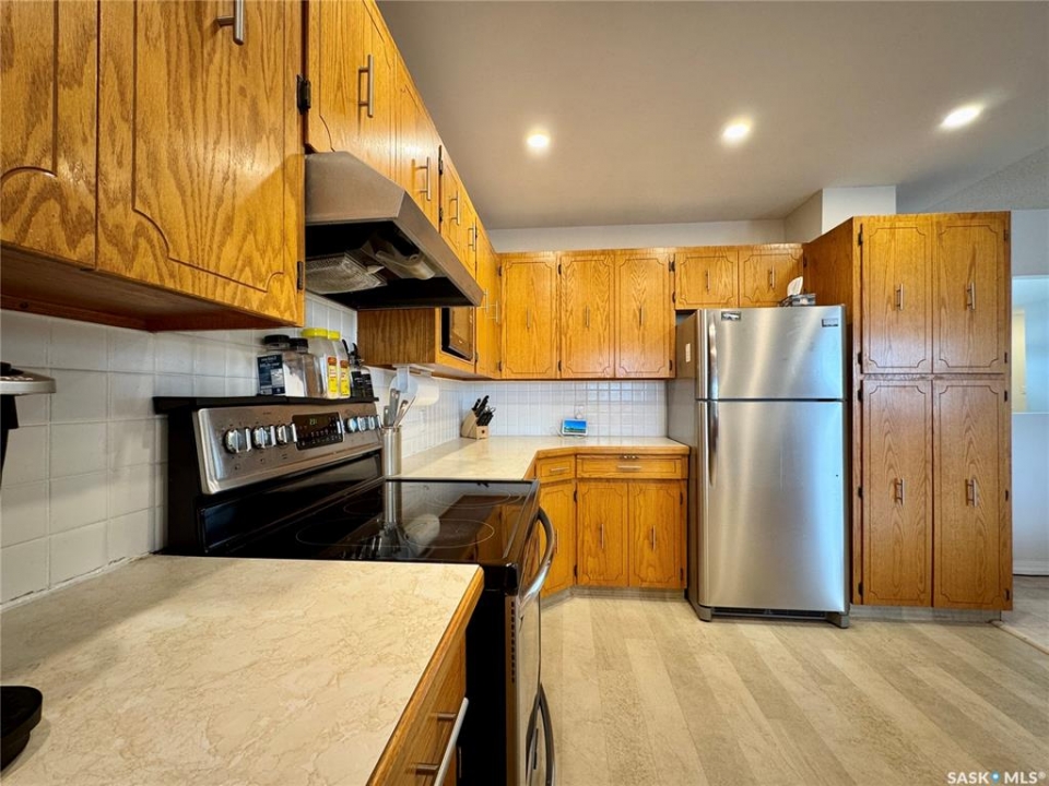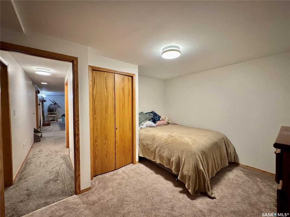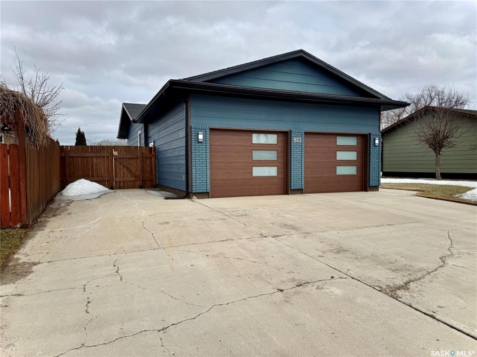 Welcome to Stanley Street—where thoughtful updates, generous space, and family-friendly function all come together in one beautifully-maintained Esterhazy home. From the moment you pull into the concrete drive, this property makes an impression with its striking curb appeal, updated exterior finishes, and insulated double attached garage complete with stylish modern doors and convenient man-door access. Inside, the main floor offers bright, inviting living spaces with updated lighting throughout, fresh trim and interior doors, and a layout designed for everyday ease. The spacious living room flows into a dining area built to host the whole crew, anchored by a substantial buffet-style cabinet wall and room for even the largest family table. The kitchen is equally impressive with stainless steel appliances, abundant cabinetry, generous counter space, and LED pot lighting that keeps everything bright and functional. Two spacious bedrooms are located on the main level, including a primary suite large enough for a king-sized bed, complete with a 2-piece ensuite and well-appointed IKEA PAX wardrobes for exceptional storage. Main floor laundry adds everyday convenience, perfectly positioned near both the bedroom wing and rear entry. Downstairs, the fully-developed basement expands your living space with updated carpet, a large den with wet bar, and three additional bonus rooms with smaller windows that don't quite fit today's egress standard - these spaces offer flexible options for guests, hobbies, office space, or overflow family use. Step outside and you'll find a backyard designed for enjoyment: an oversized covered deck with natural gas BBQ hookup, fully fenced yard, storage shed, and a tucked-away side kennel area with direct pup-door access from the garage. Add in central air, weeping tile, a well-cared-for basement, this home delivers the kind of comfort and confidence every family is searching for.